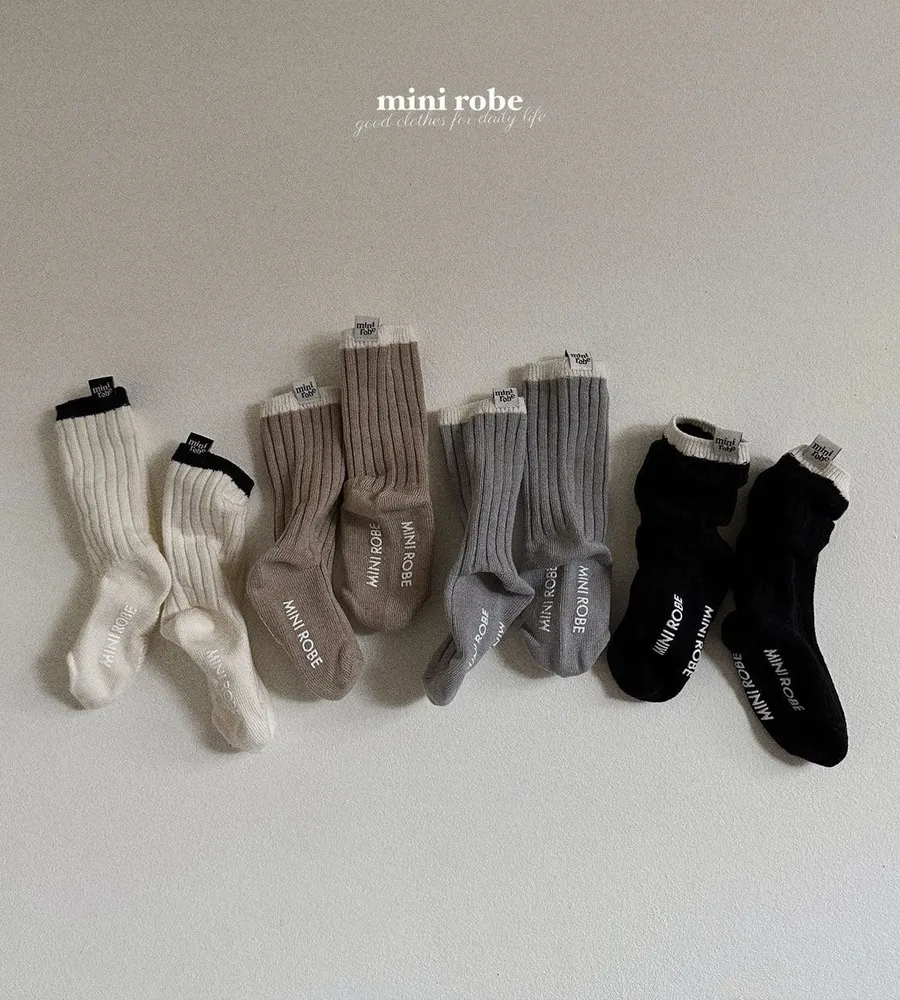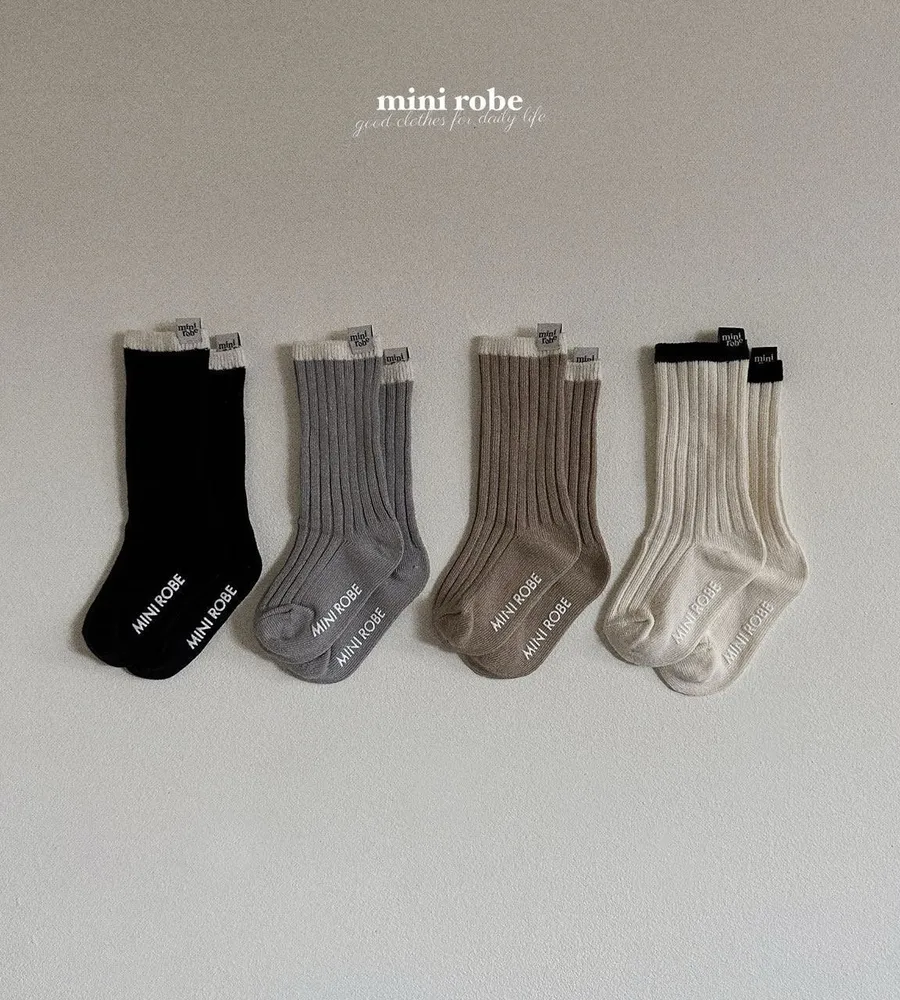 25'冬〡minirobe〡坑條標籤防滑襪四雙組合