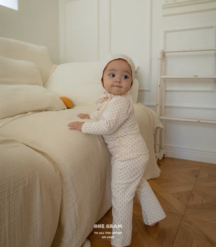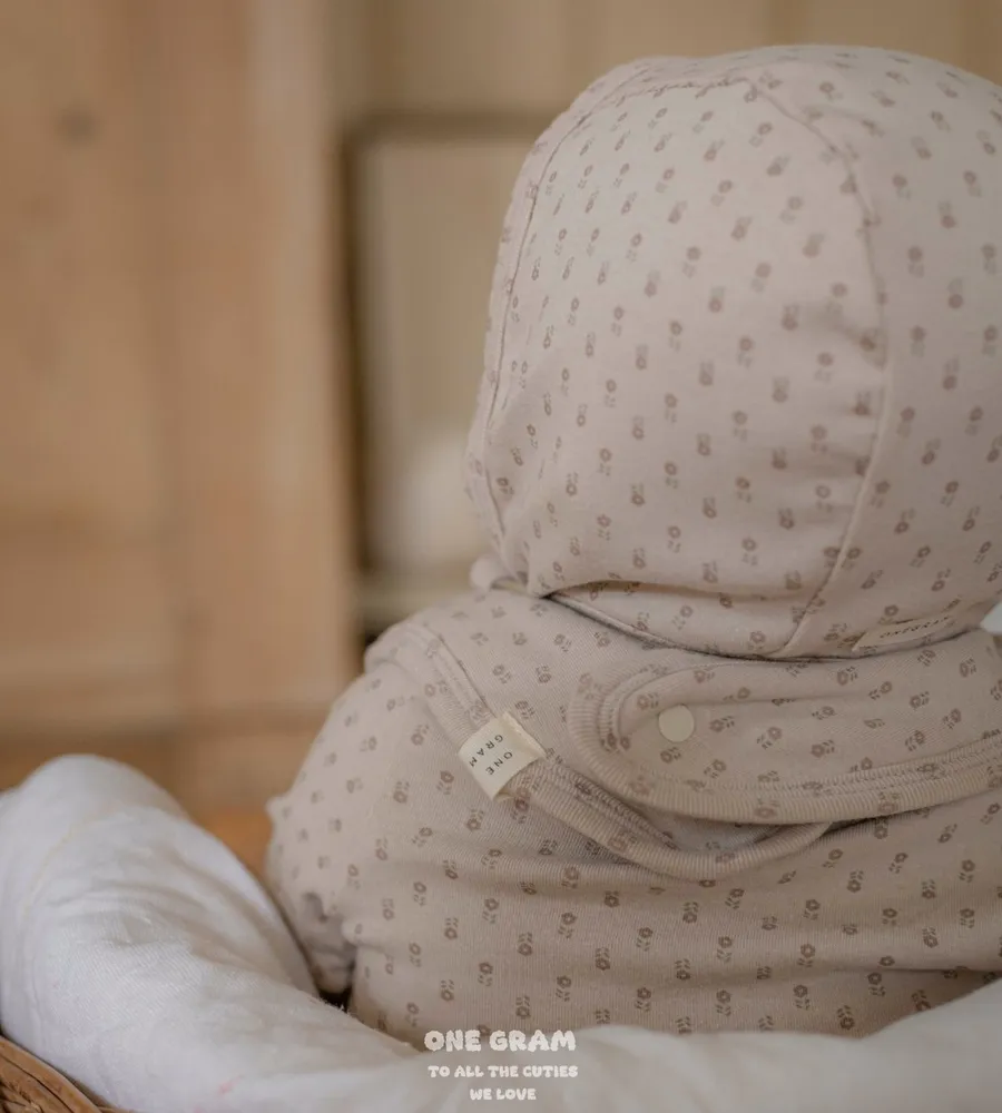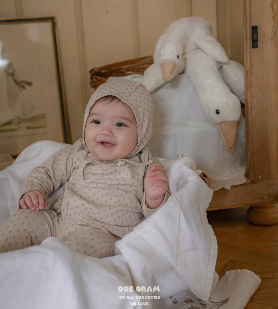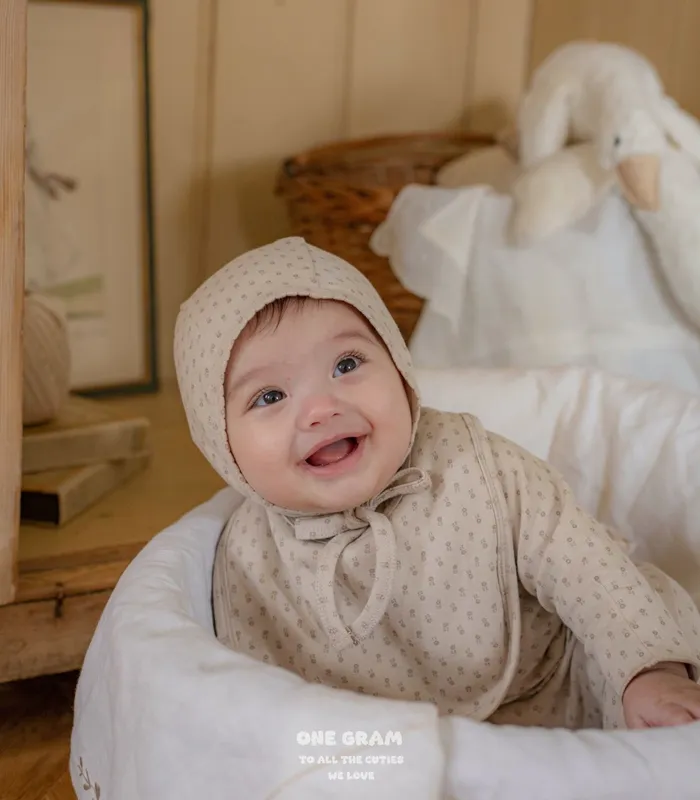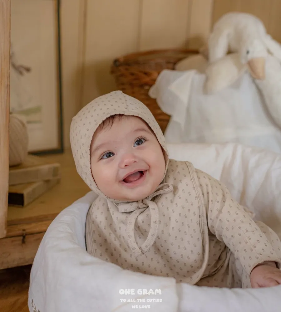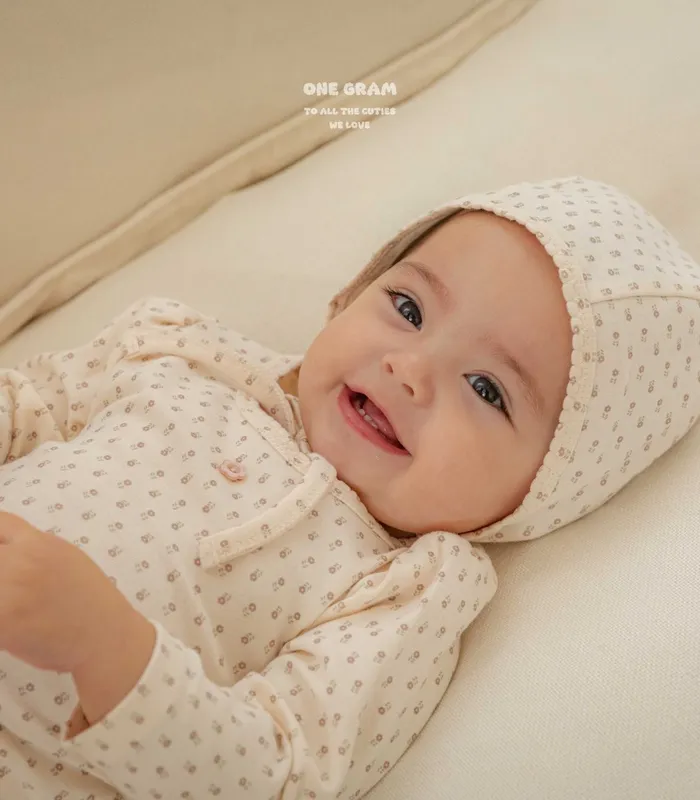 25'f/w〡one gram〡奶茶花花新生兒開襟包屁衣套裝(衣+帽)