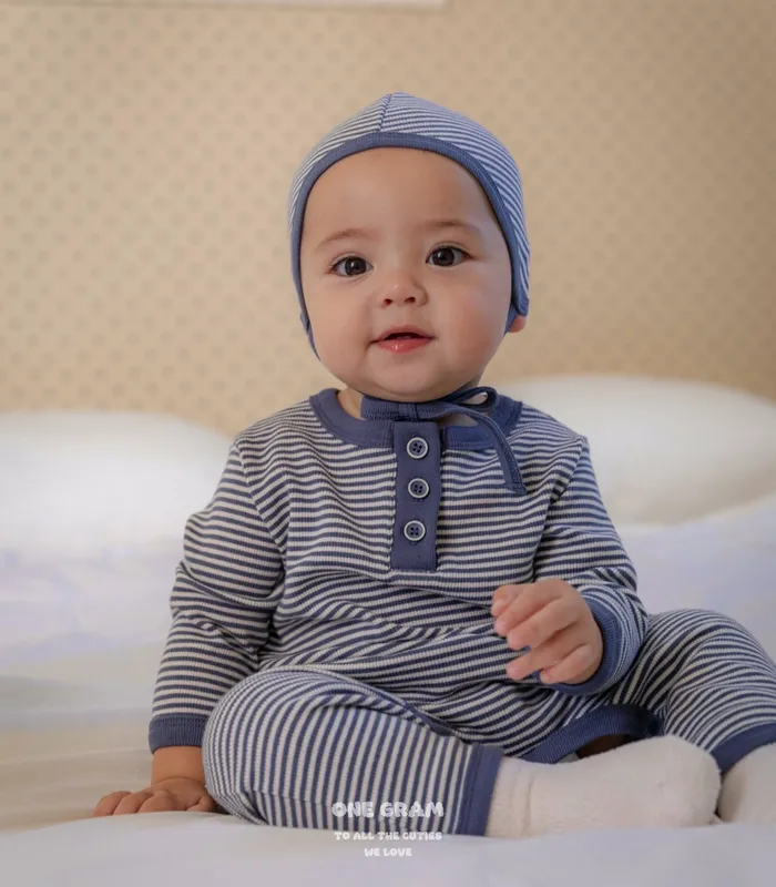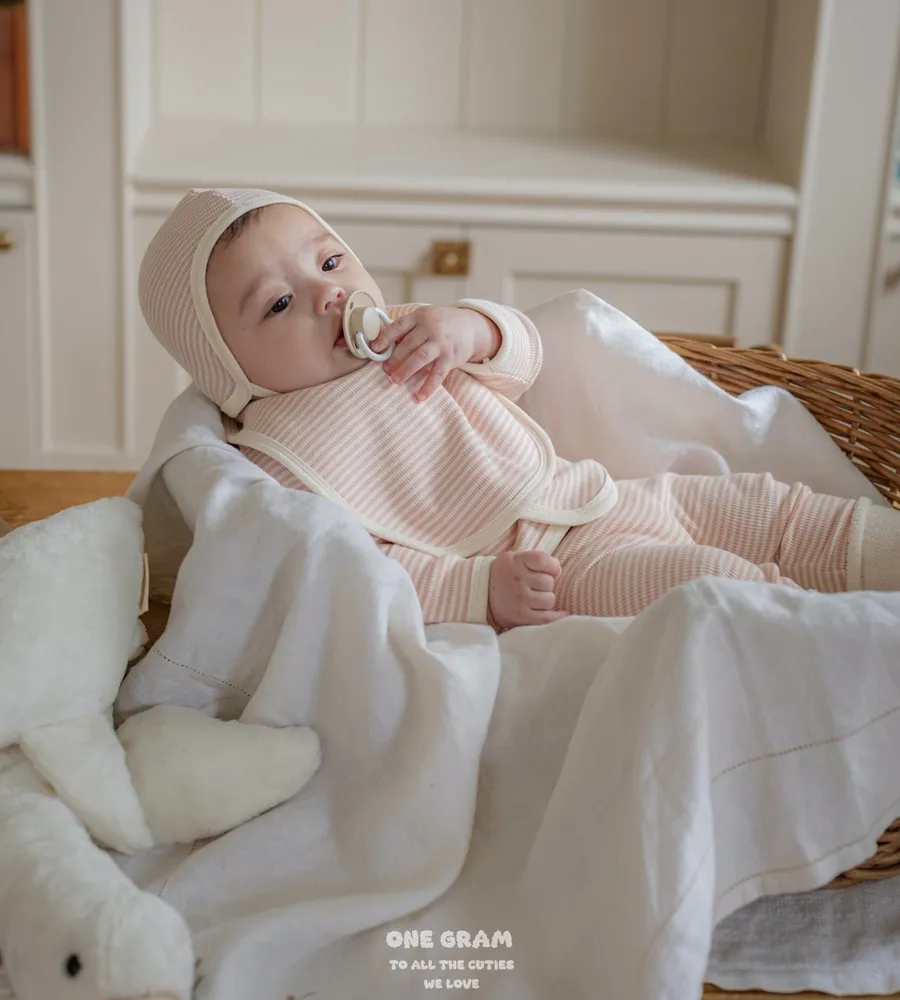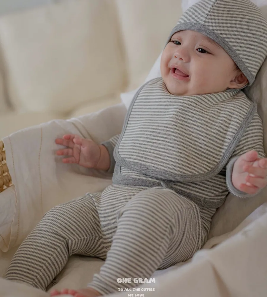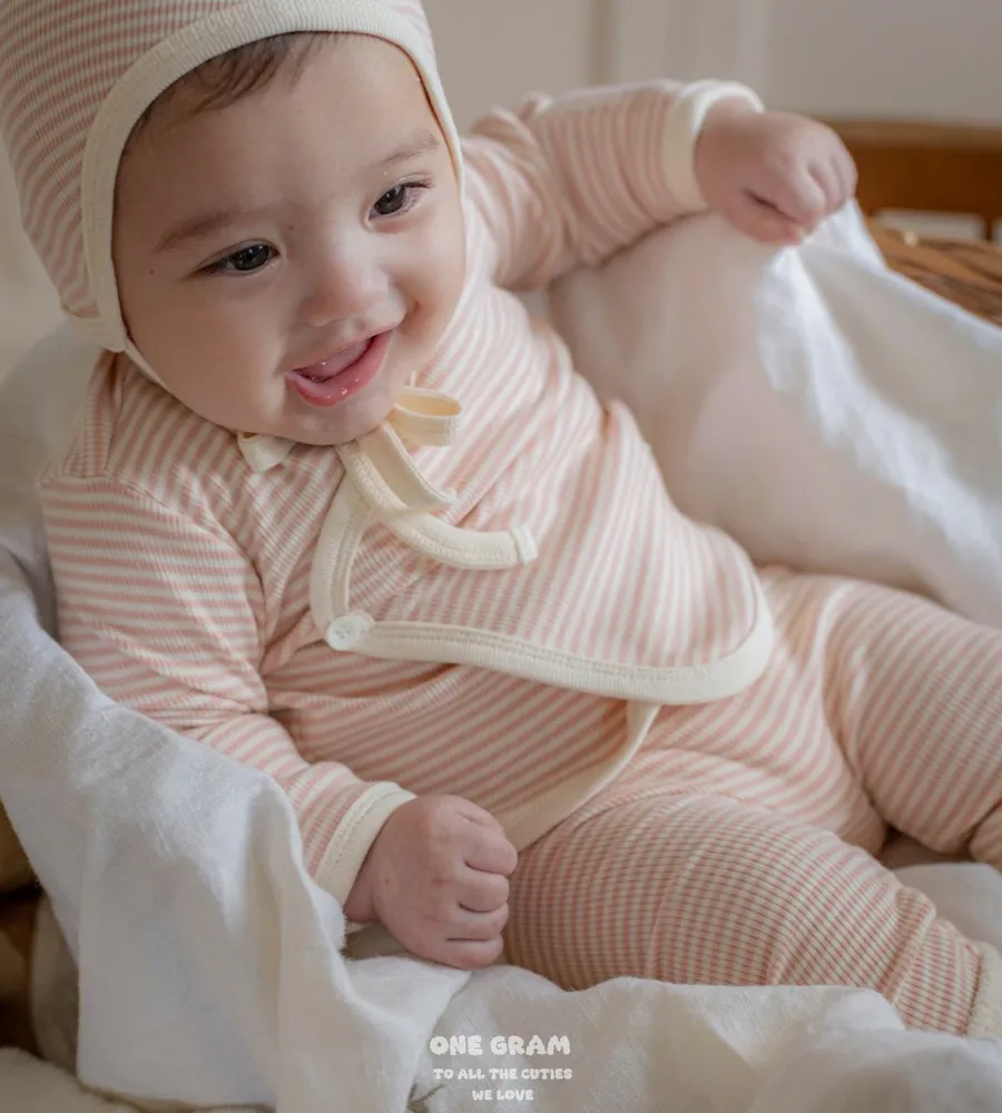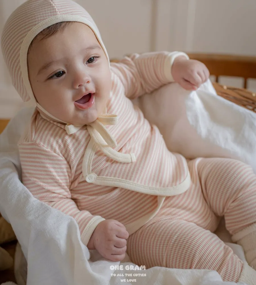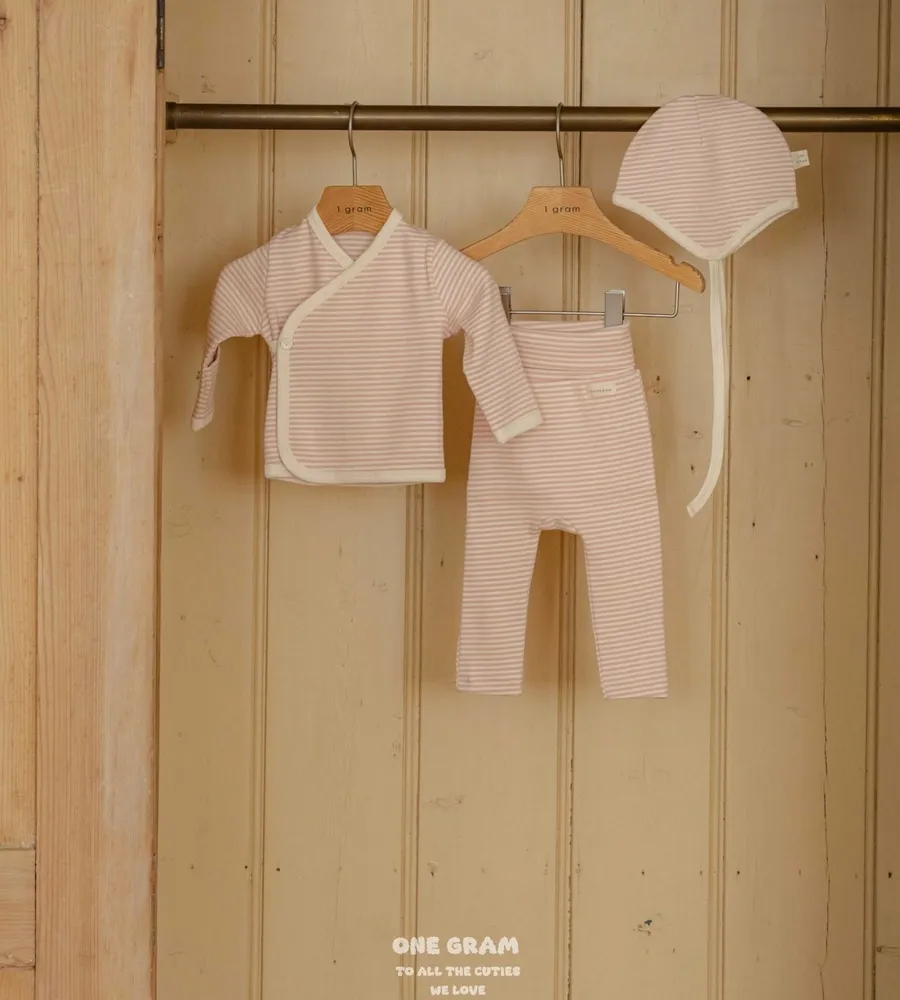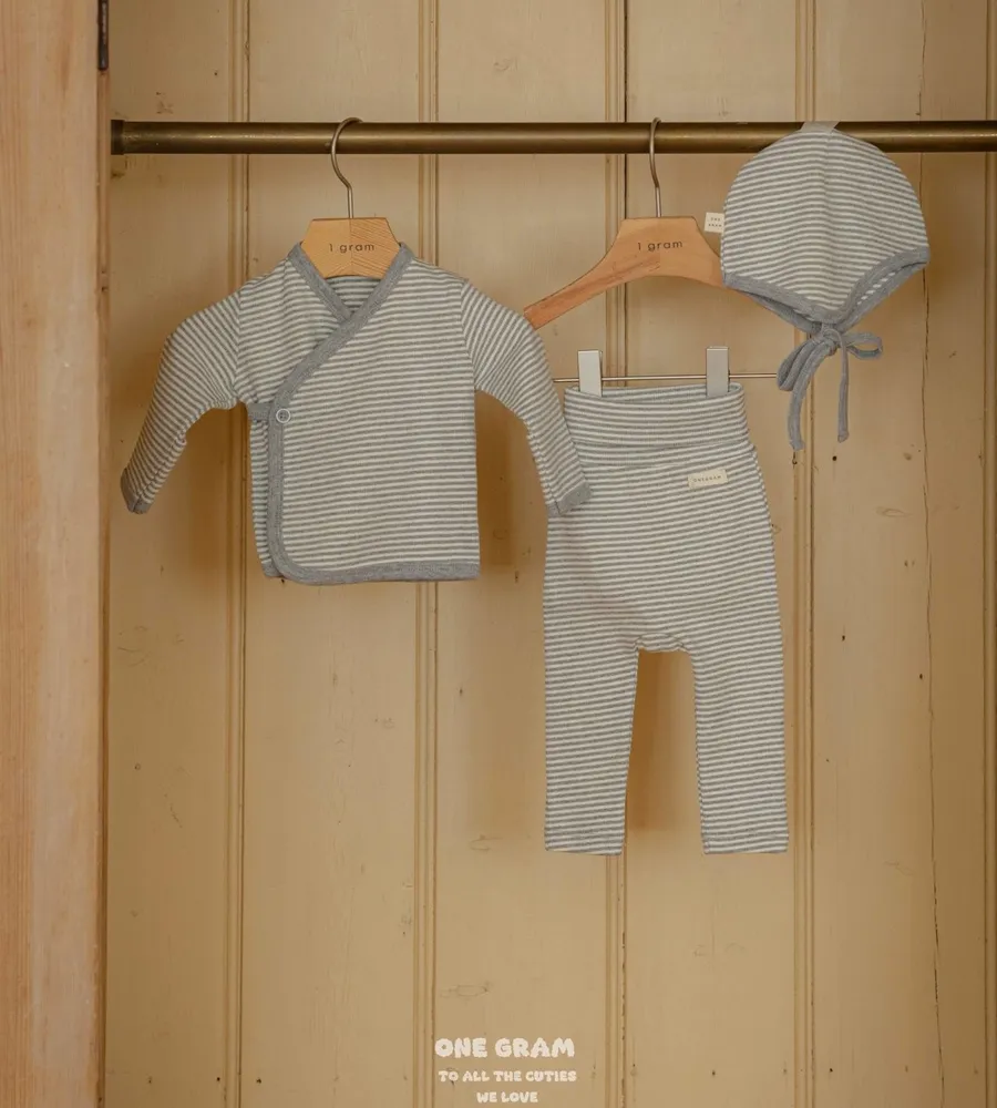 25'f/w〡one gram〡橫條紋新生兒開襟套裝(衣+褲+帽)