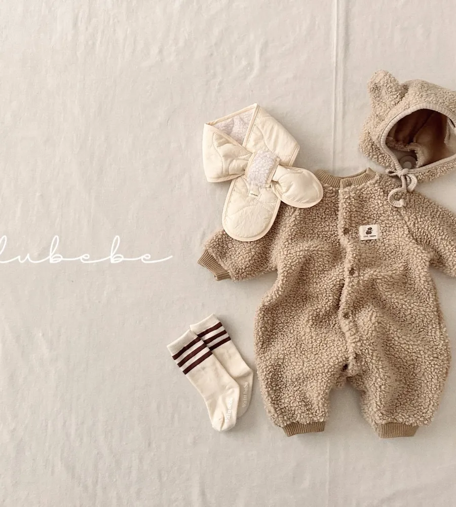 25'冬〡valubebe〡搖粒絨小熊排釦連身衣