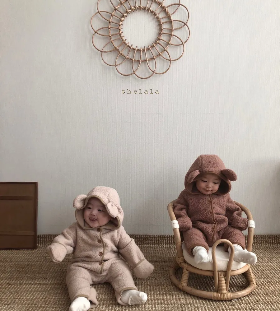 25'冬〡thelala〡熊熊搖粒絨排扣連帽連身衣