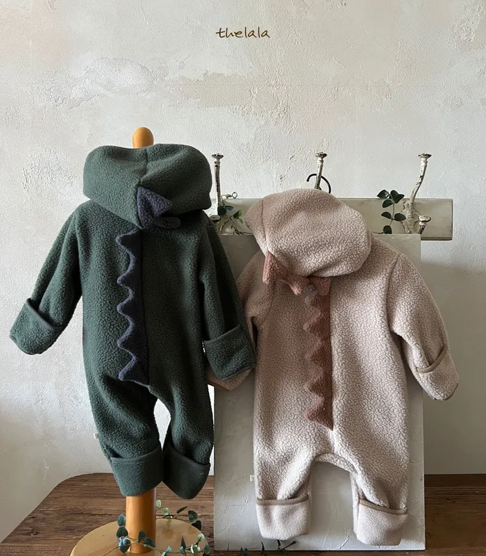 25'冬〡thelala〡恐龍搖粒絨排扣連帽連身衣