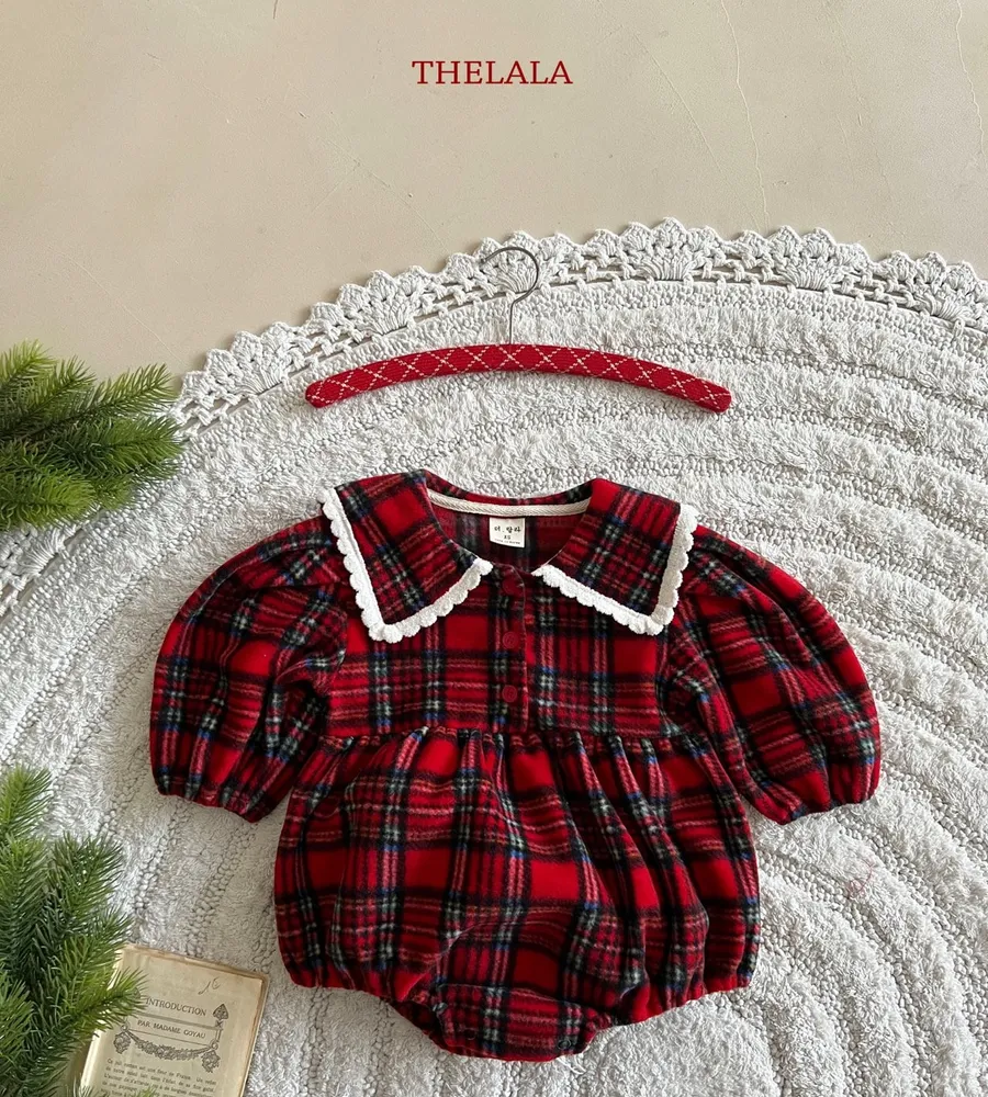 25'冬〡thelala〡聖誕格紋三角翻領包屁衣