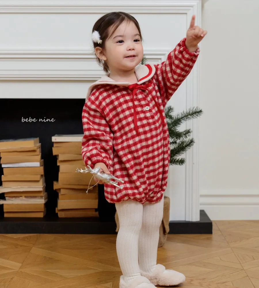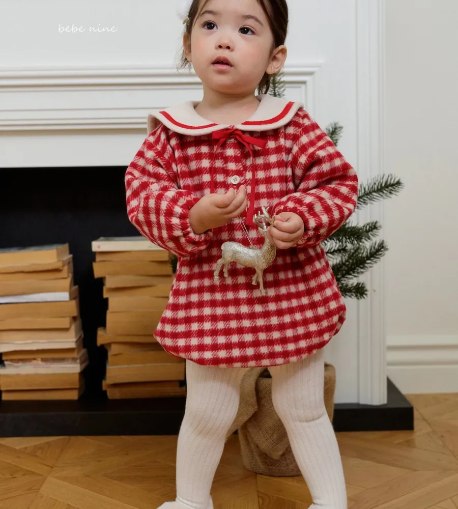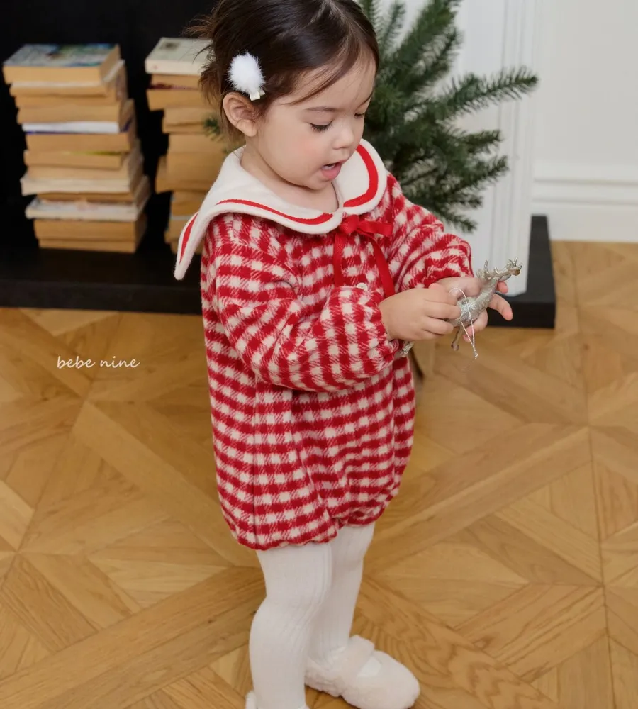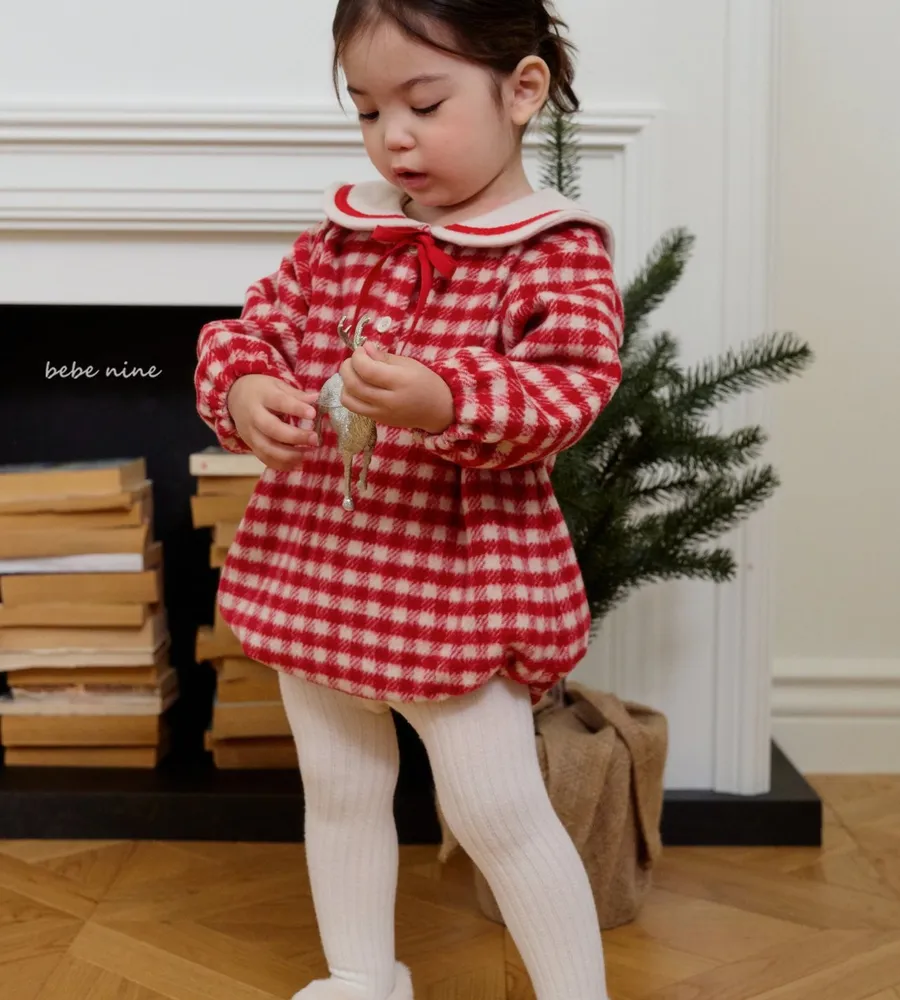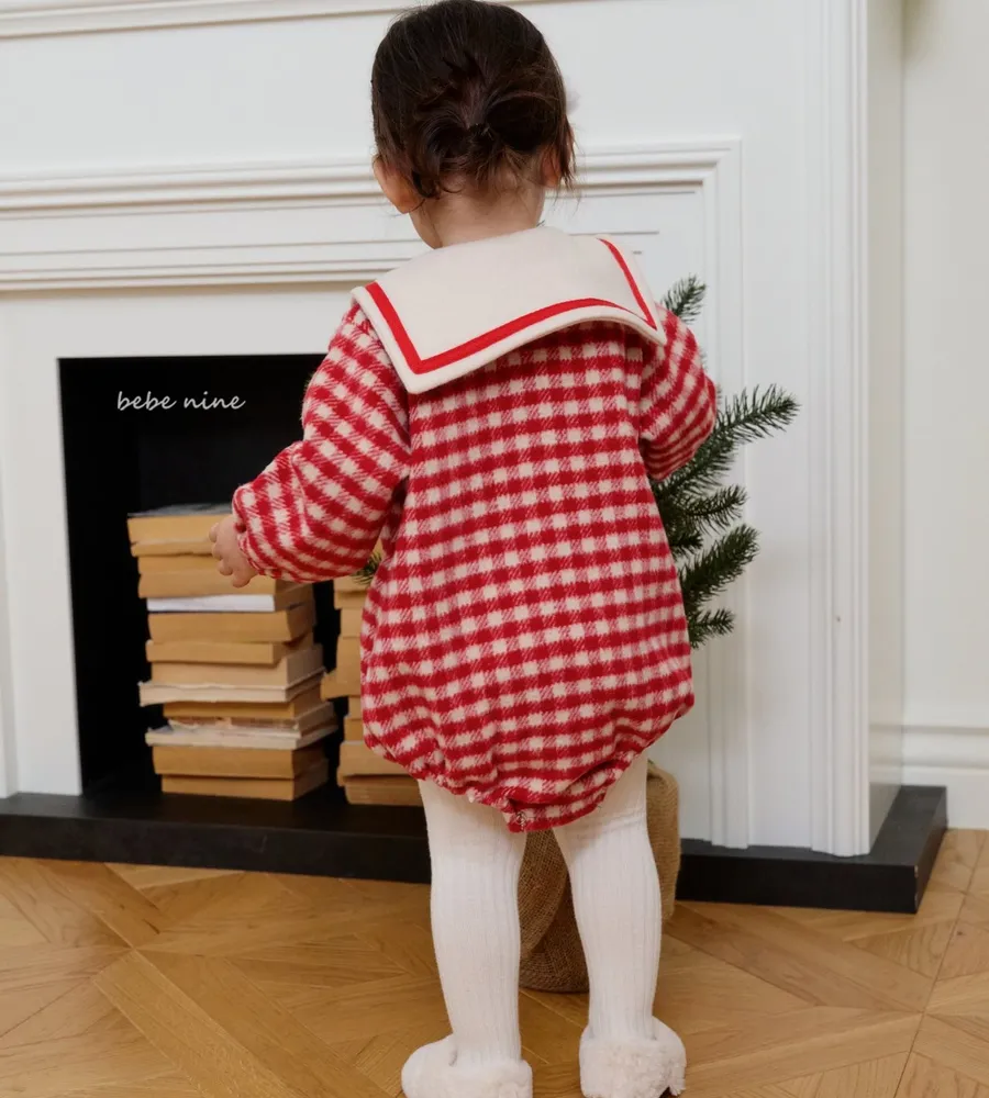 25'冬〡bebenine〡10%羊毛格紋海軍領包屁衣