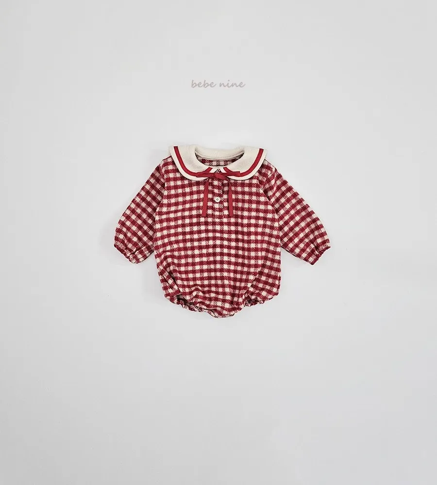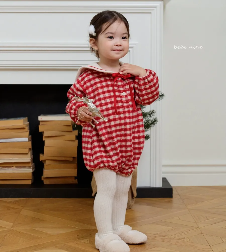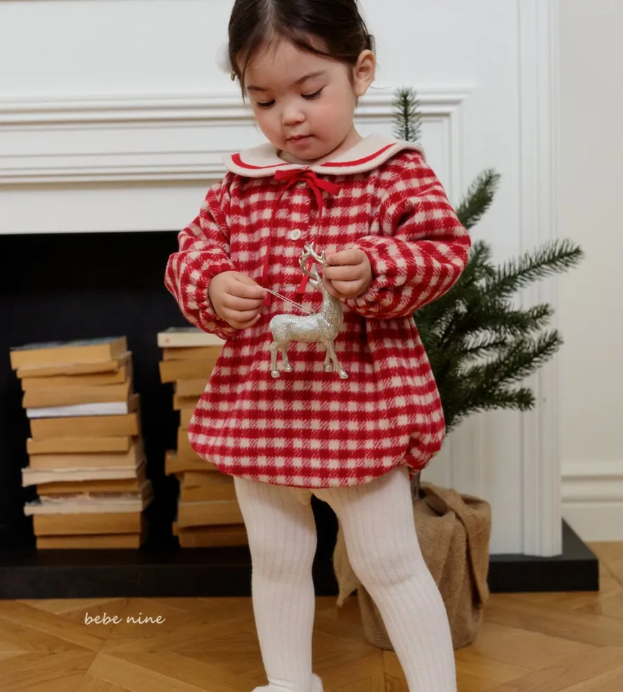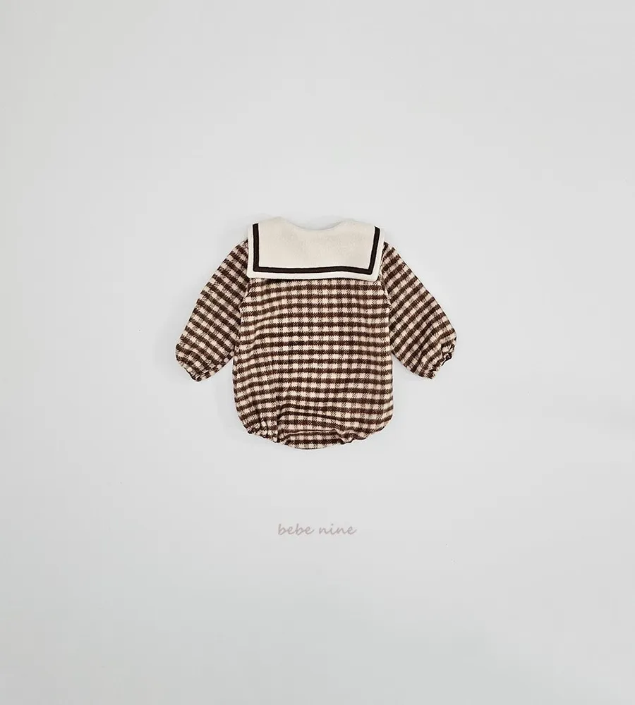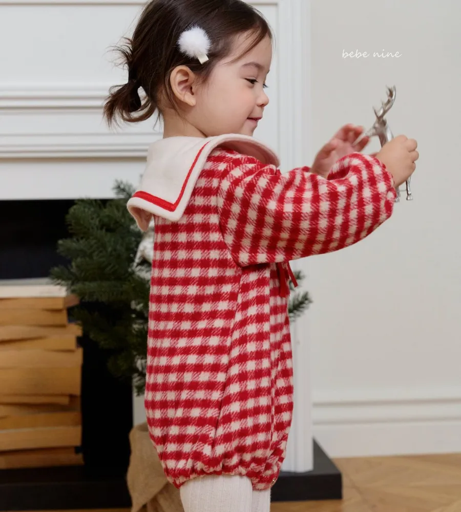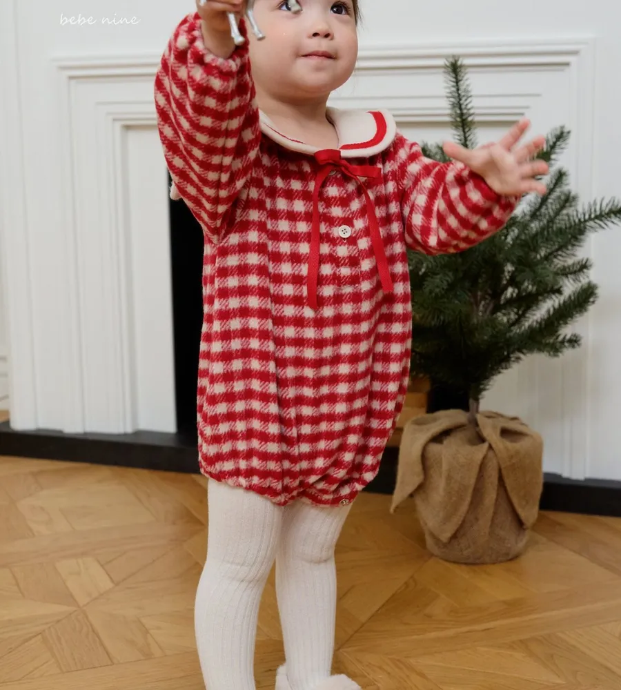 25'冬〡bebenine〡10%羊毛格紋海軍領包屁衣