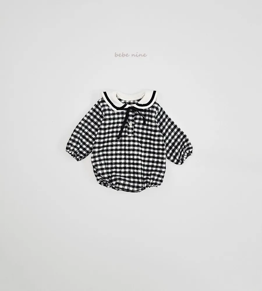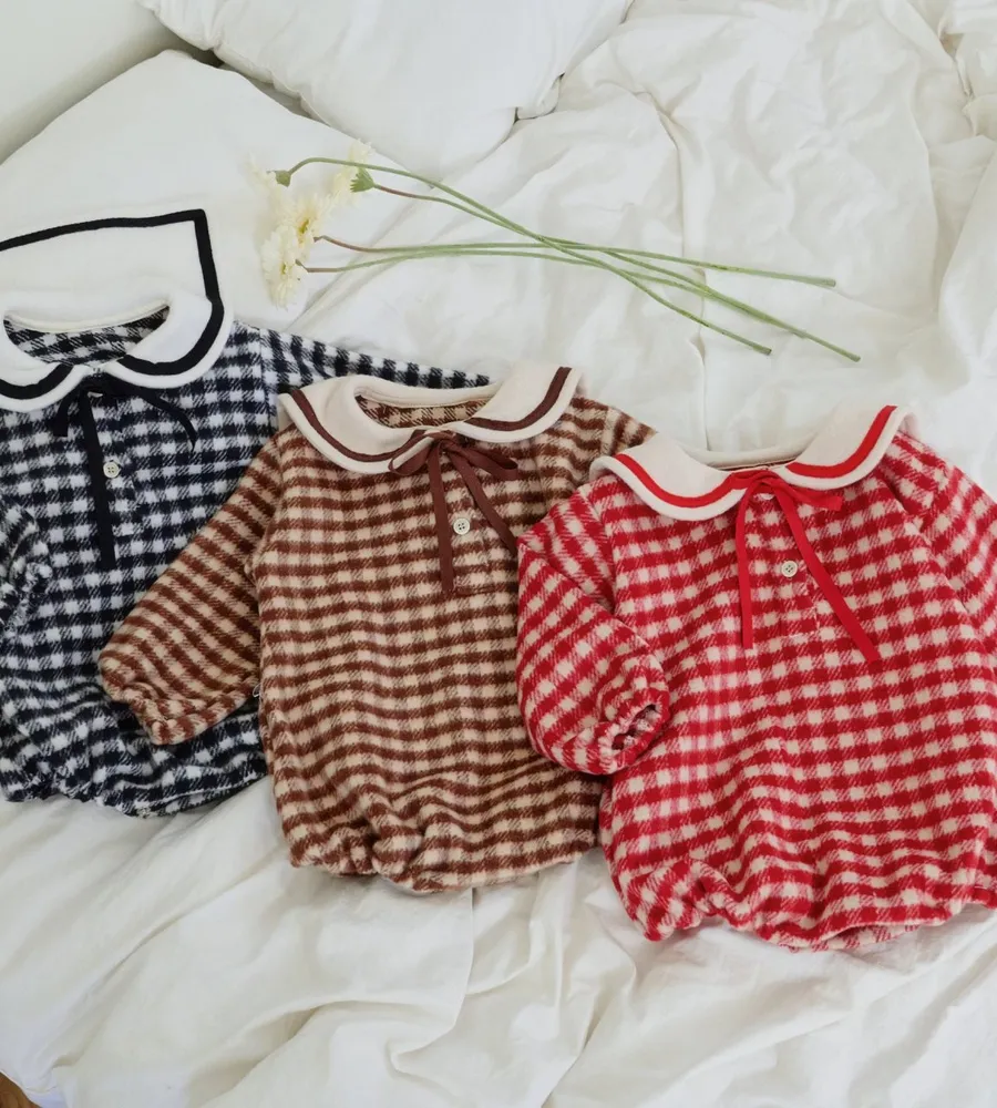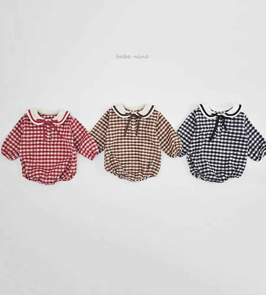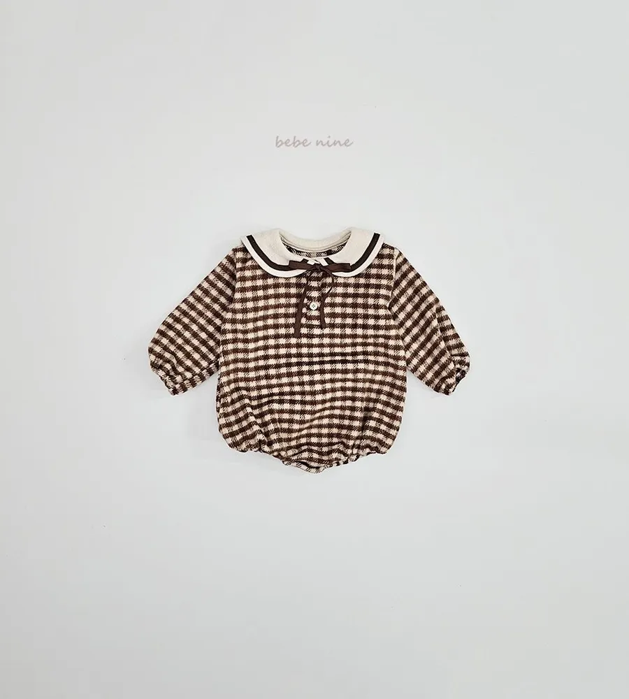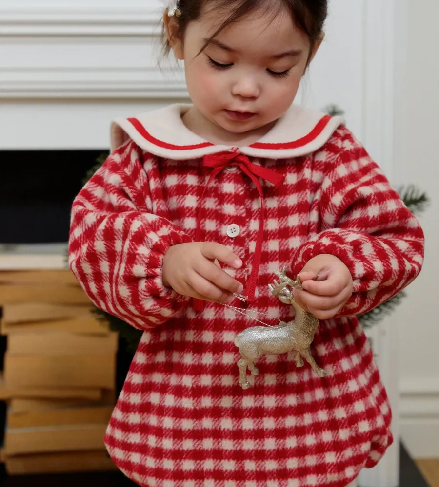 25'冬〡bebenine〡10%羊毛格紋海軍領包屁衣