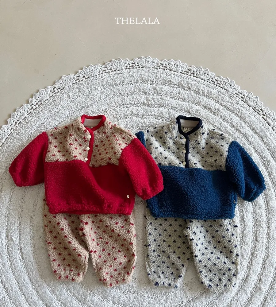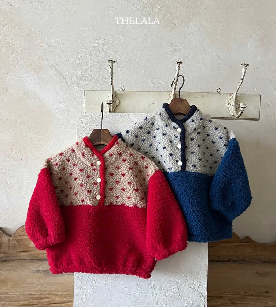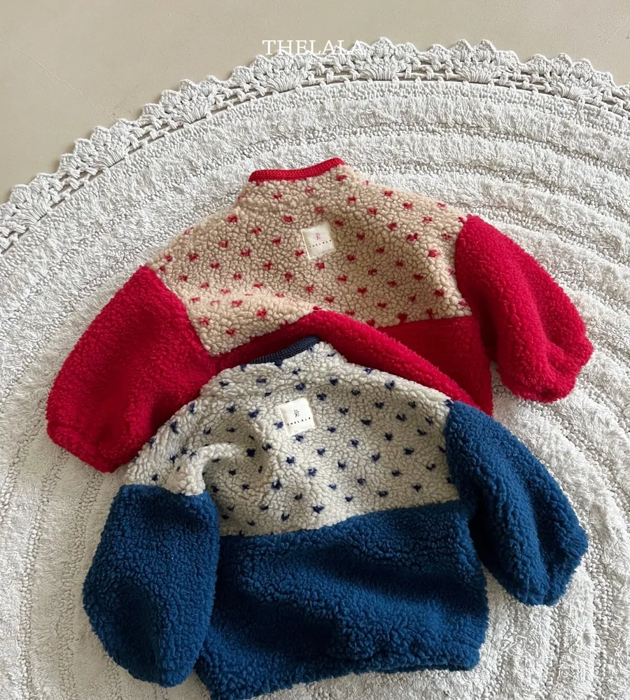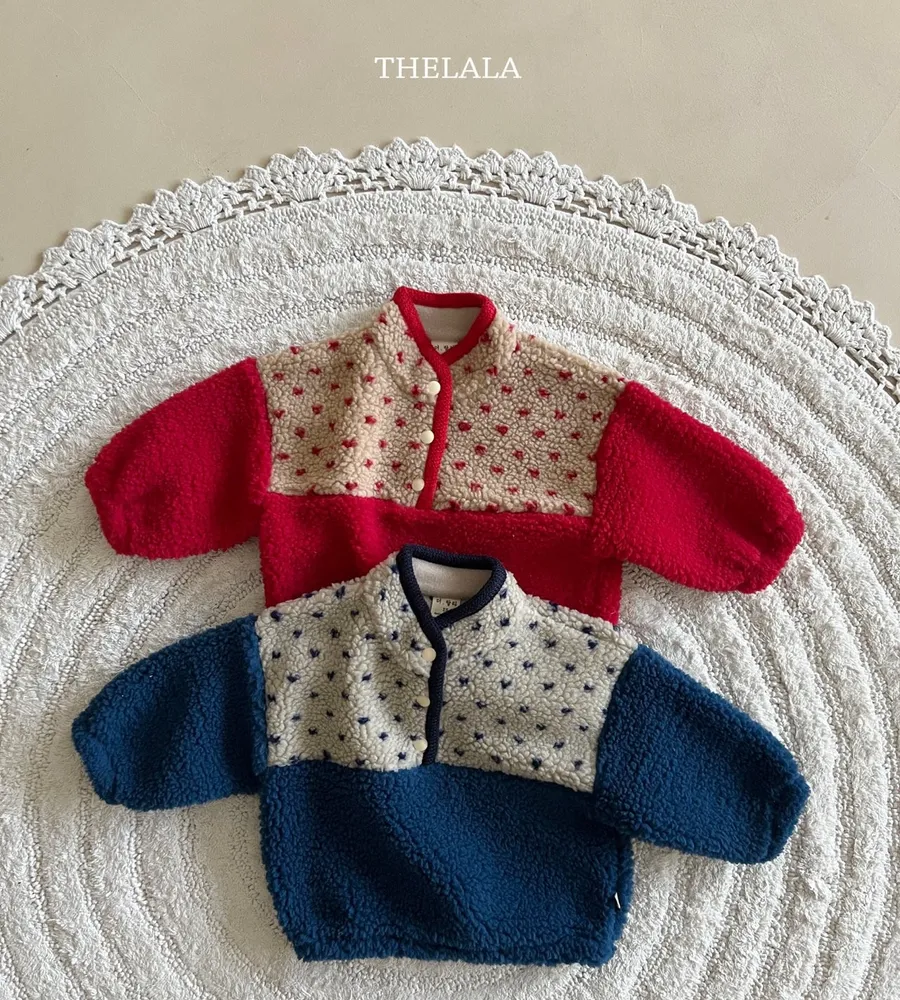 25'冬〡thelala〡絨毛波點拚接開扣立領上衣