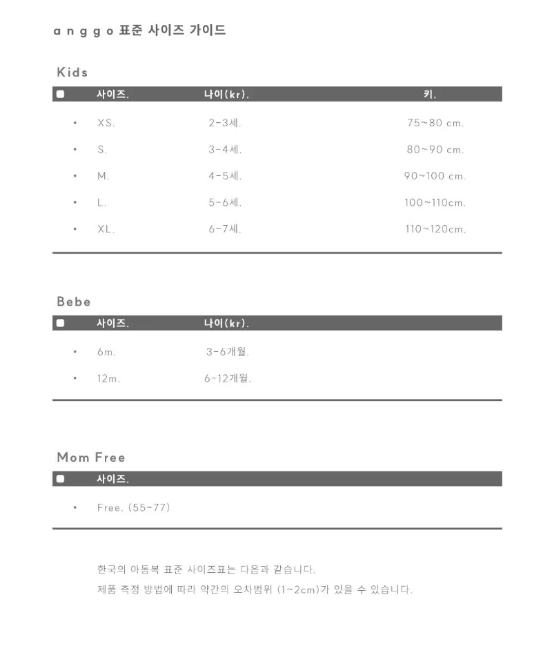 *尺寸表僅為品牌提供參考,實際穿著效果因孩子身型不同而異*