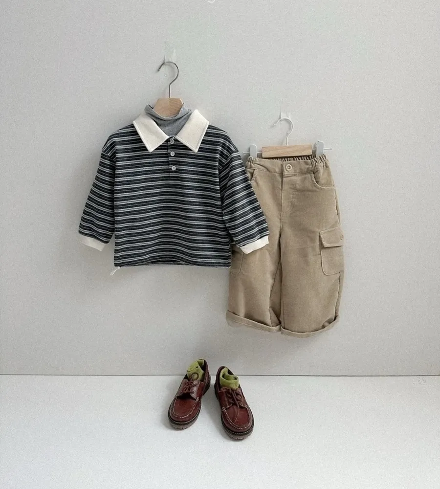 25'冬〡digreen〡下擺縮口繩襯衫領條紋上衣