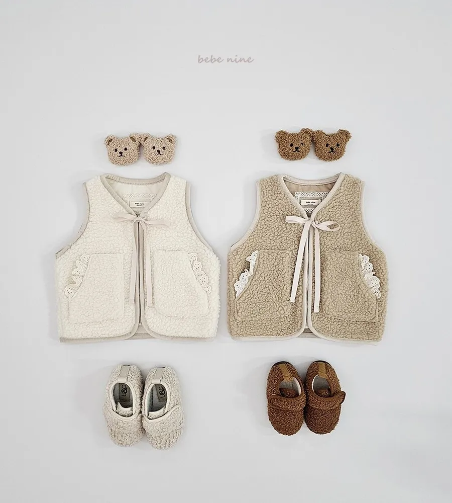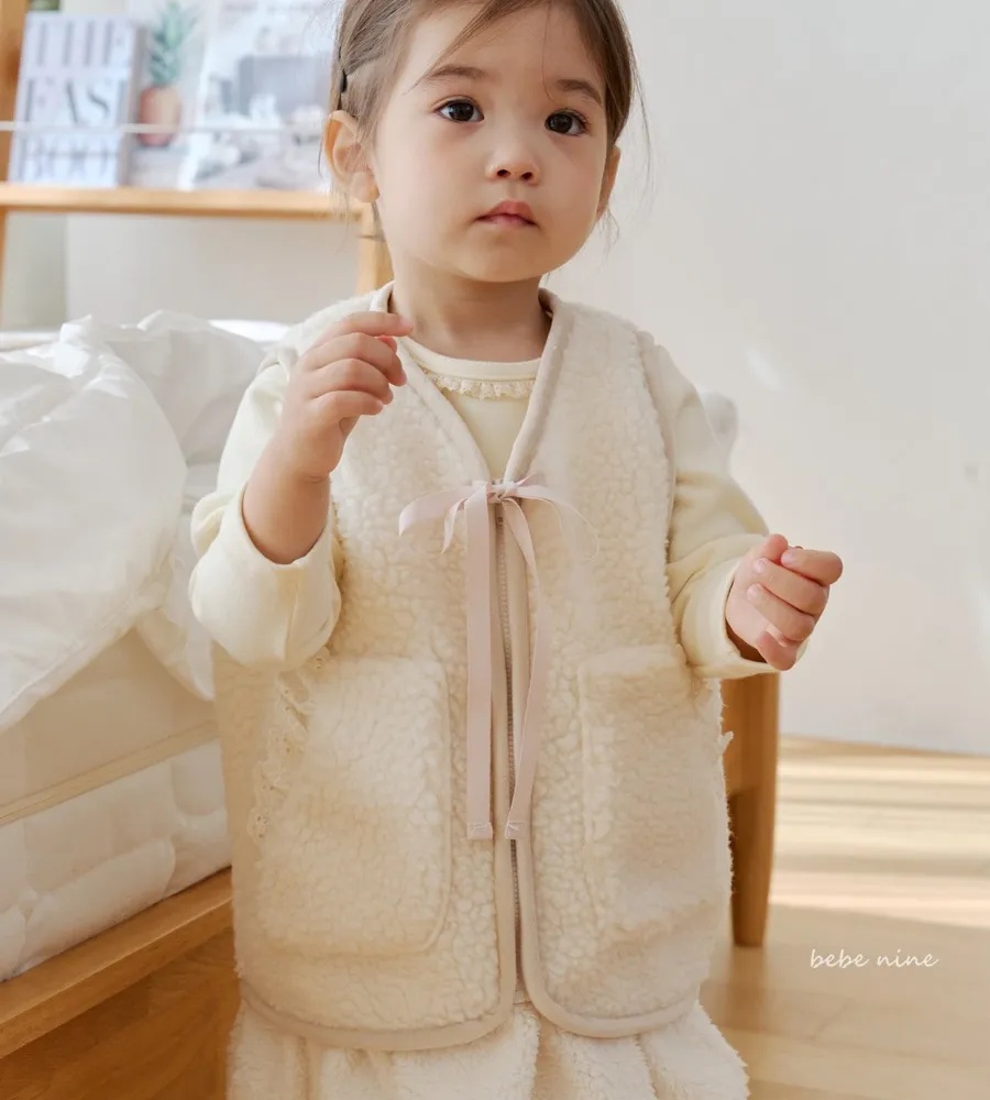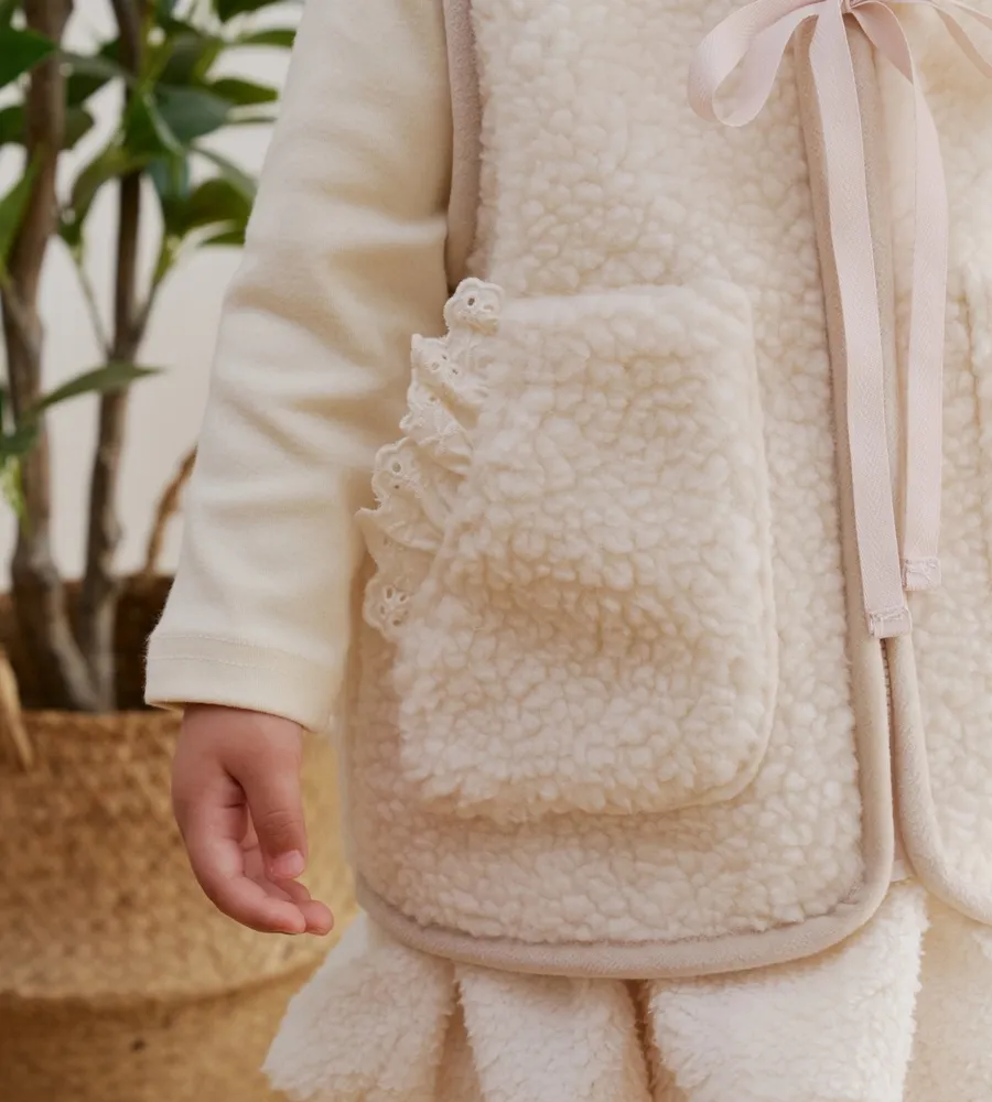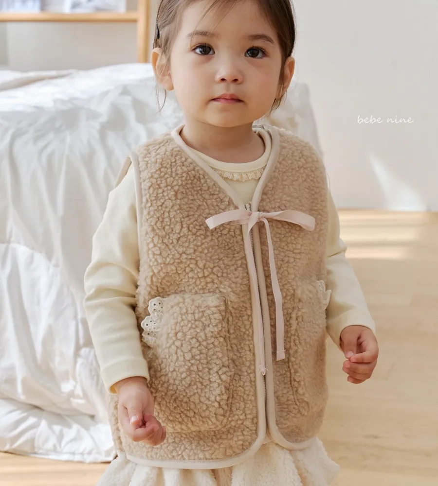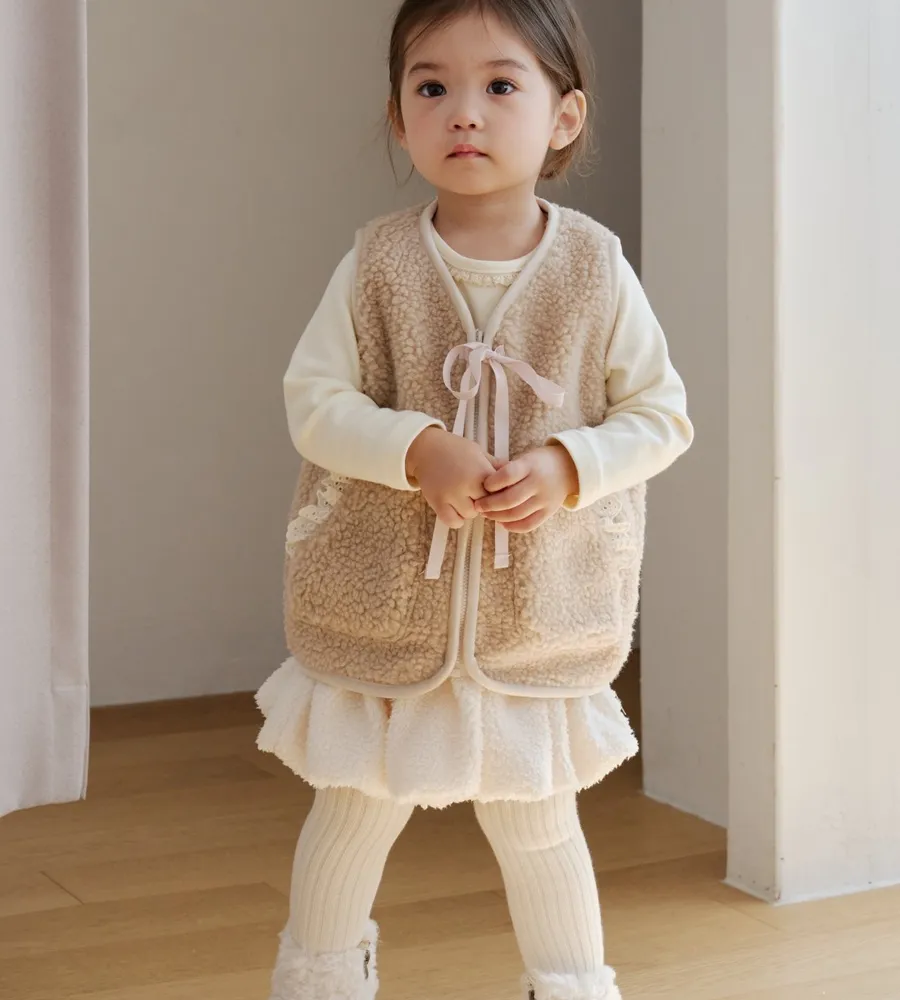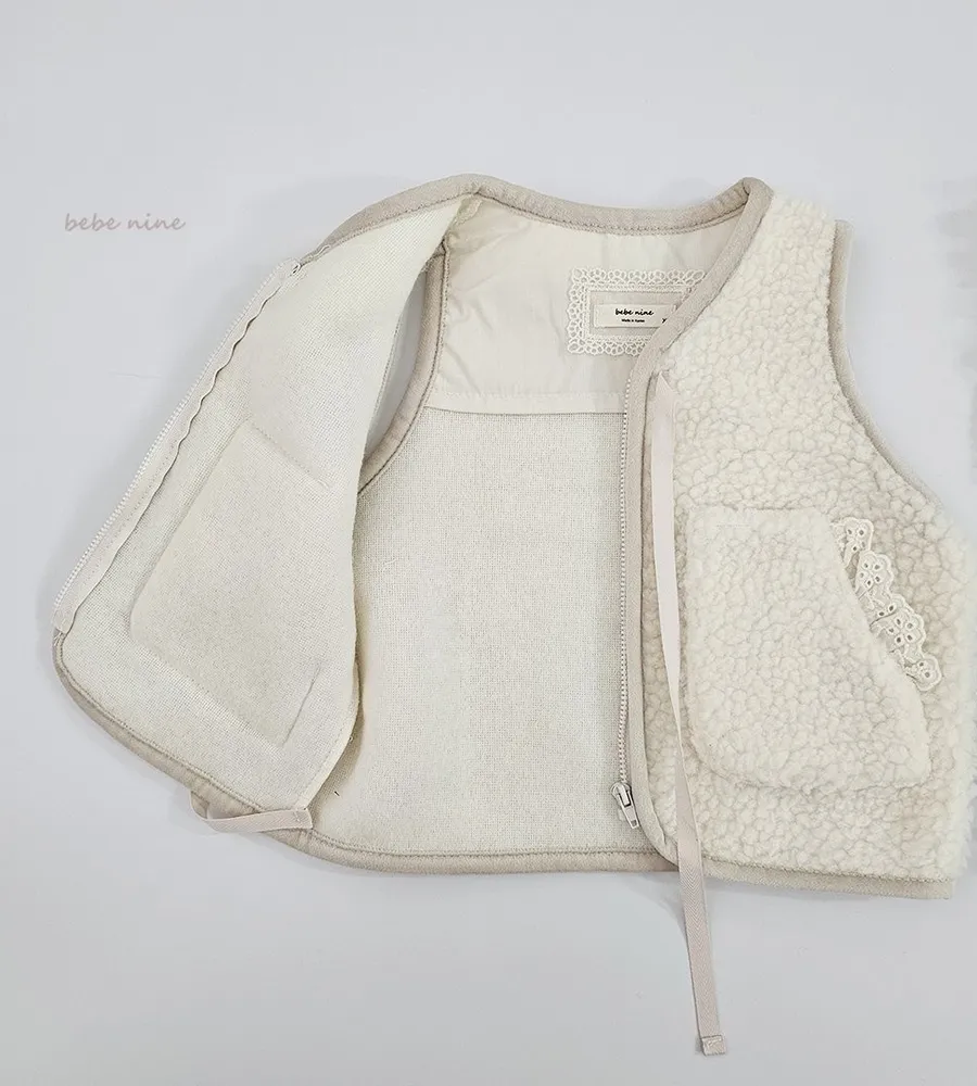25'冬〡bebenine〡毛絨絨荷葉邊口袋拉鍊背心