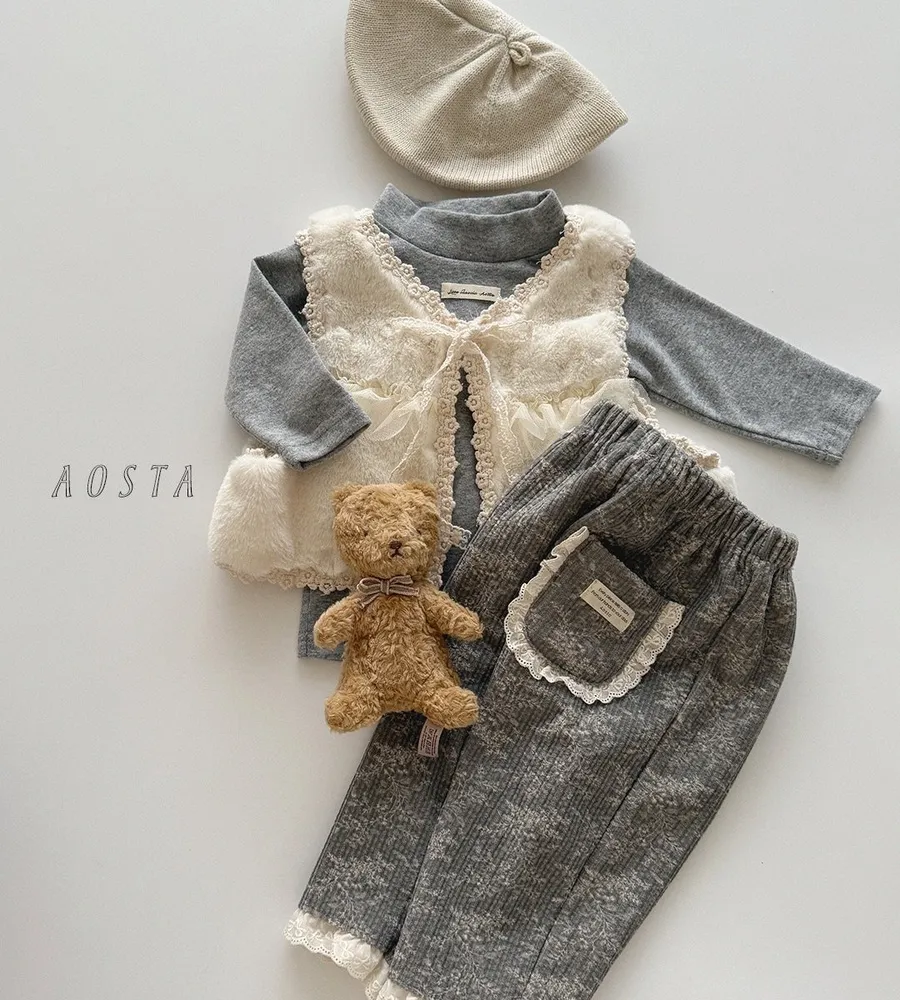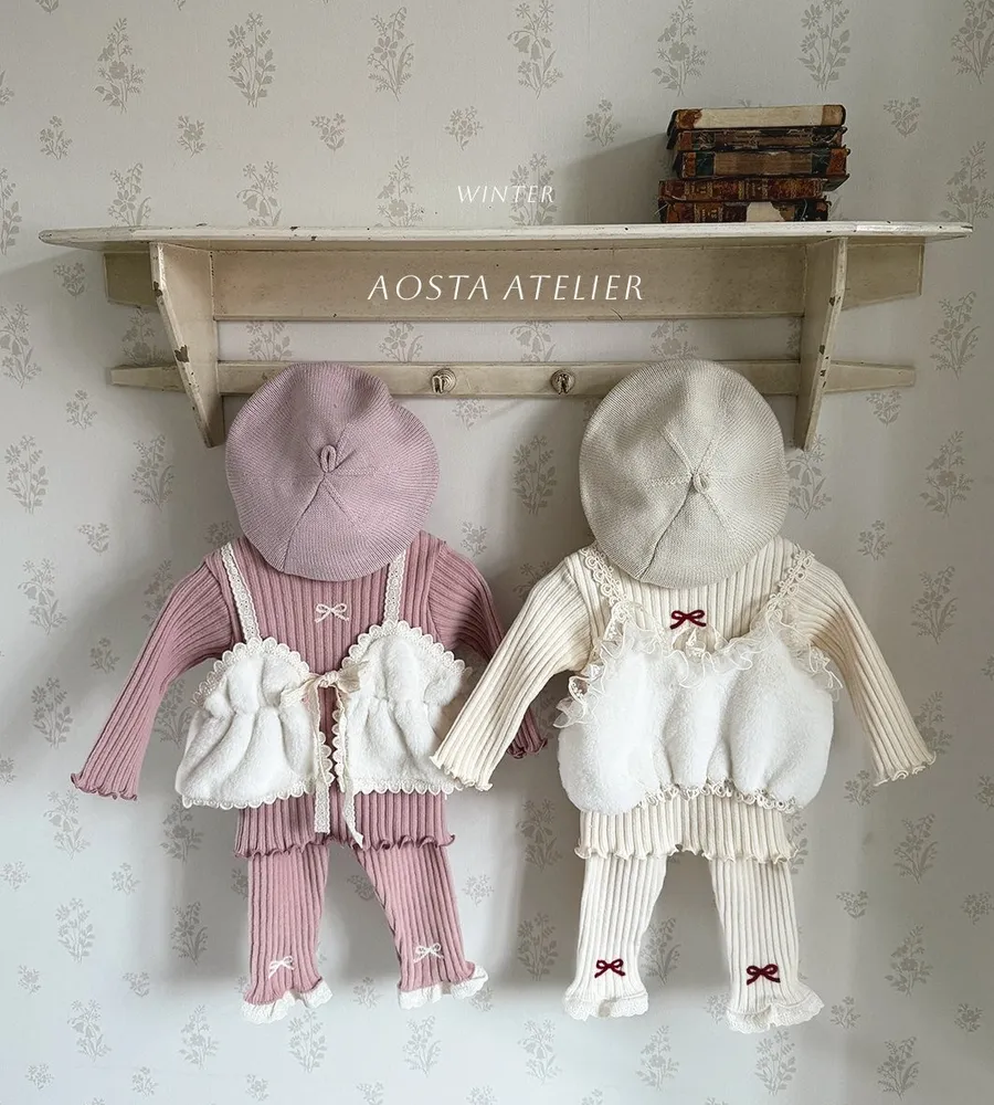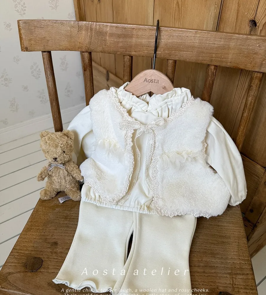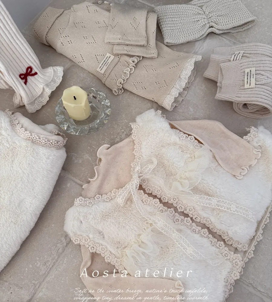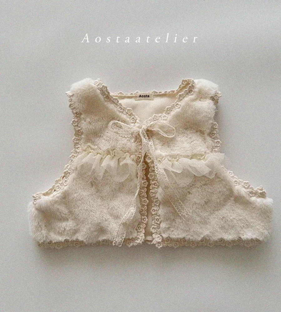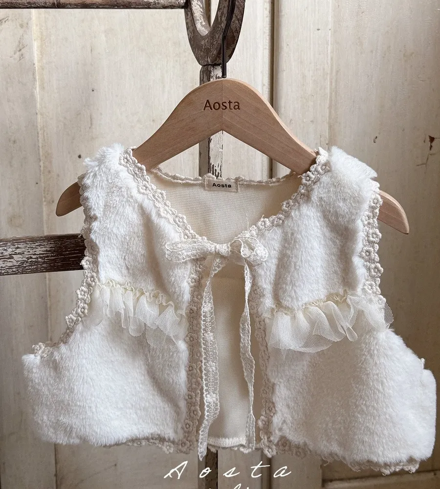 25'冬〡Aosta〡蕾絲緹花蝴蝶結綁帶毛絨背心