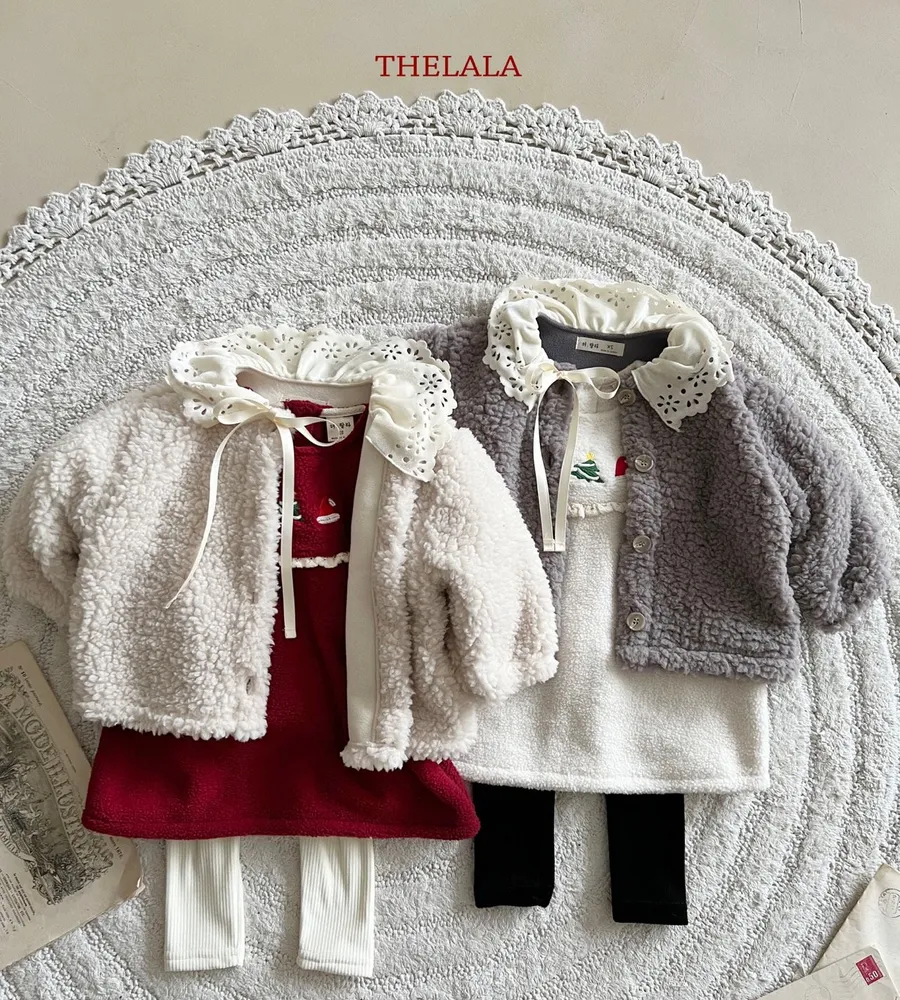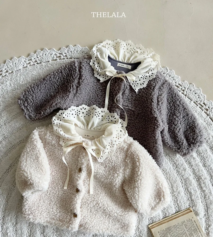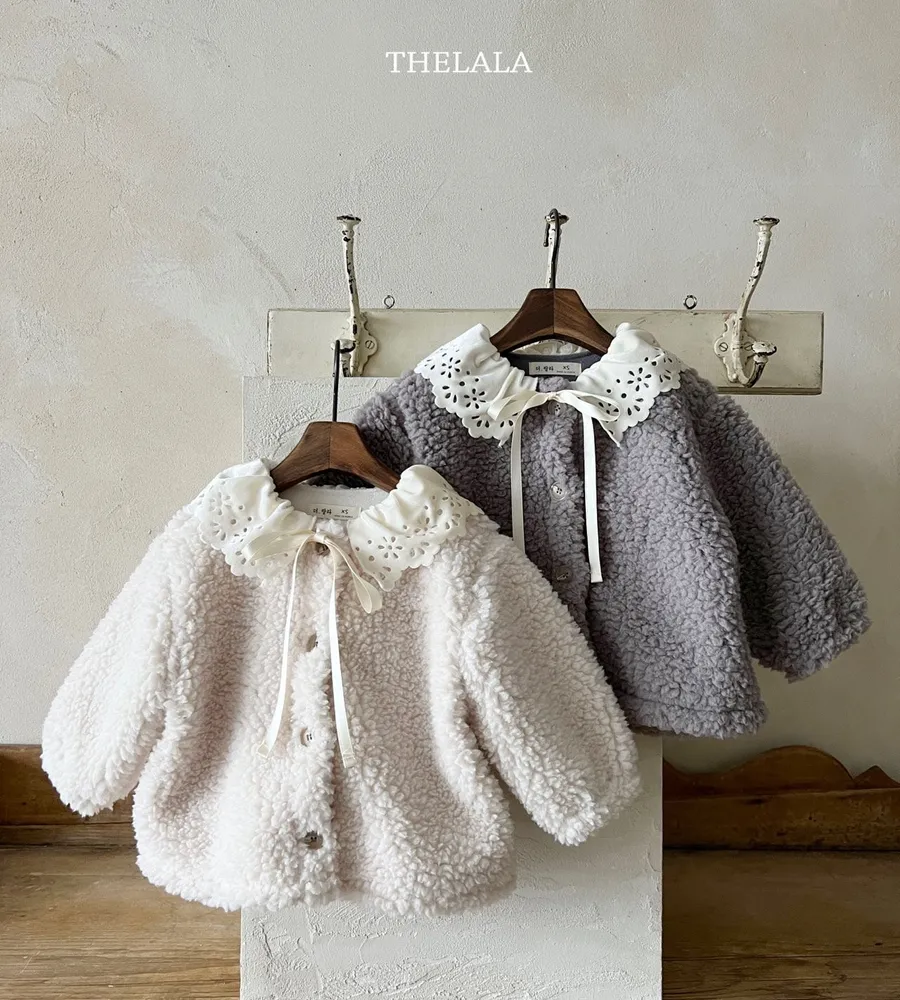 25'冬〡thelala〡絨毛緹花荷葉領排釦外套