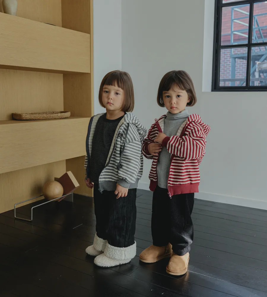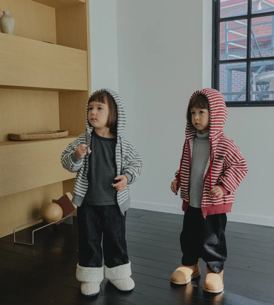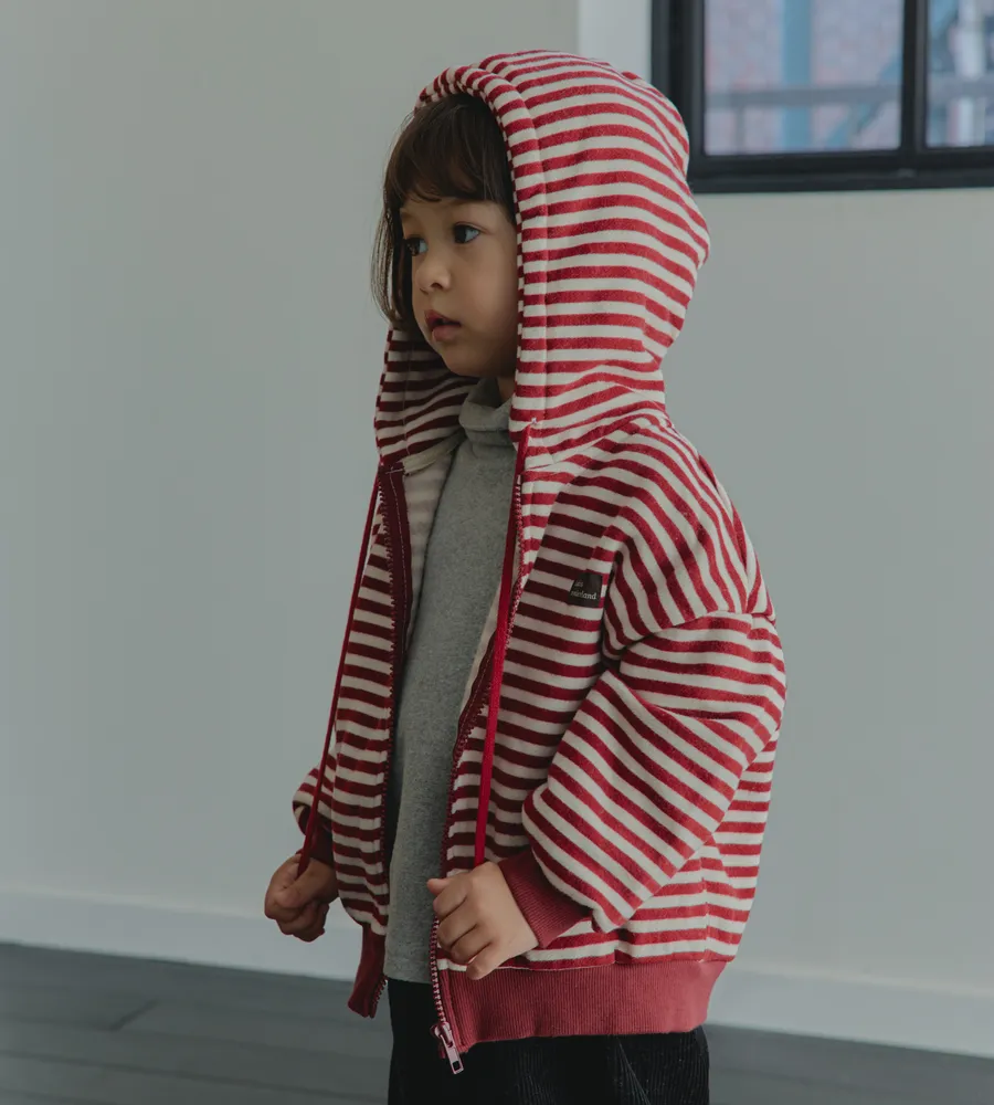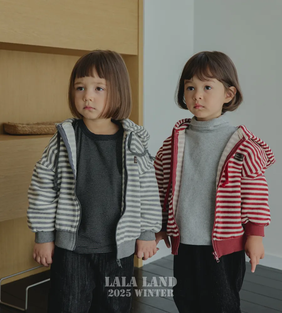 25'冬〡Lala Land〡橫條紋拉絨連帽拉鍊外套-Kids