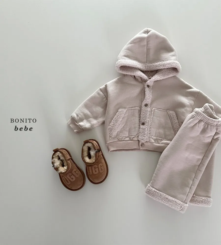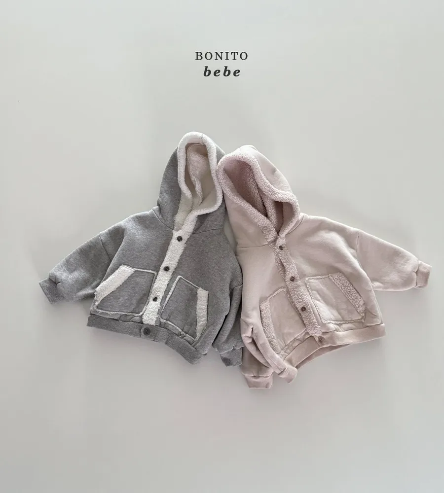 25'冬〡BONITO〡絨毛邊排扣連帽外套-Bebe