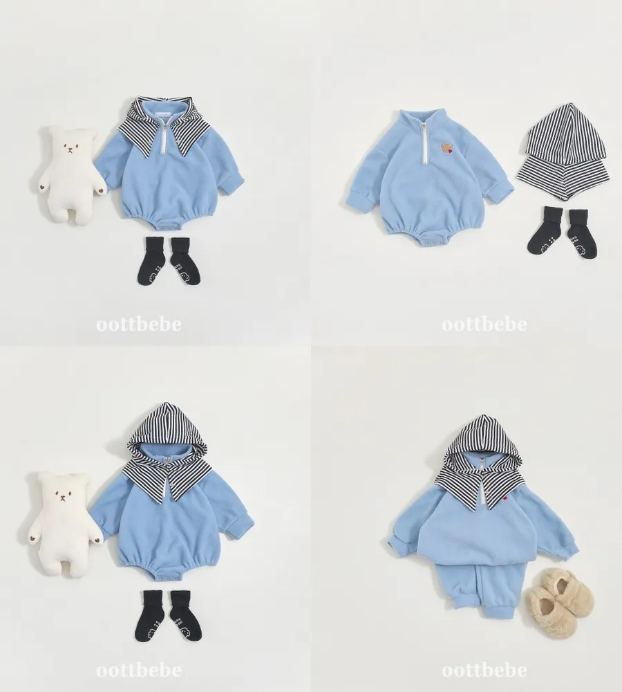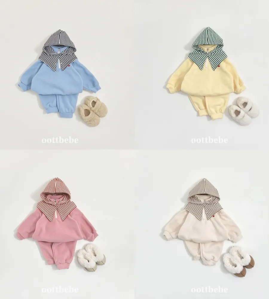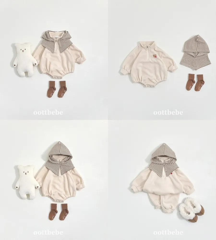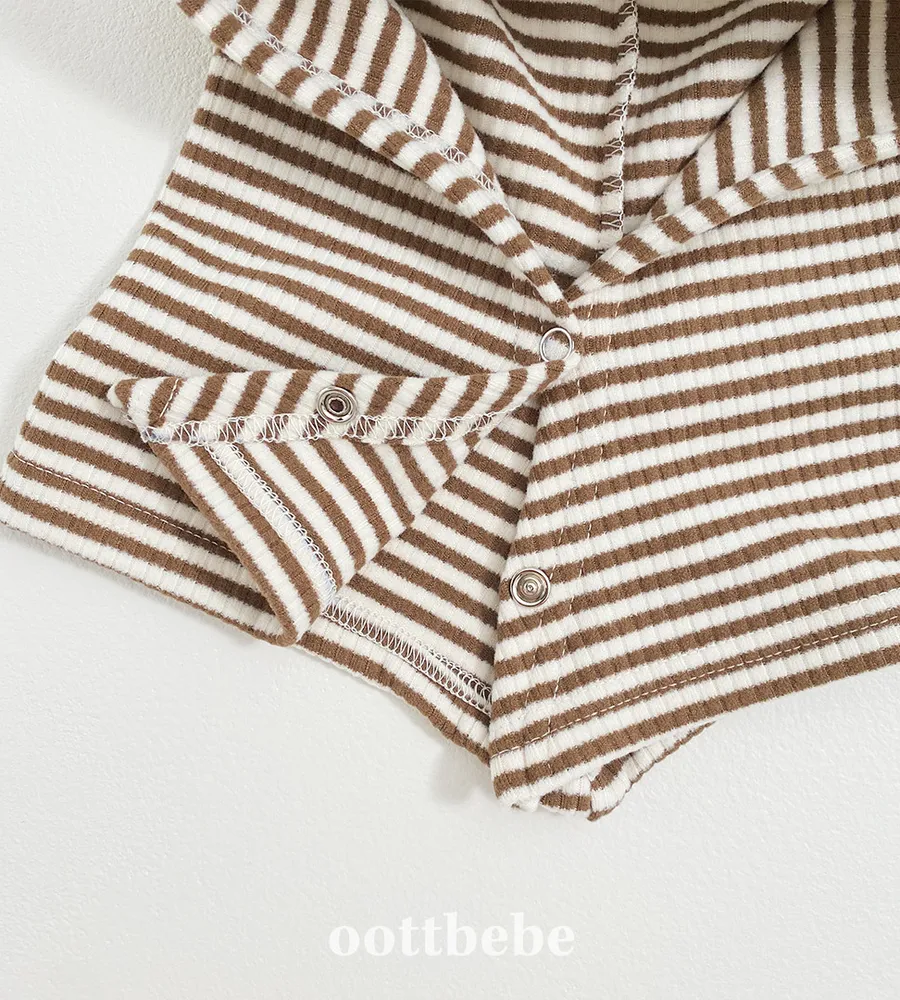 25'冬〡OOTTBEBE〡條紋連帽開扣小披風