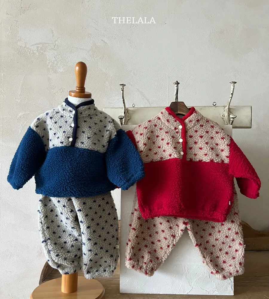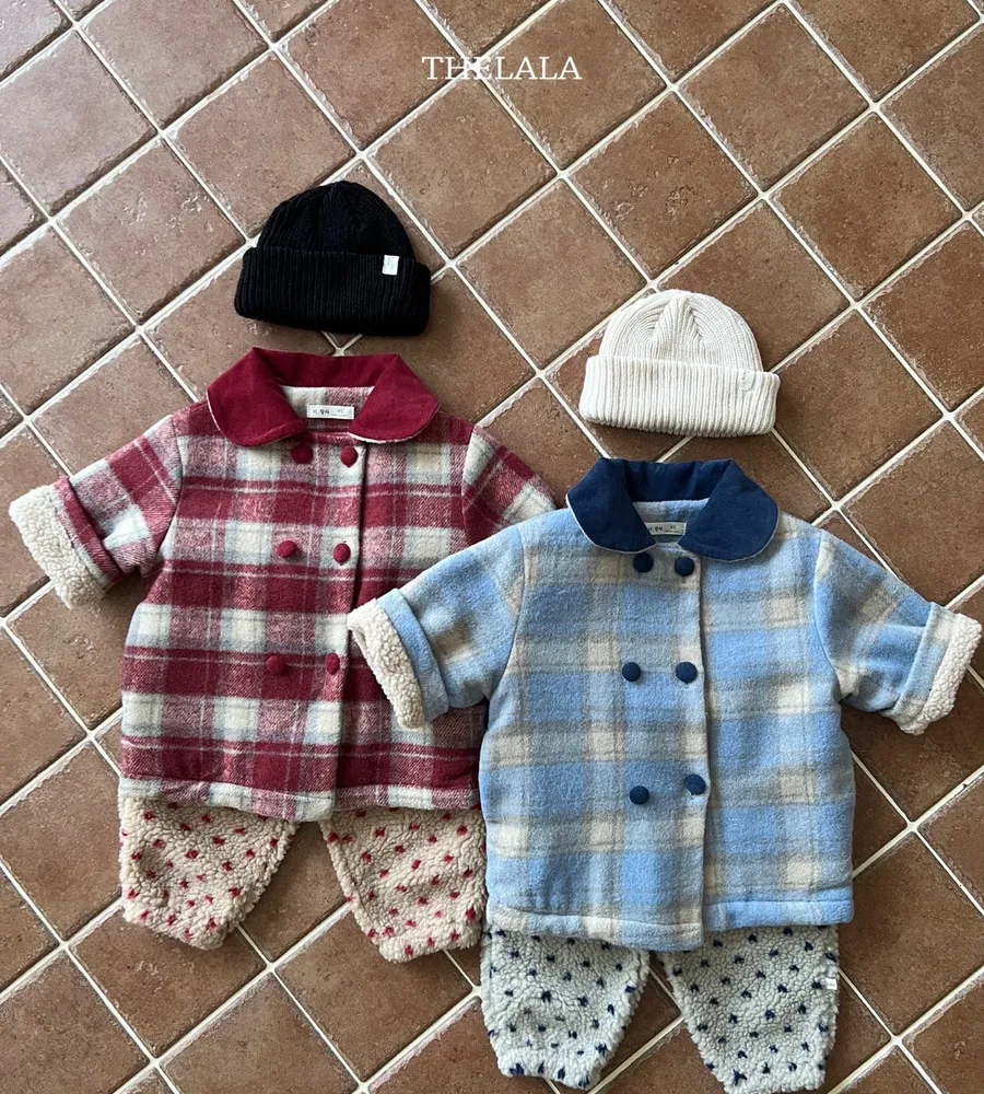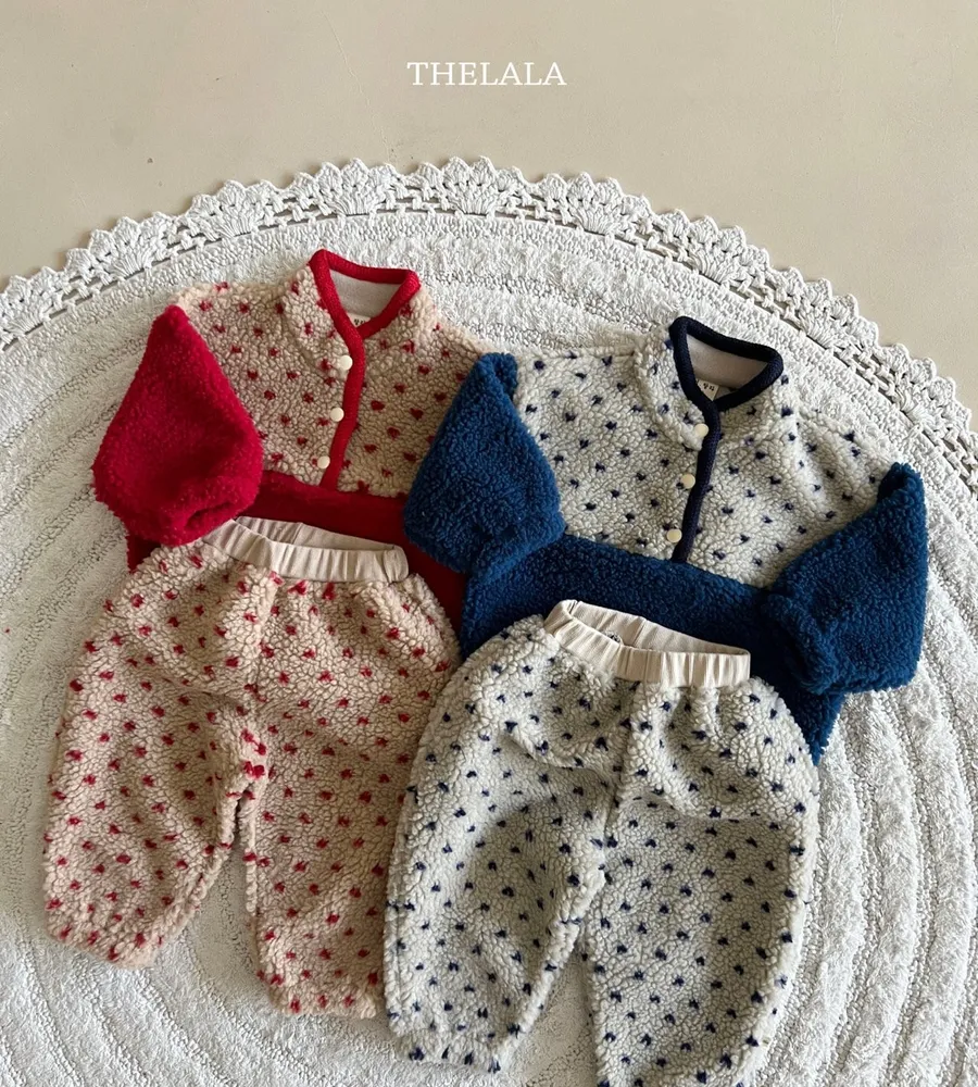 25'冬〡thelala〡絨毛波點拚接開扣立領上衣