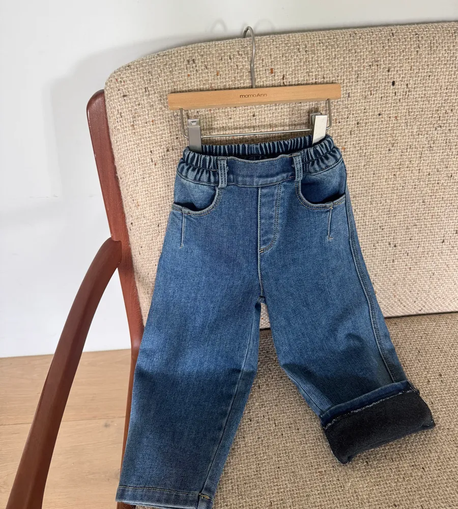 25'冬〡momoann〡口袋細褶內拉絨牛仔褲
