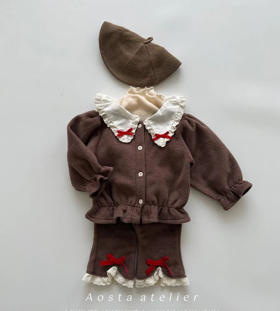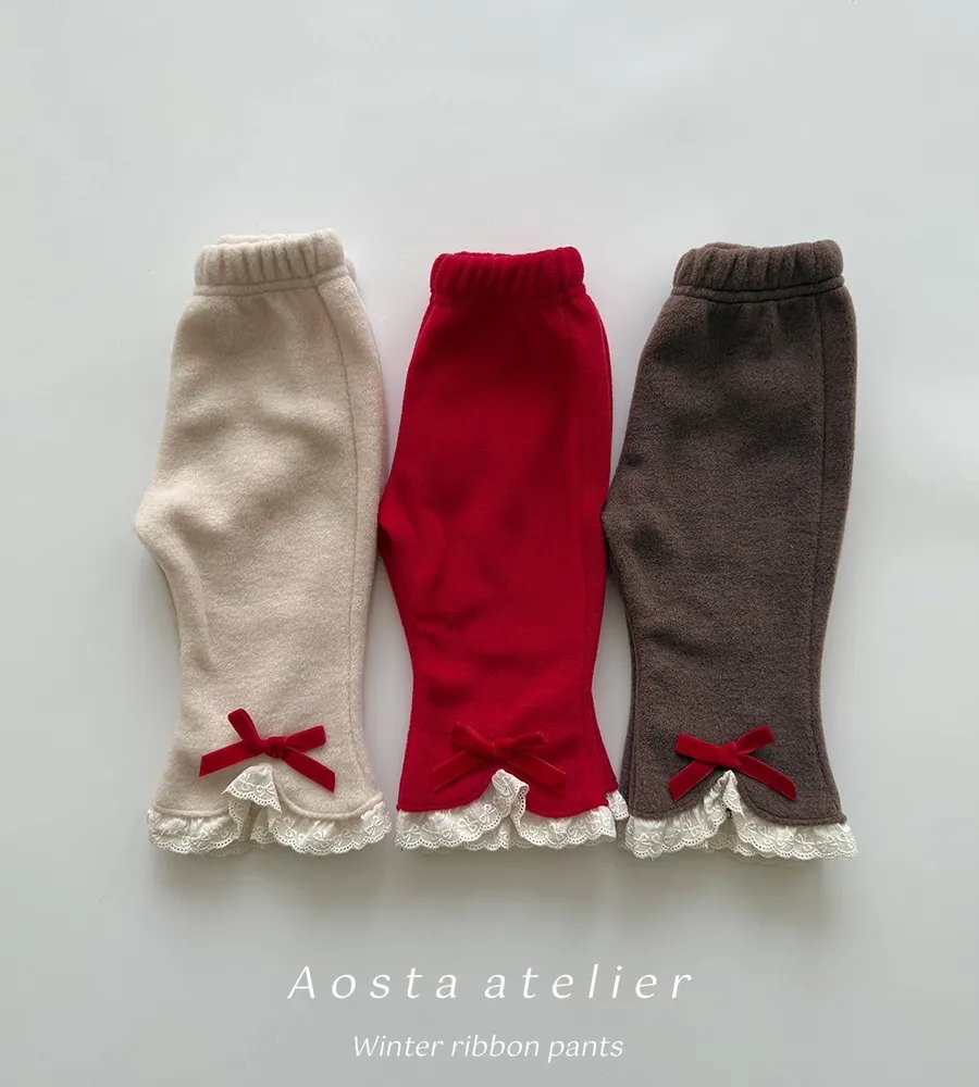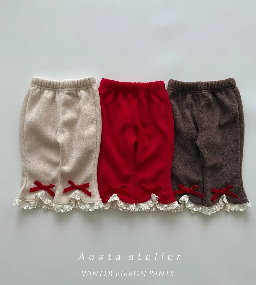 25'冬〡Aosta〡毛織蕾絲花邊蝴蝶結喇叭褲