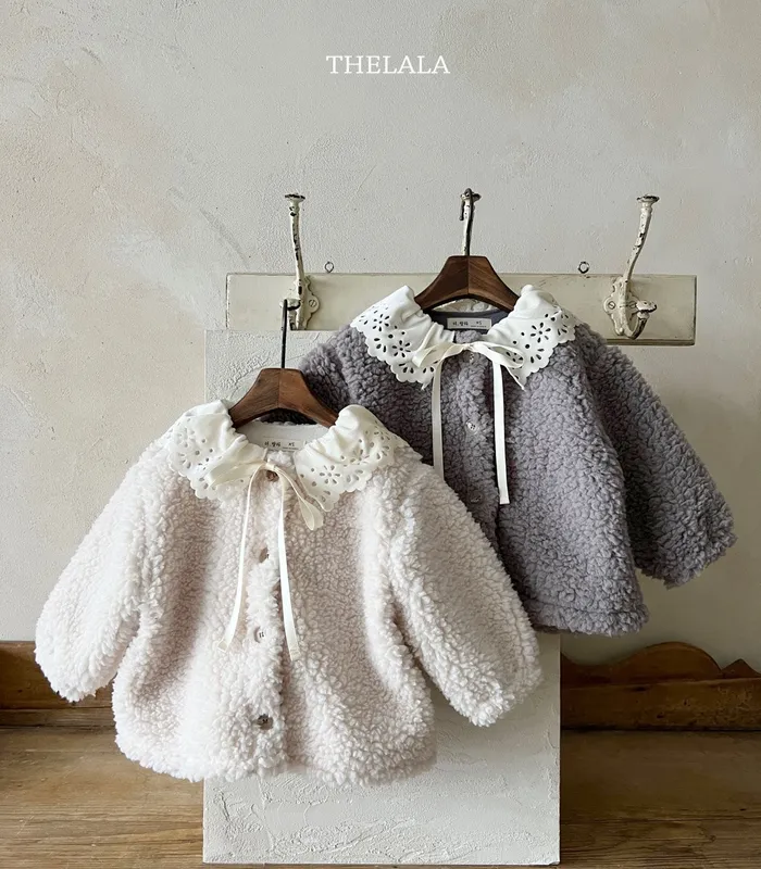 25'冬〡thelala〡絨毛緹花荷葉領排釦外套