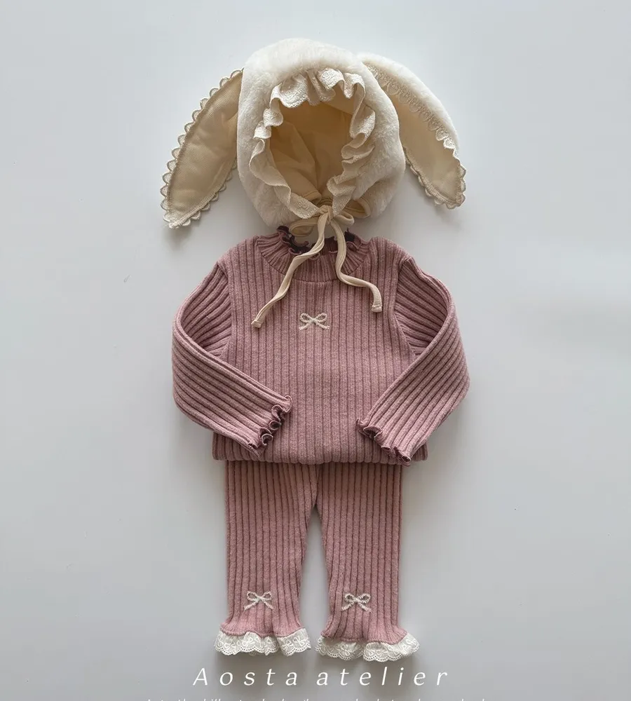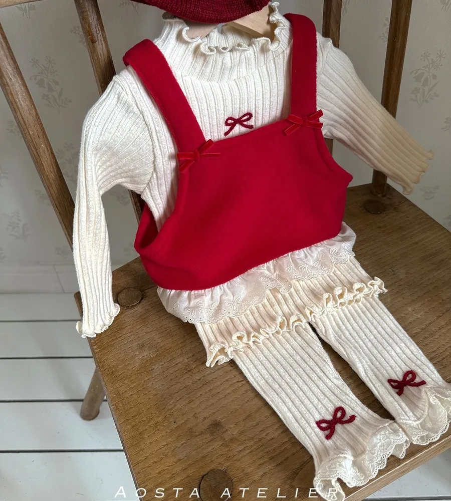 25'冬〡Aosta〡蕾絲花邊蝴蝶結刺繡坑條打底褲