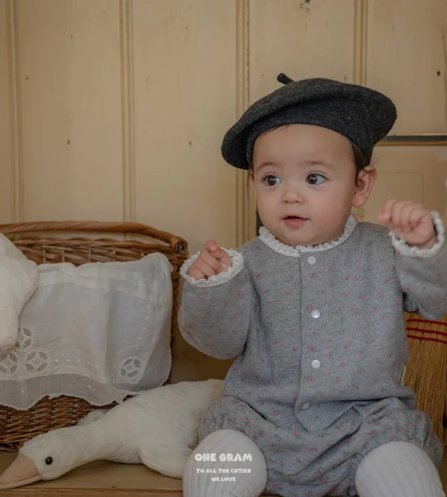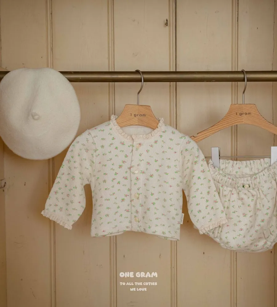 25'f/w〡one gram〡花花蕾絲邊針織開衫套裝(衣+褲)