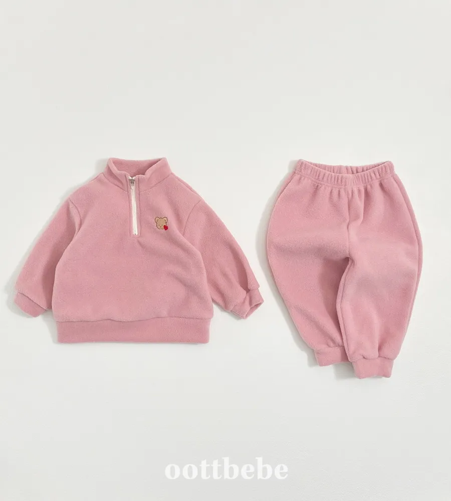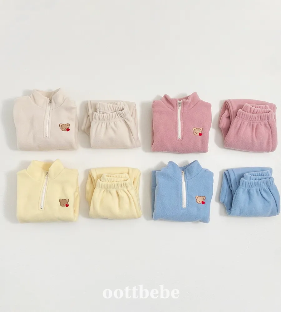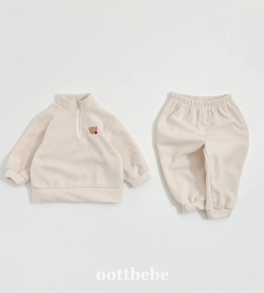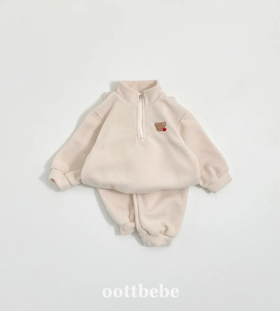 25'冬〡OOTTBEBE〡絨布刺繡小熊拉鍊立領套裝(衣+褲)