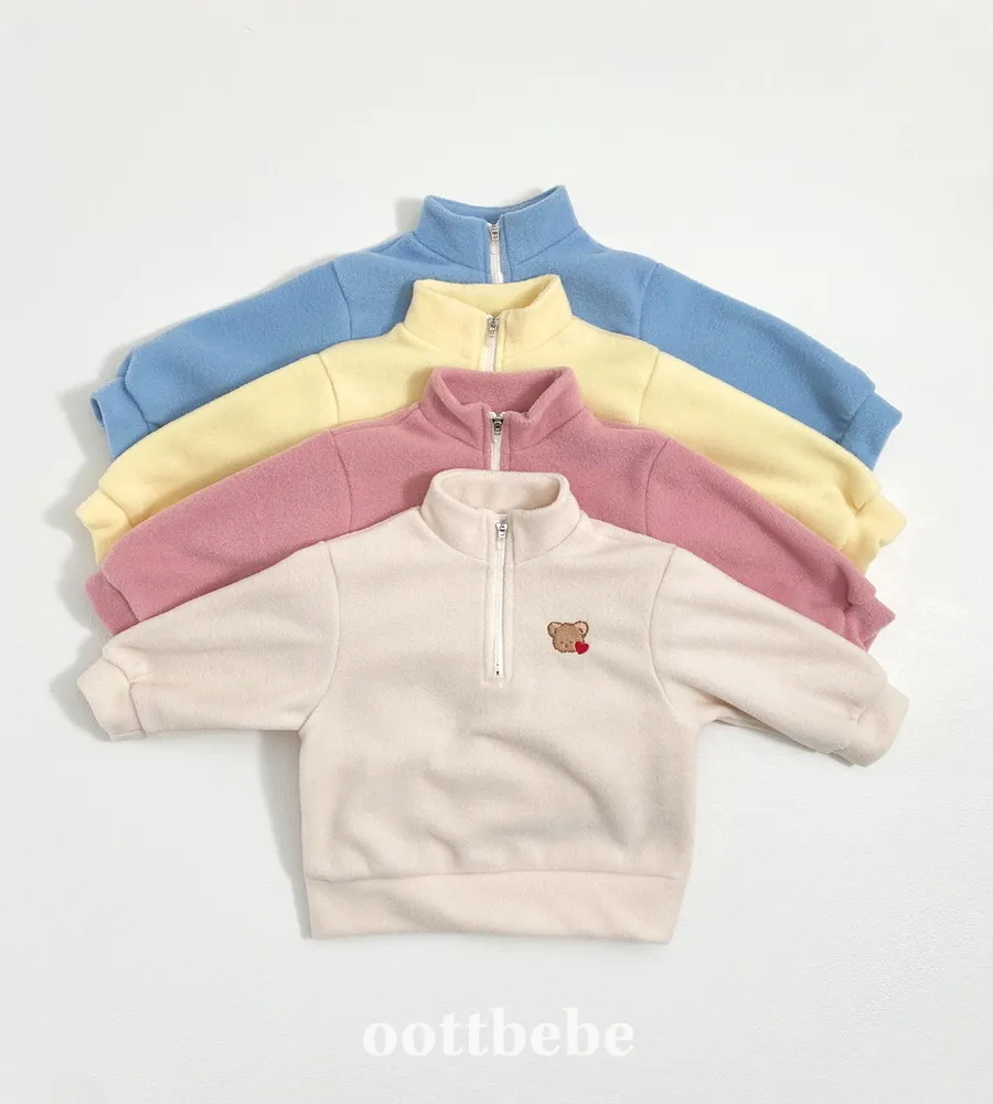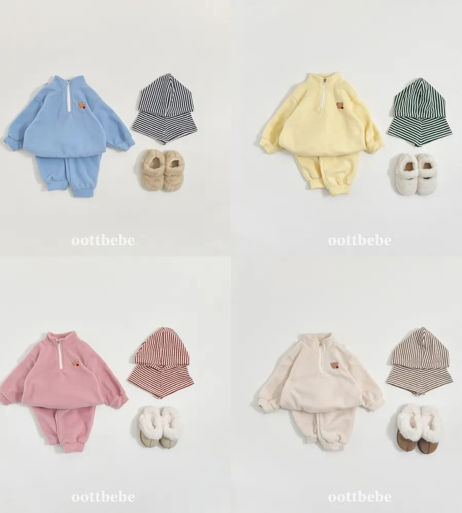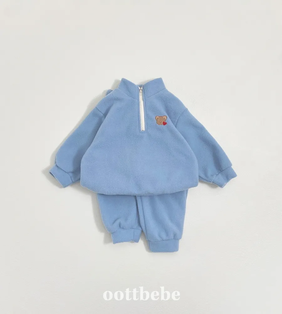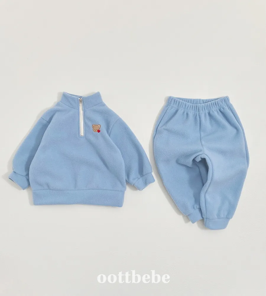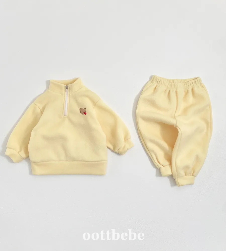 25'冬〡OOTTBEBE〡絨布刺繡小熊拉鍊立領套裝(衣+褲)