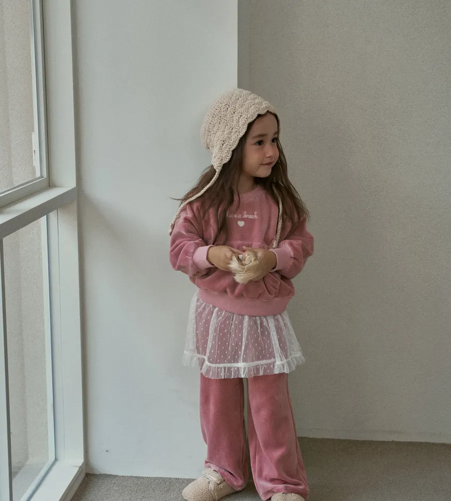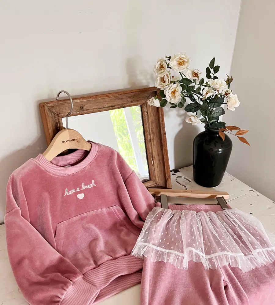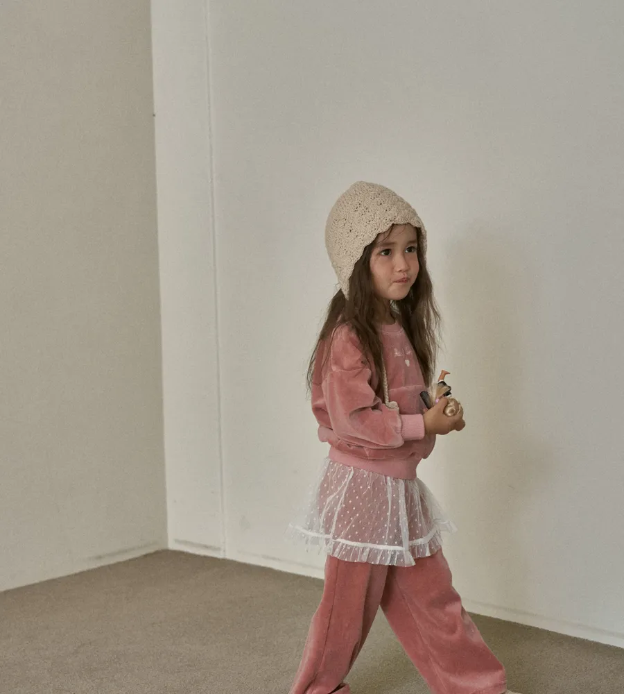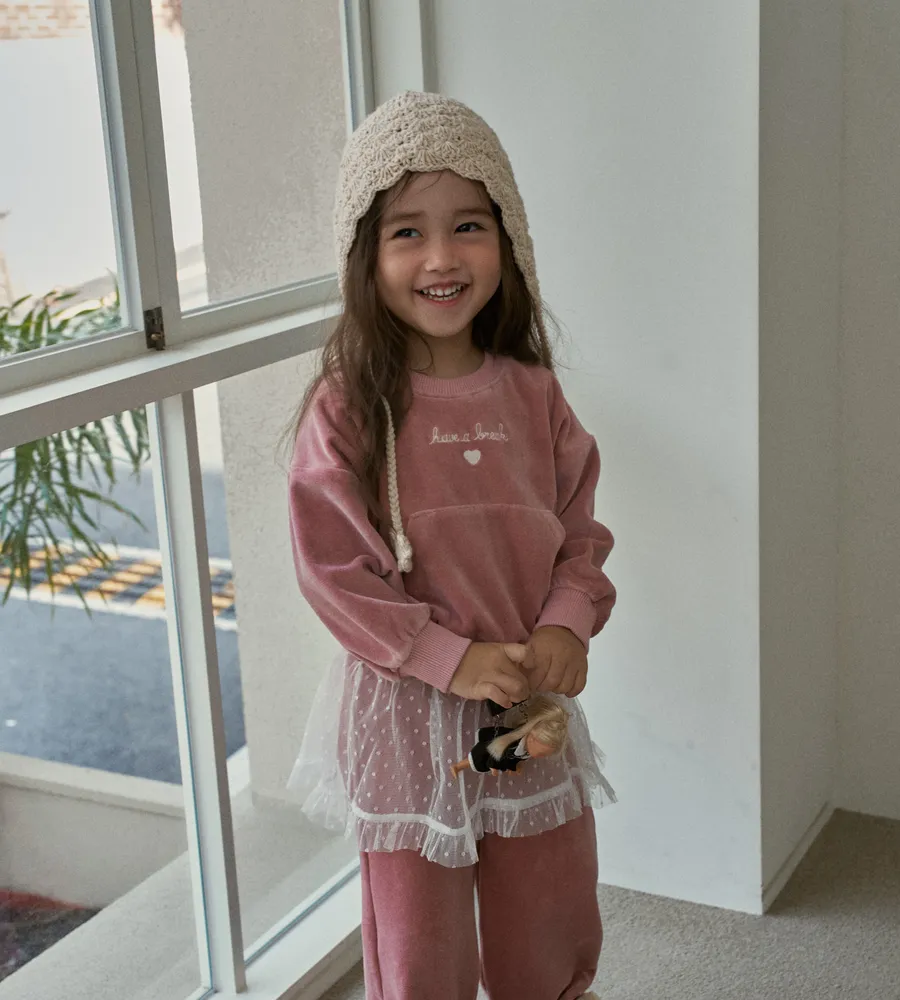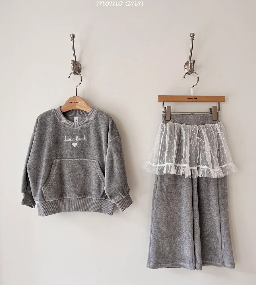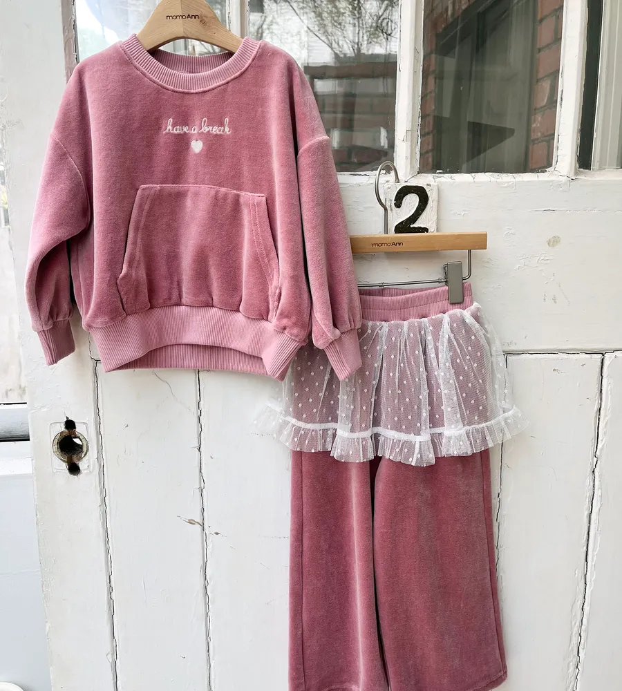 25'冬〡momoann〡天鵝絨字母刺繡網紗套裝(衣+褲)