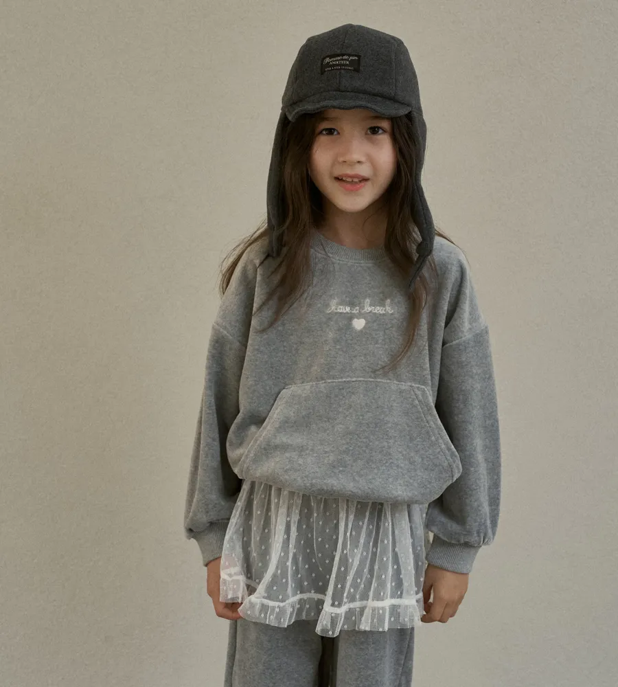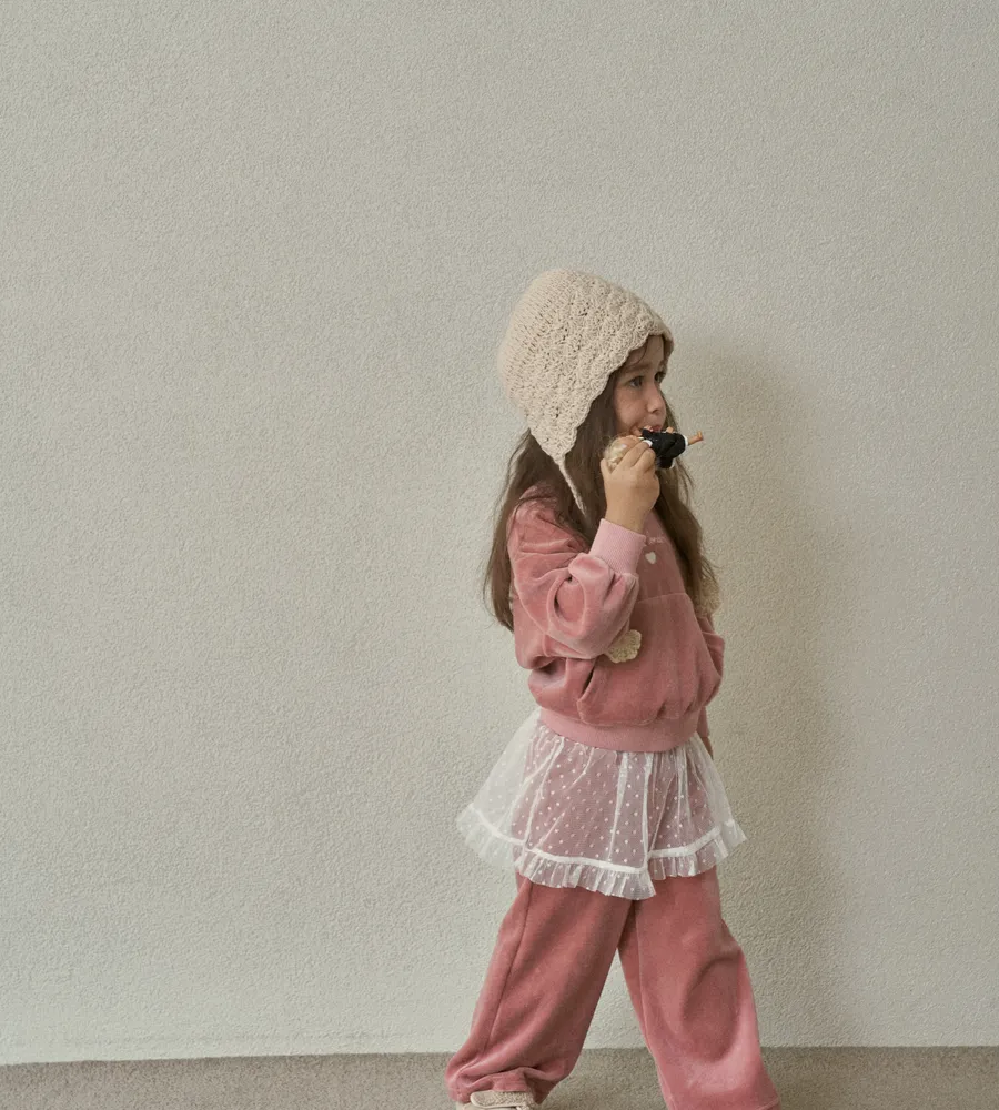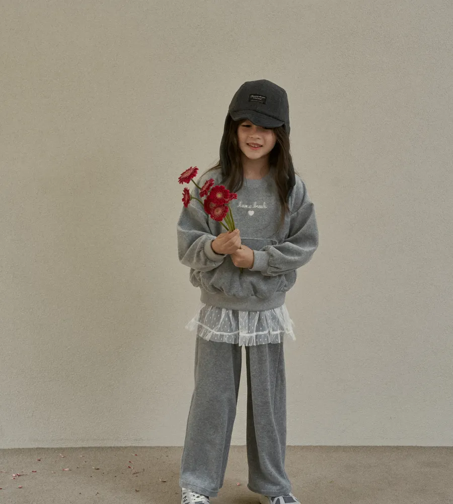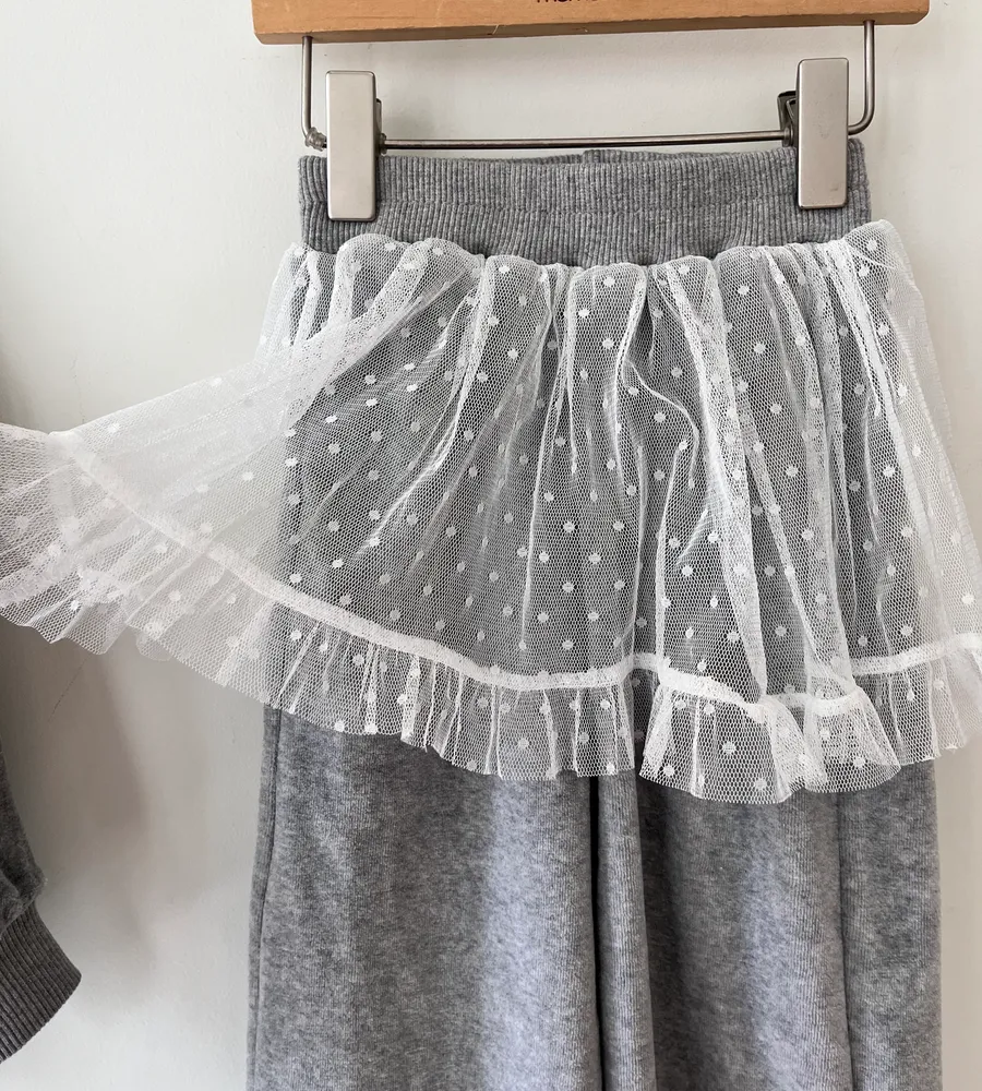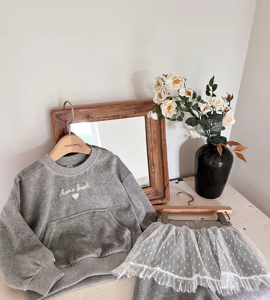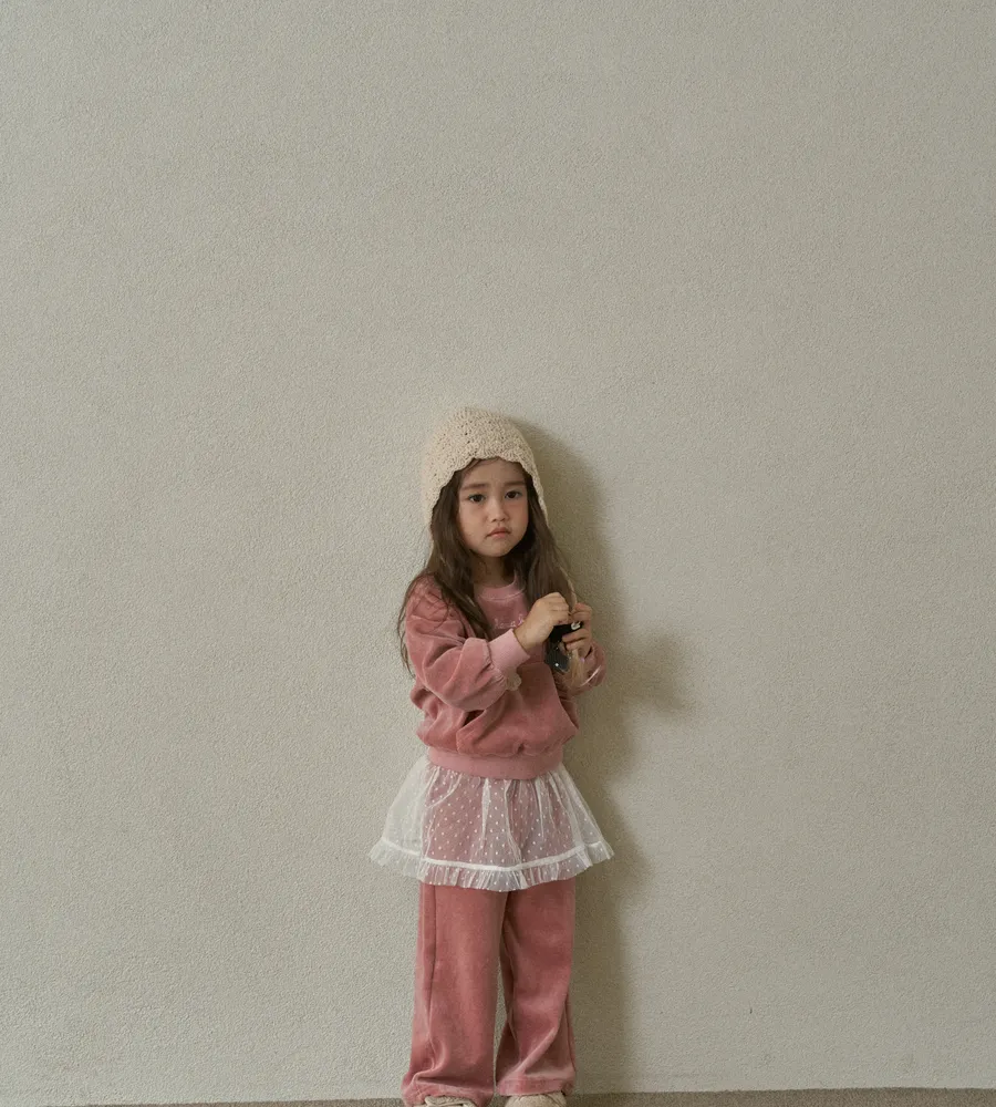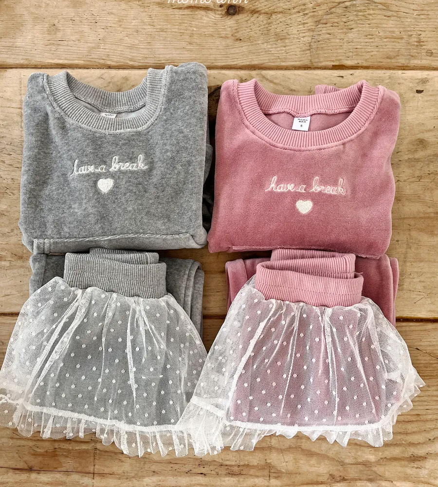 25'冬〡momoann〡天鵝絨字母刺繡網紗套裝(衣+褲)