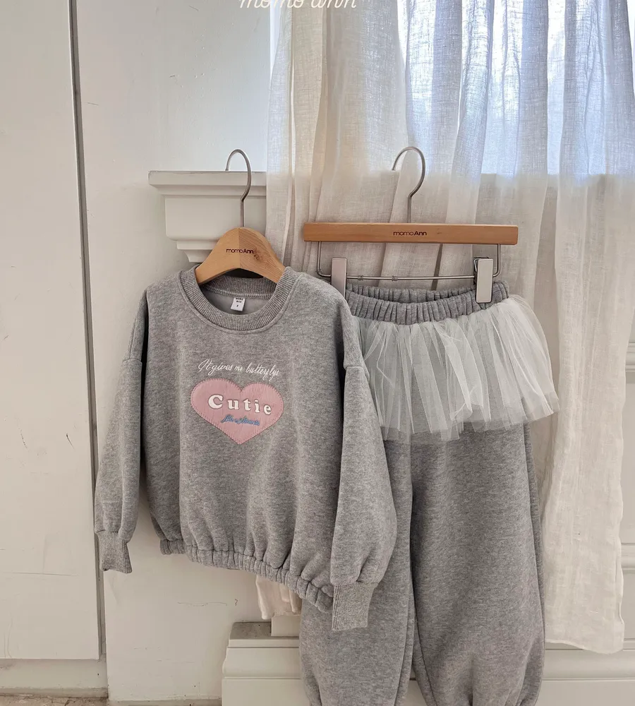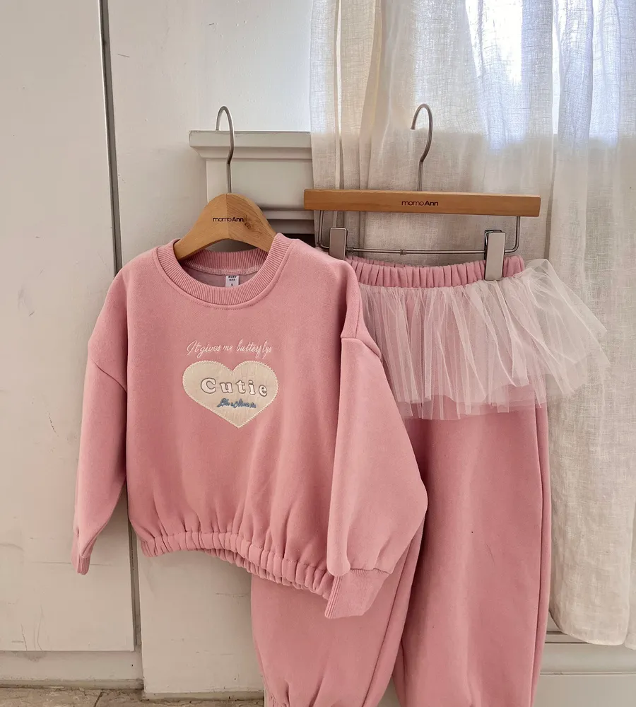25'冬〡momoann〡cotie愛心網紗拉絨套裝(衣+褲)