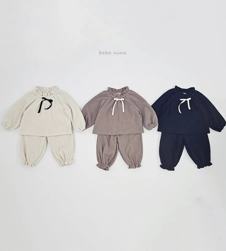 25'冬〡bebenine〡羅紋荷葉縮口袖套裝(衣+褲)