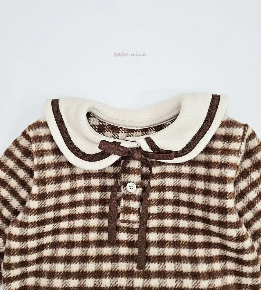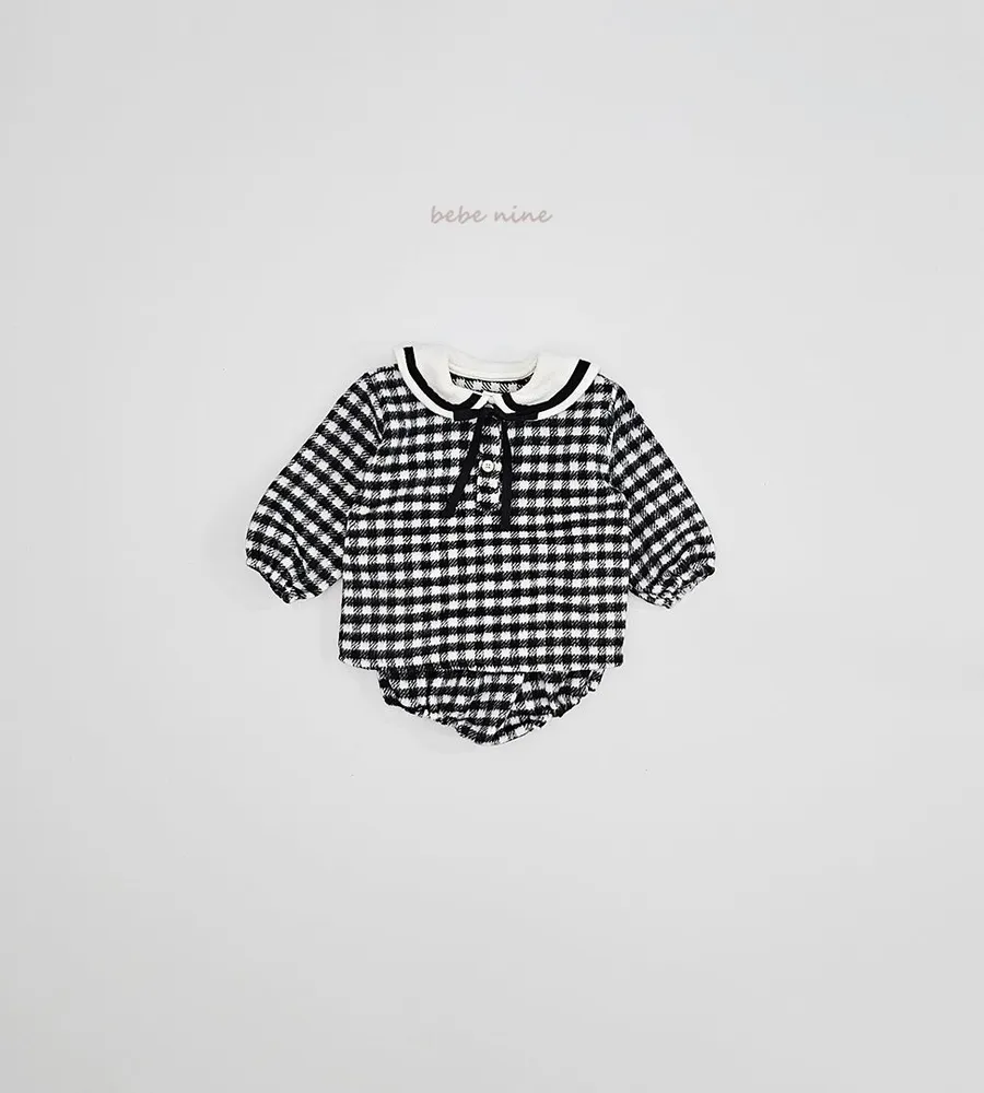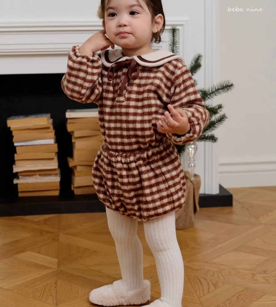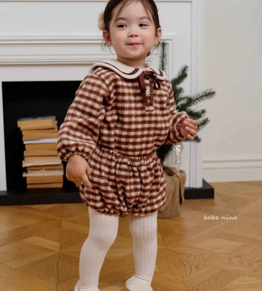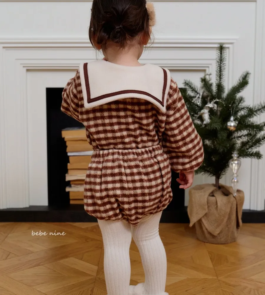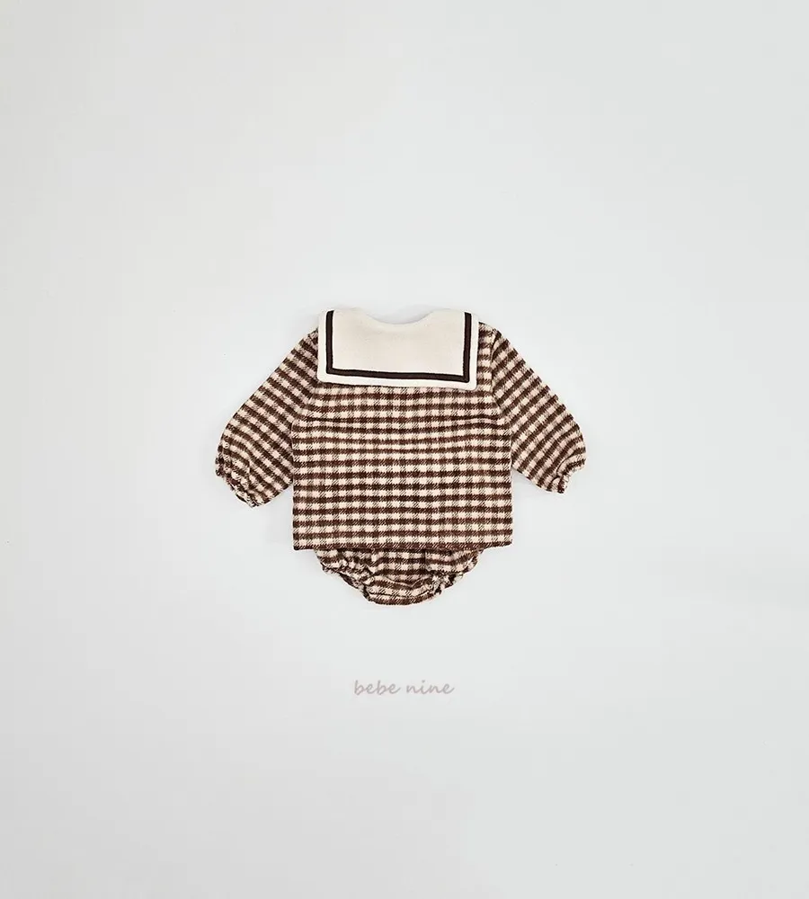 25'冬〡bebenine〡10%羊毛格紋海軍領套裝(衣+褲)