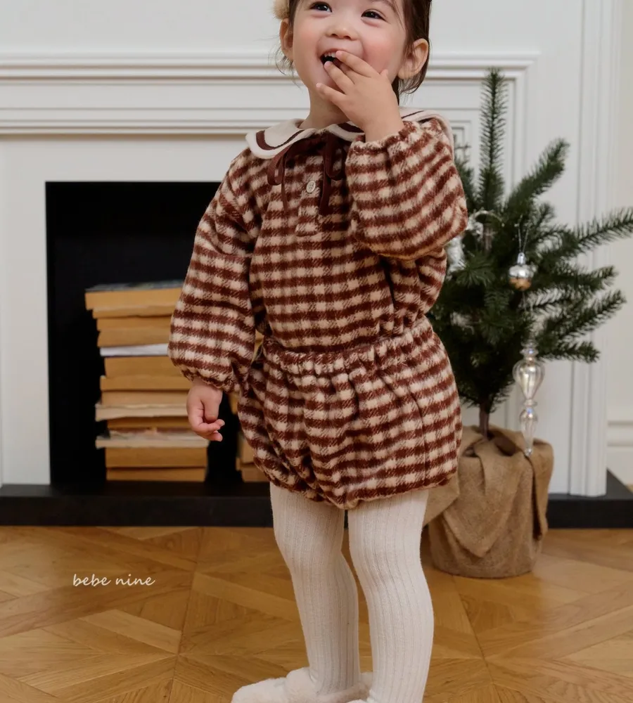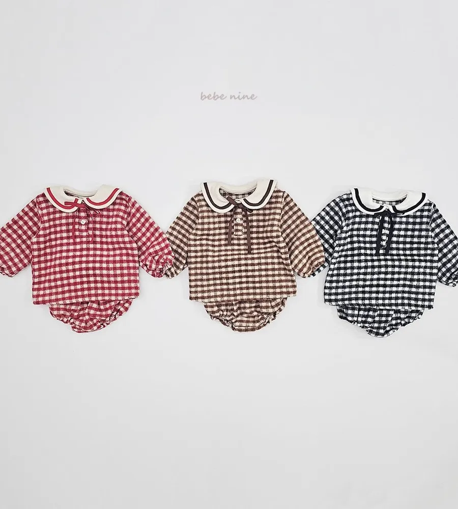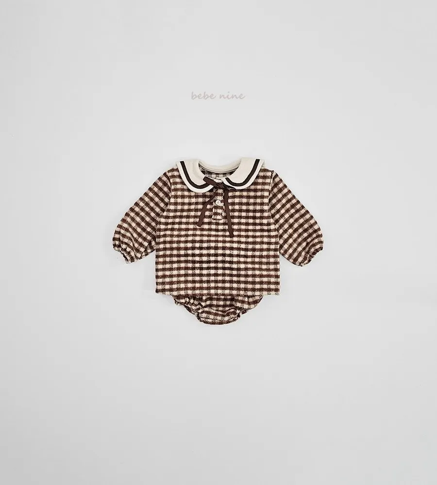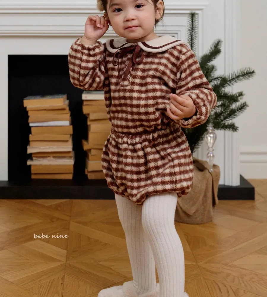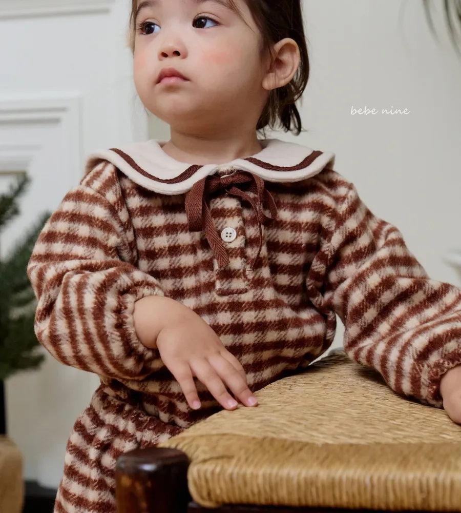25'冬〡bebenine〡10%羊毛格紋海軍領套裝(衣+褲)
