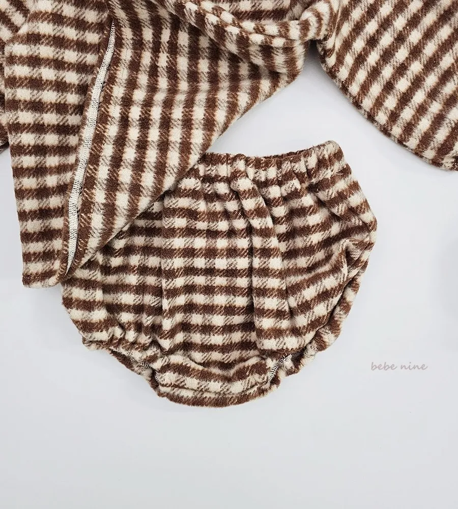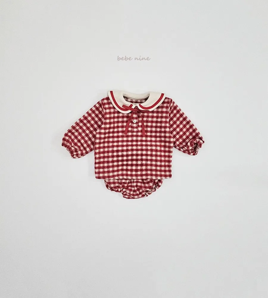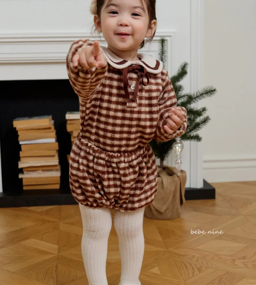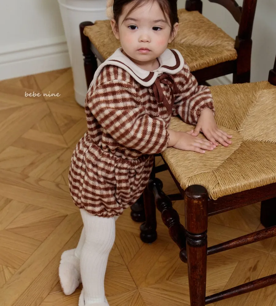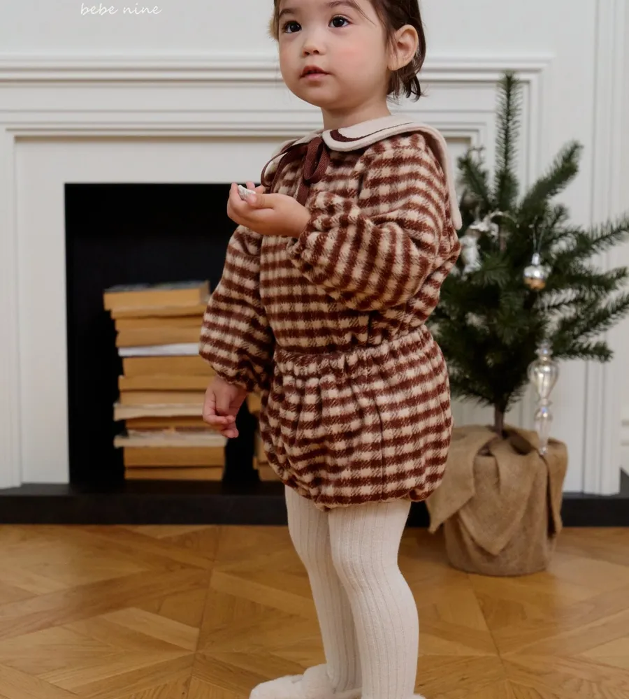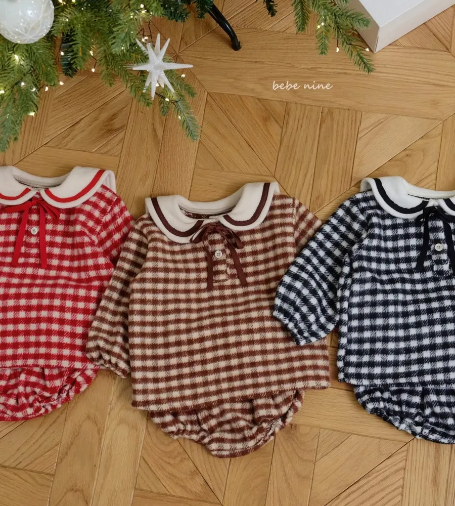 25'冬〡bebenine〡10%羊毛格紋海軍領套裝(衣+褲)