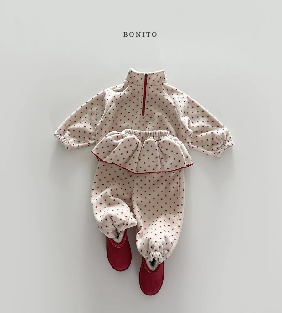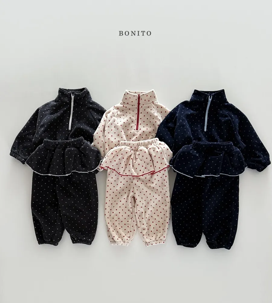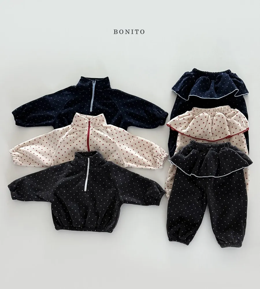 25'冬〡BONITO〡波點絨布拉鏈立領套裝(衣+褲)
