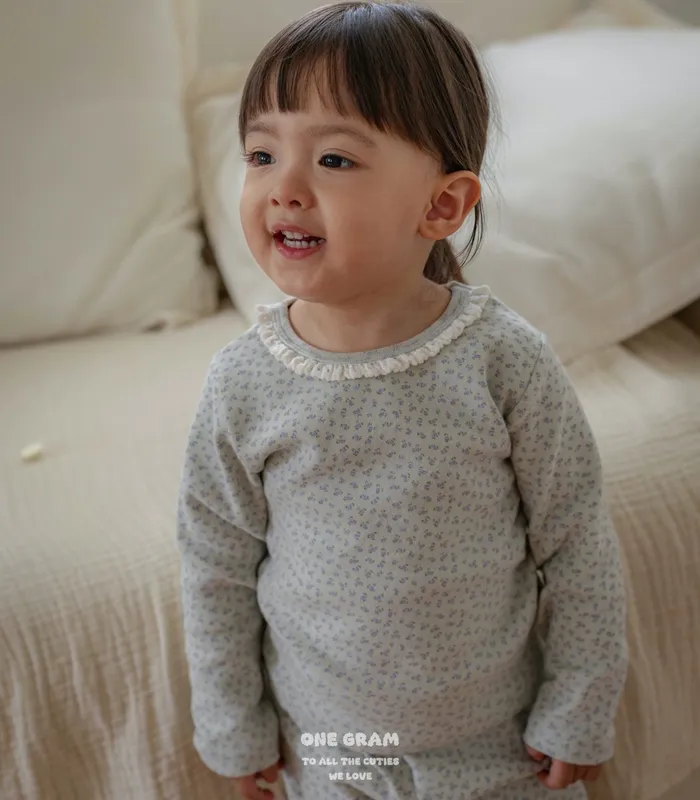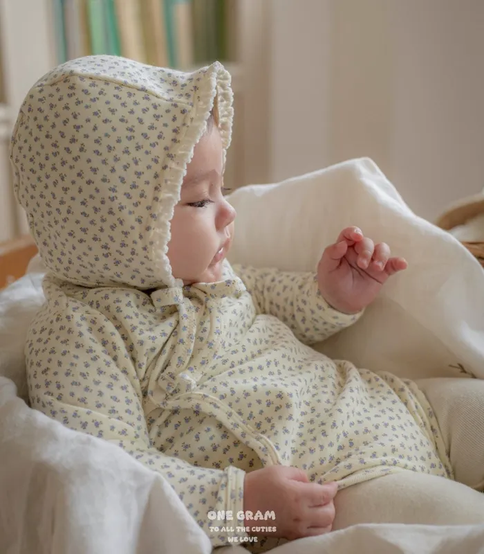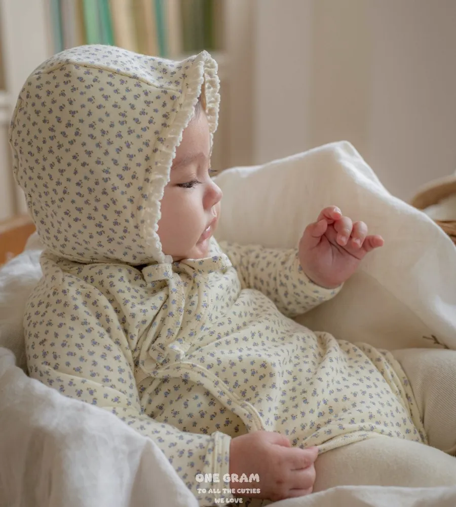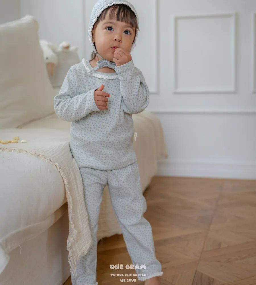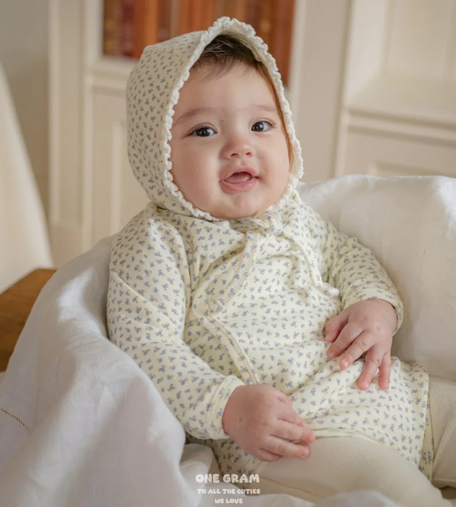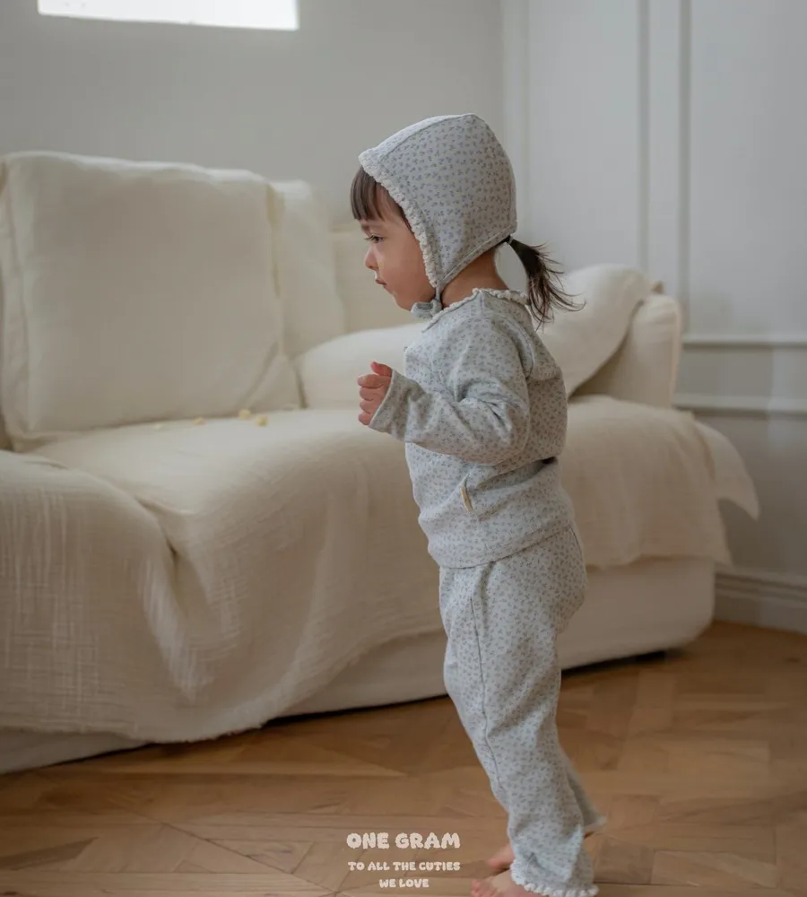 25'f/w〡one gram〡田園藍花蕾絲花邊綁帶帽