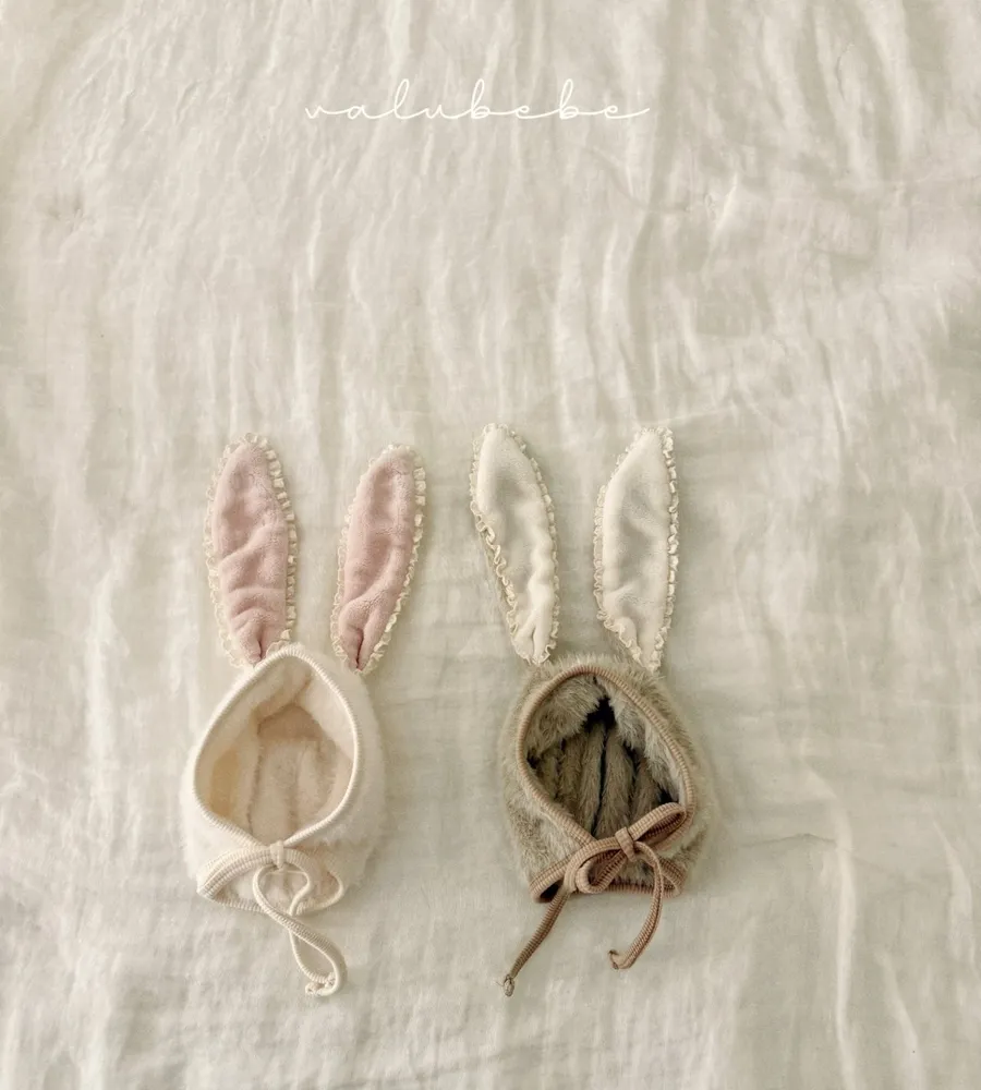 25'冬〡valubebe〡絨毛蕾絲花邊兔耳綁帶帽