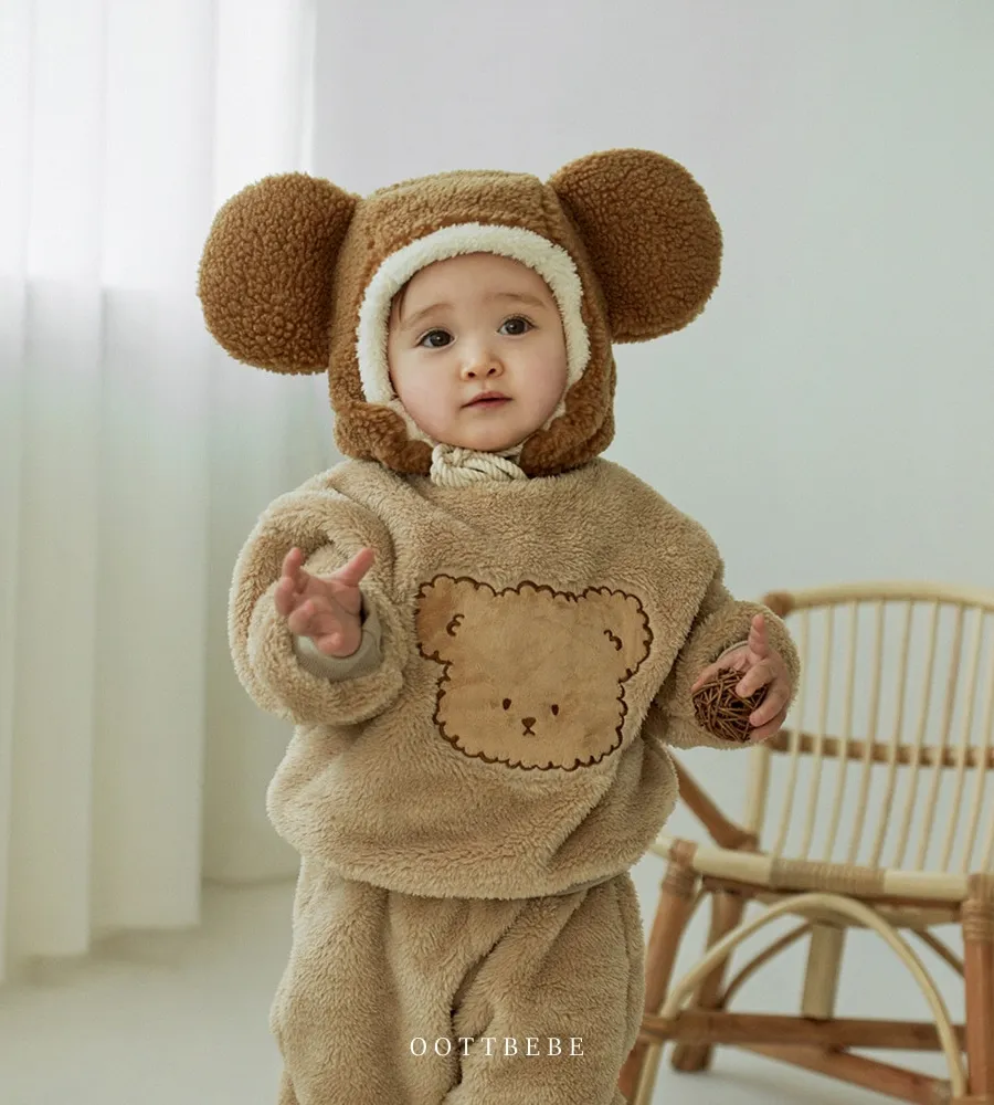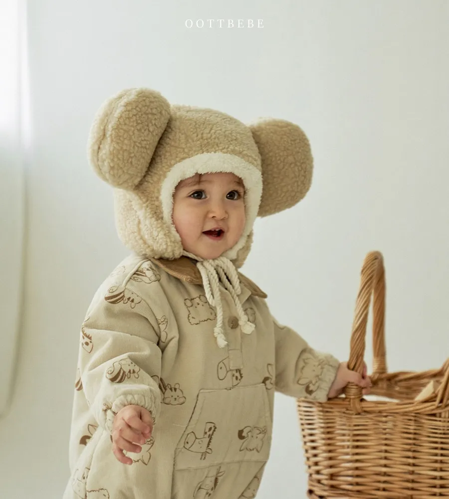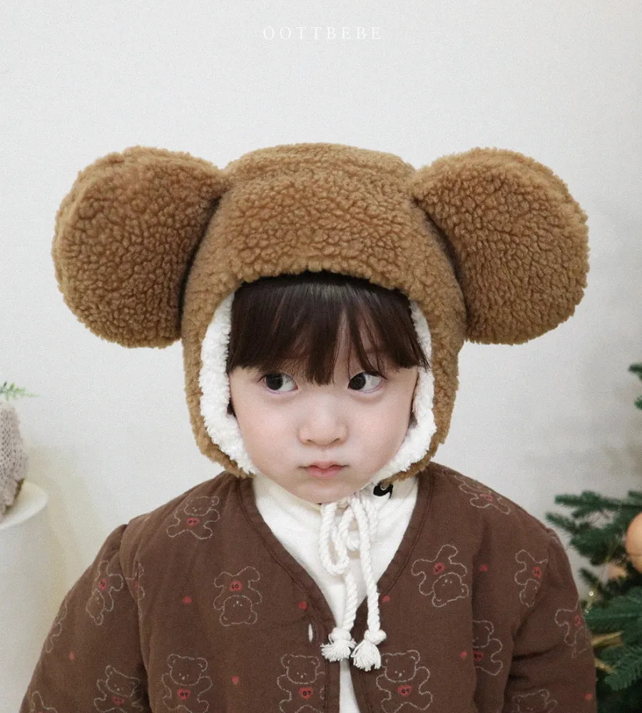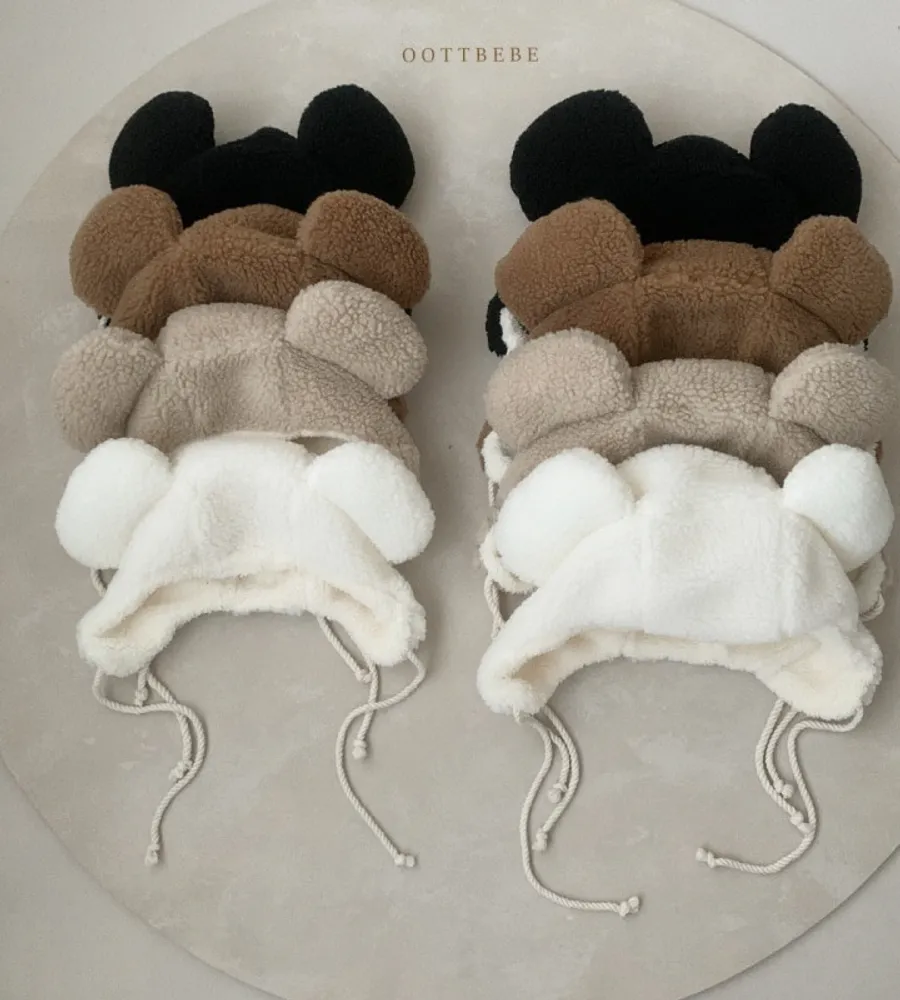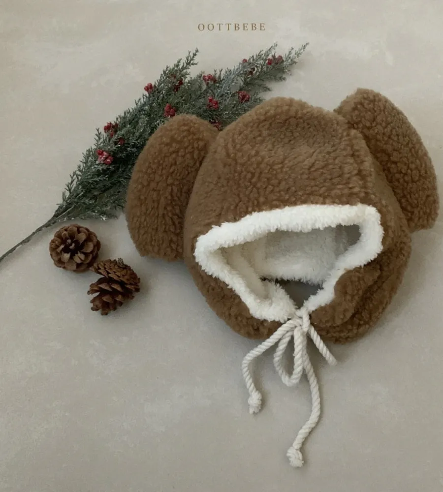 25'冬〡OOTTBEBE〡大耳熊熊絨毛綁帶帽-親子款