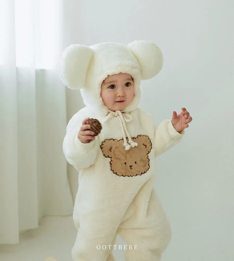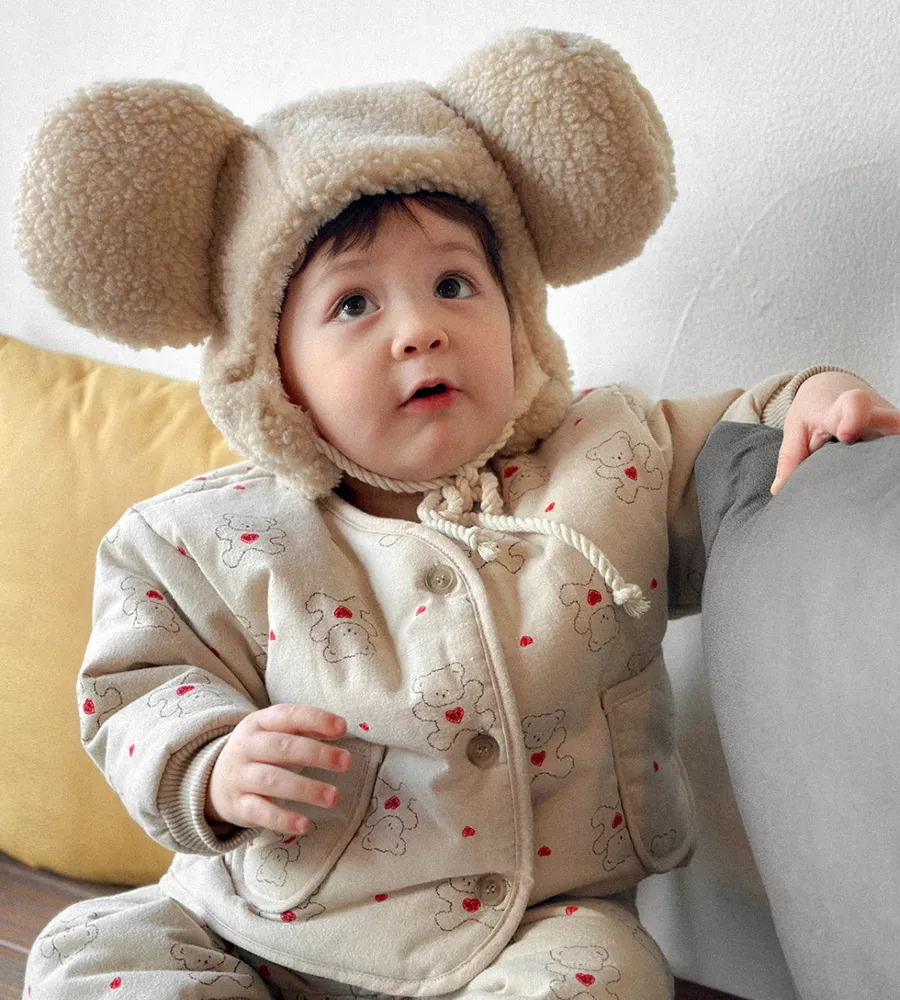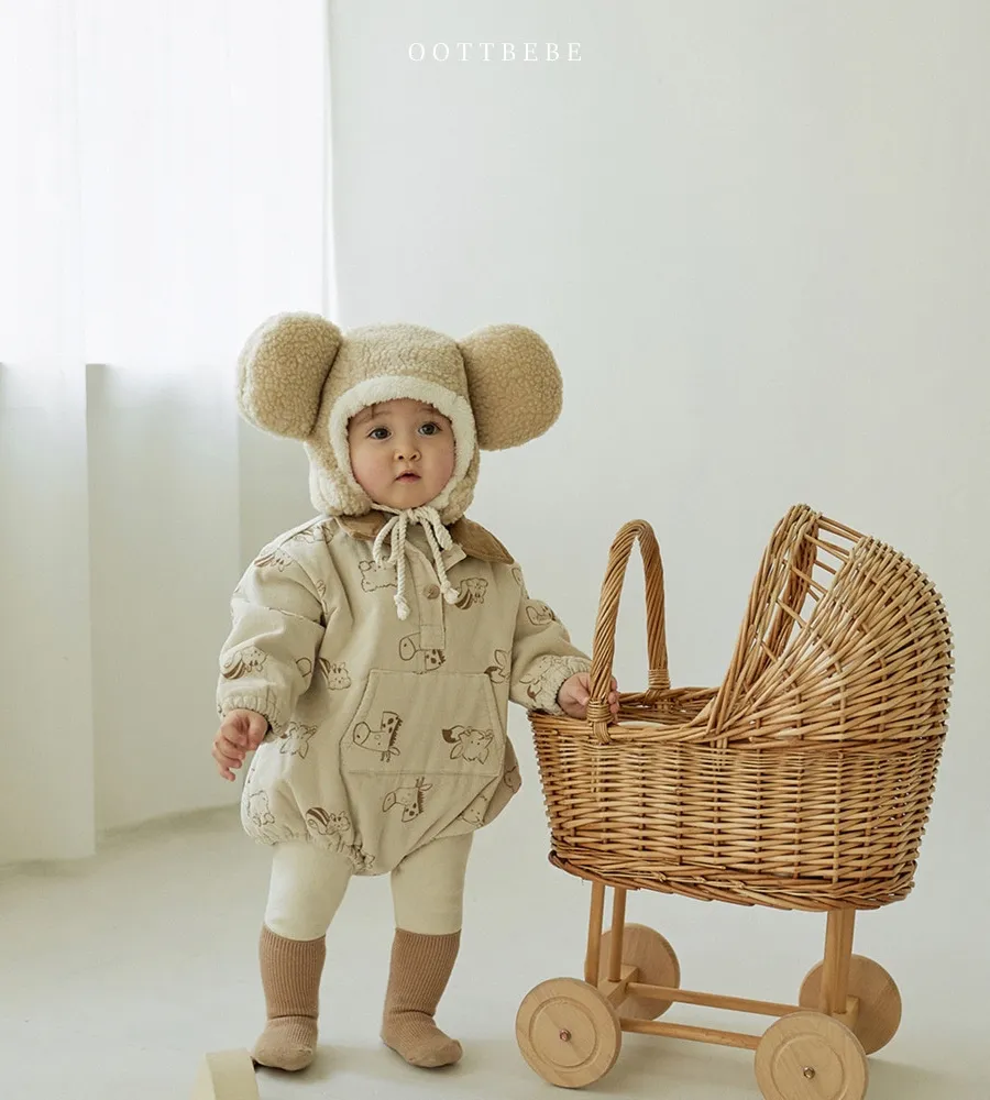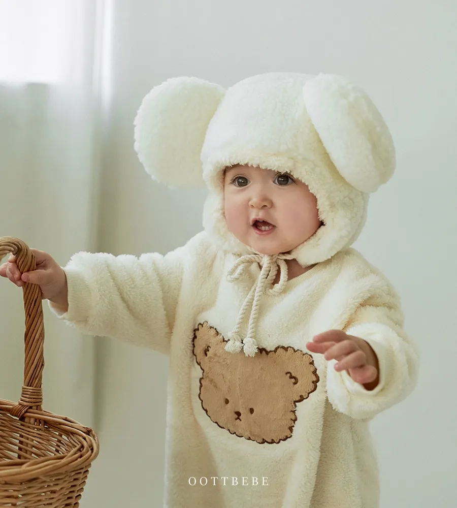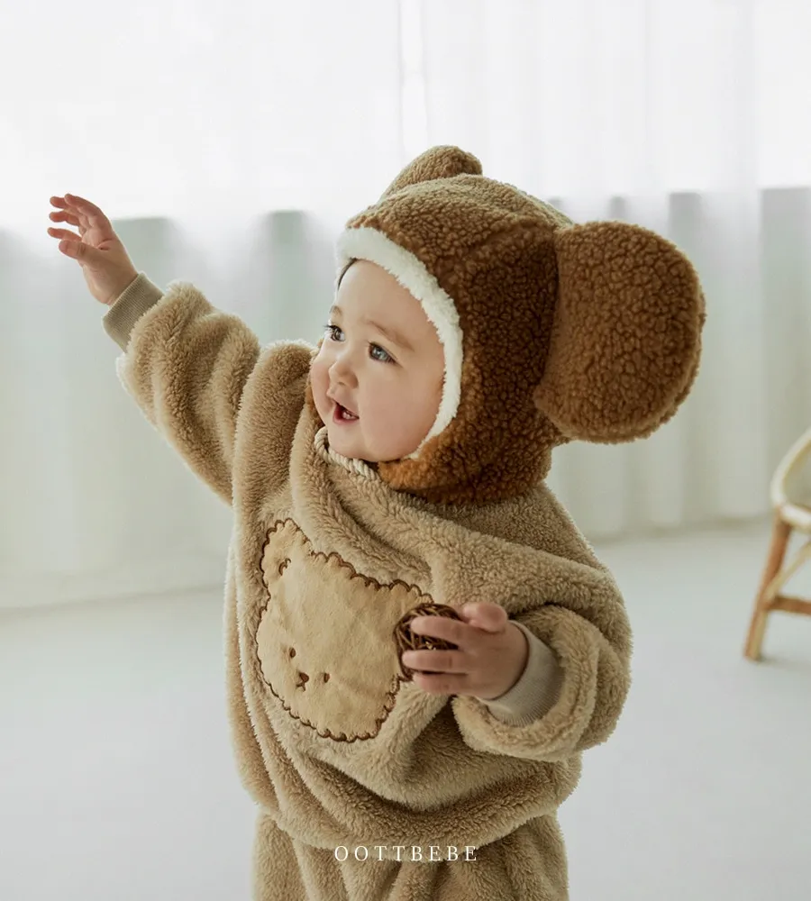 25'冬〡OOTTBEBE〡大耳熊熊絨毛綁帶帽-親子款