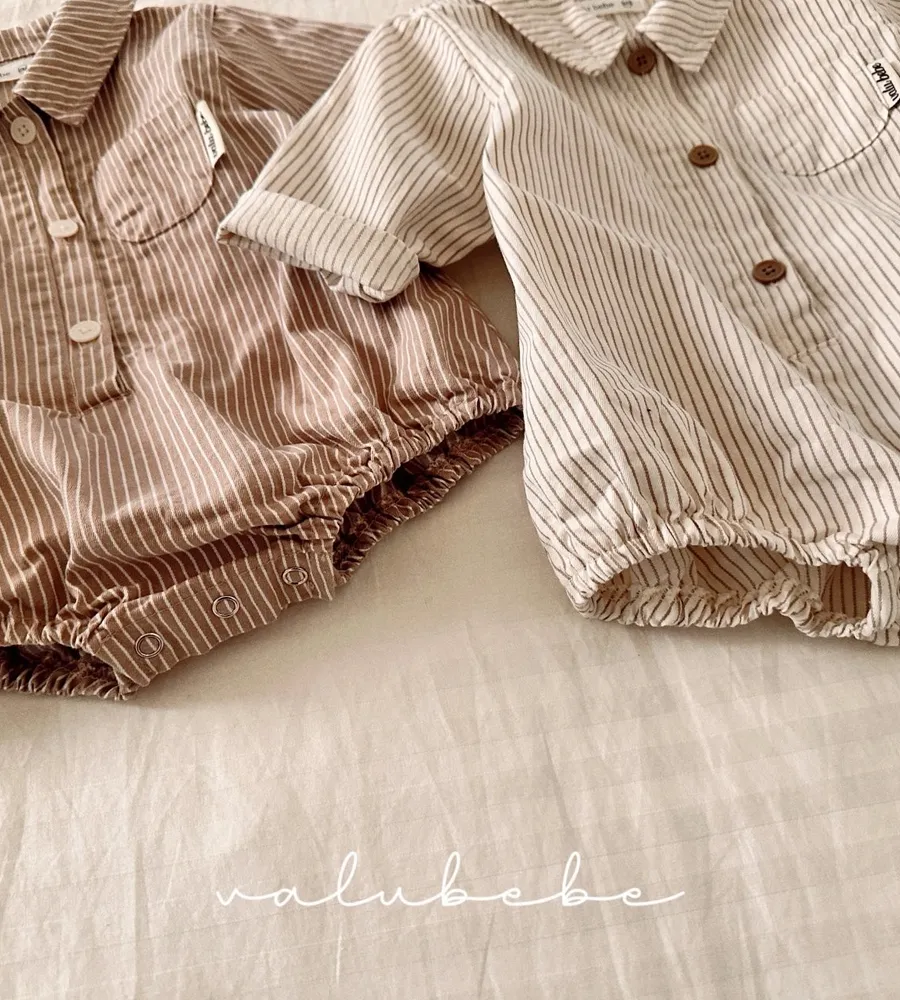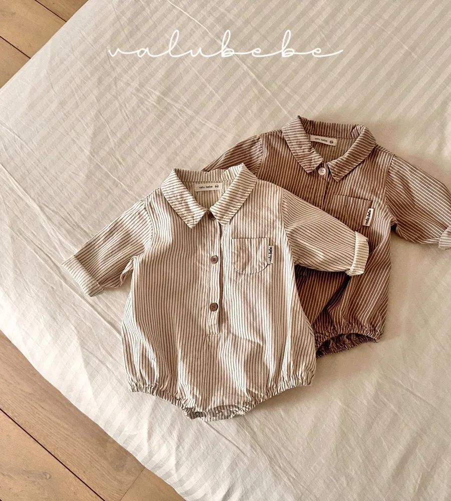 26'春〡valubebe〡條紋襯衫包屁衣