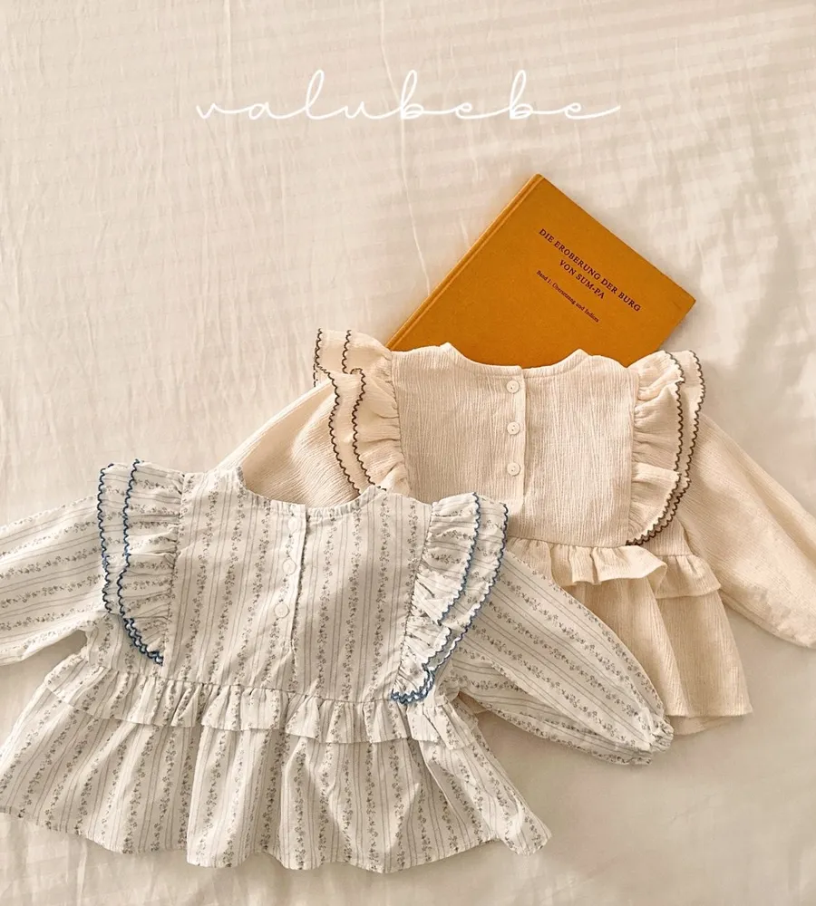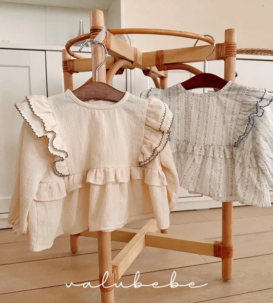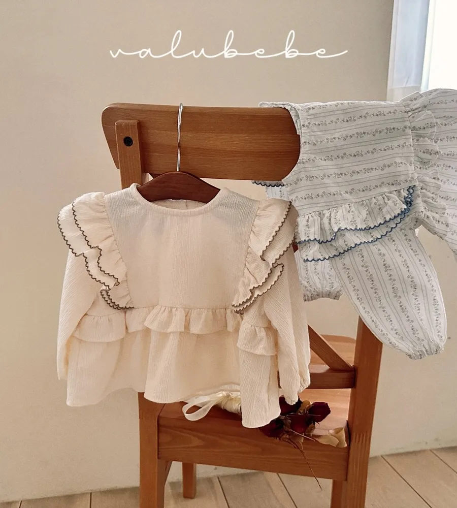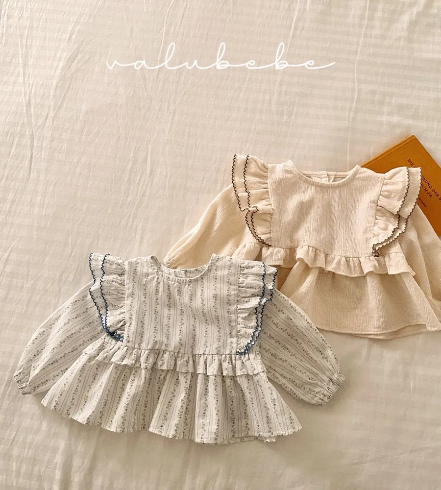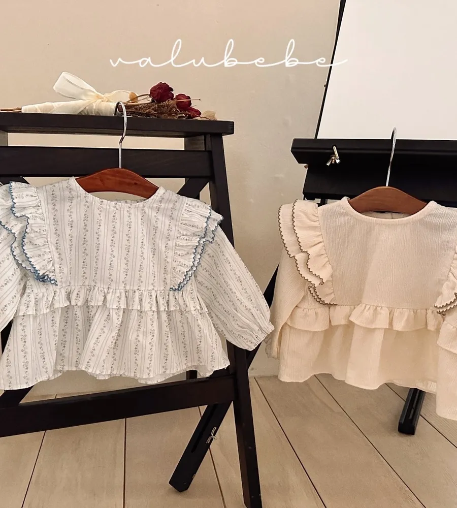 26'春〡valubebe〡A字下擺荷葉花邊雪紡上衣