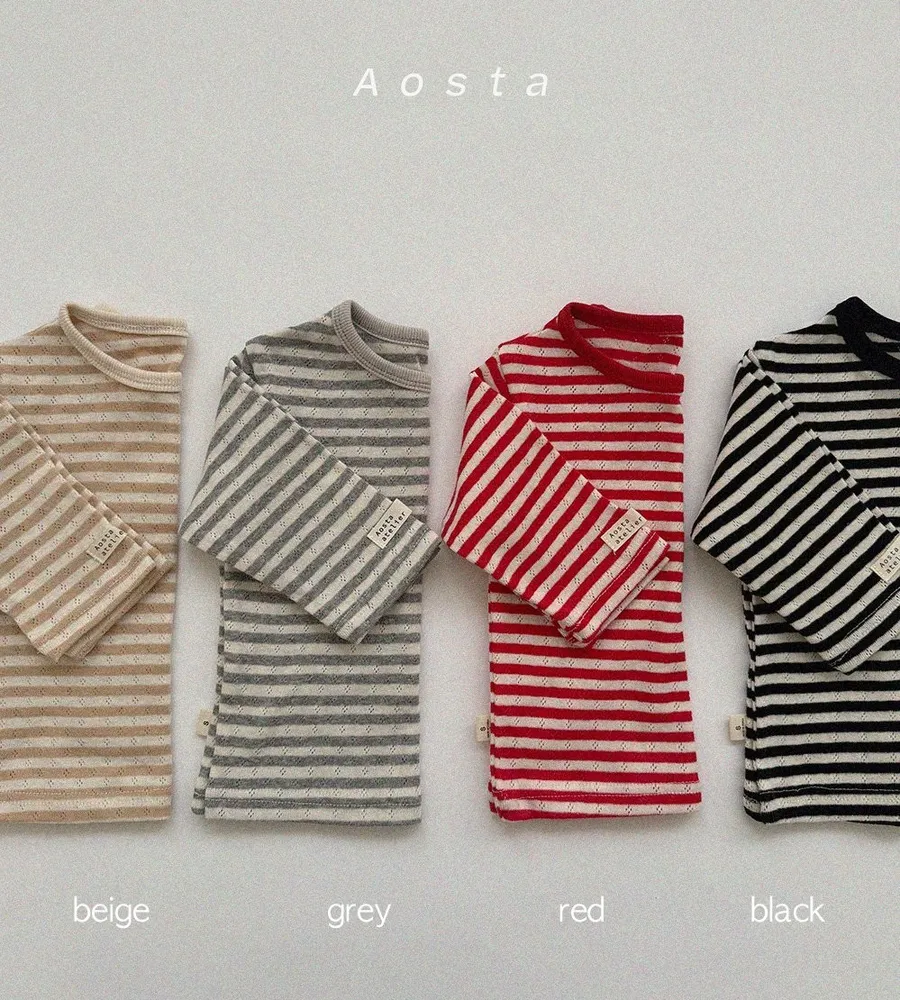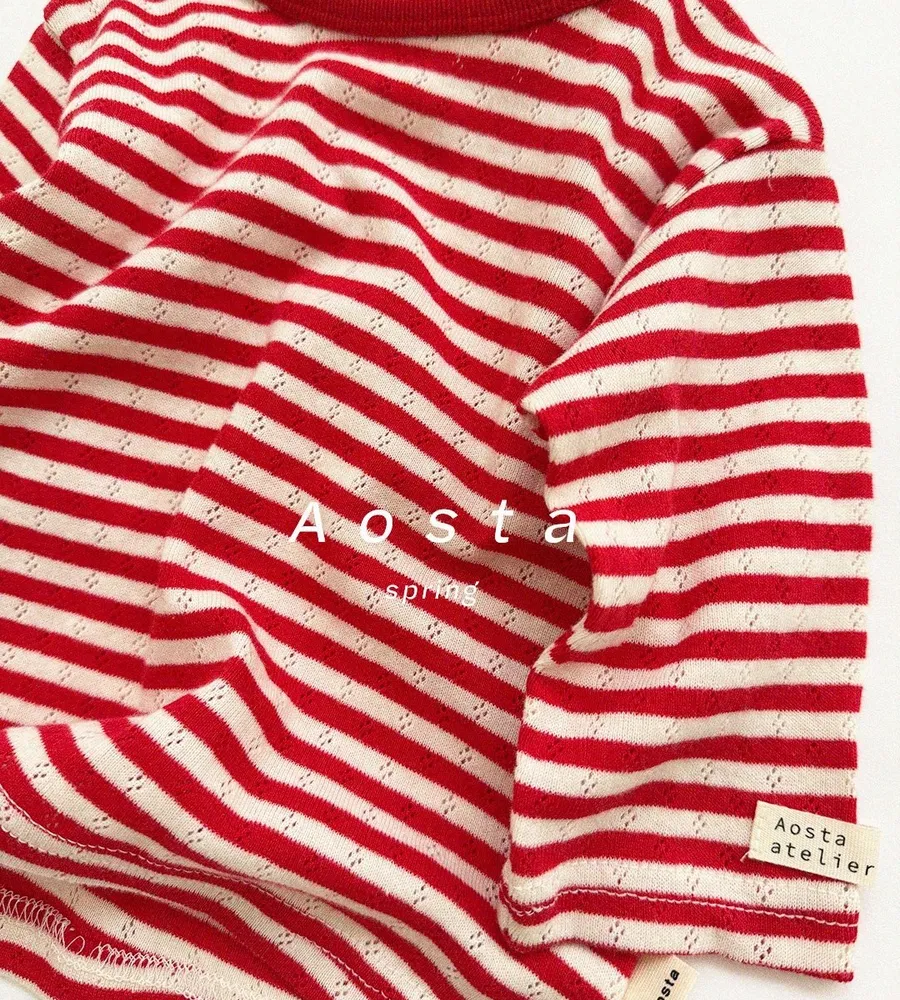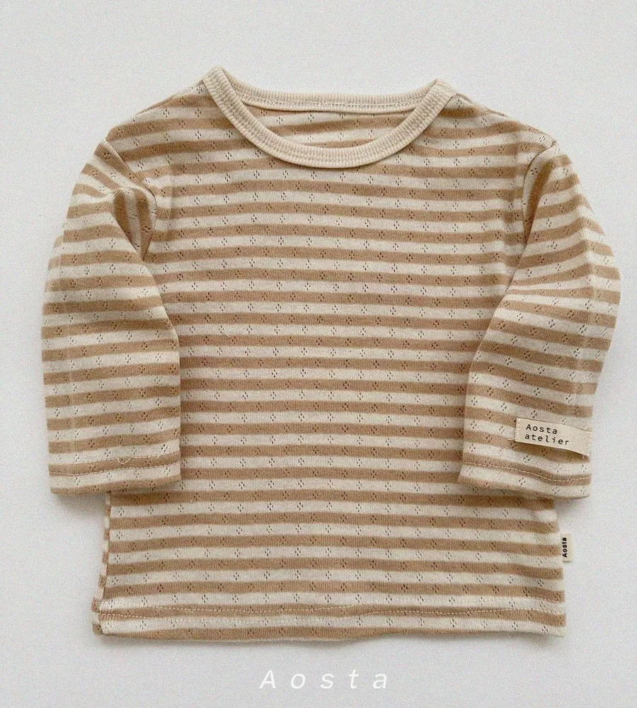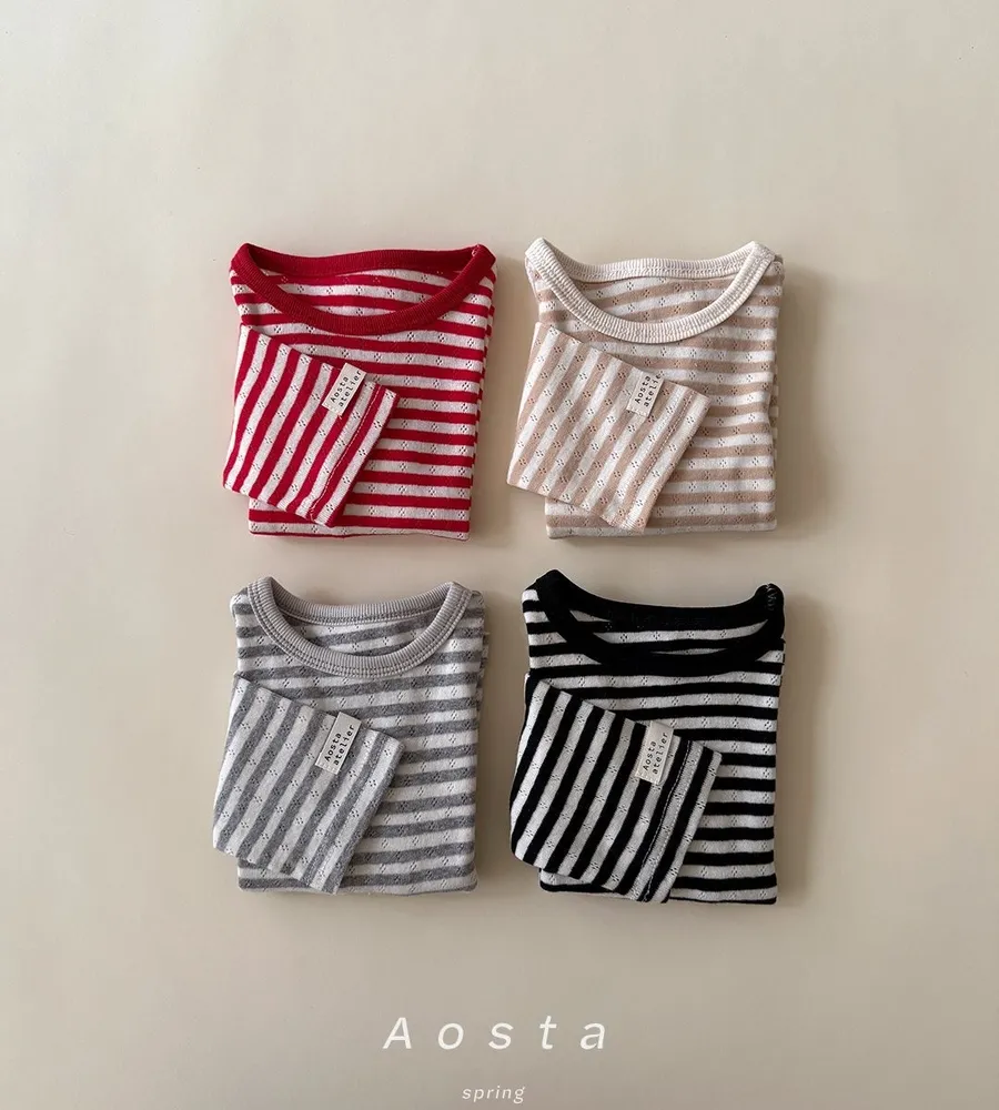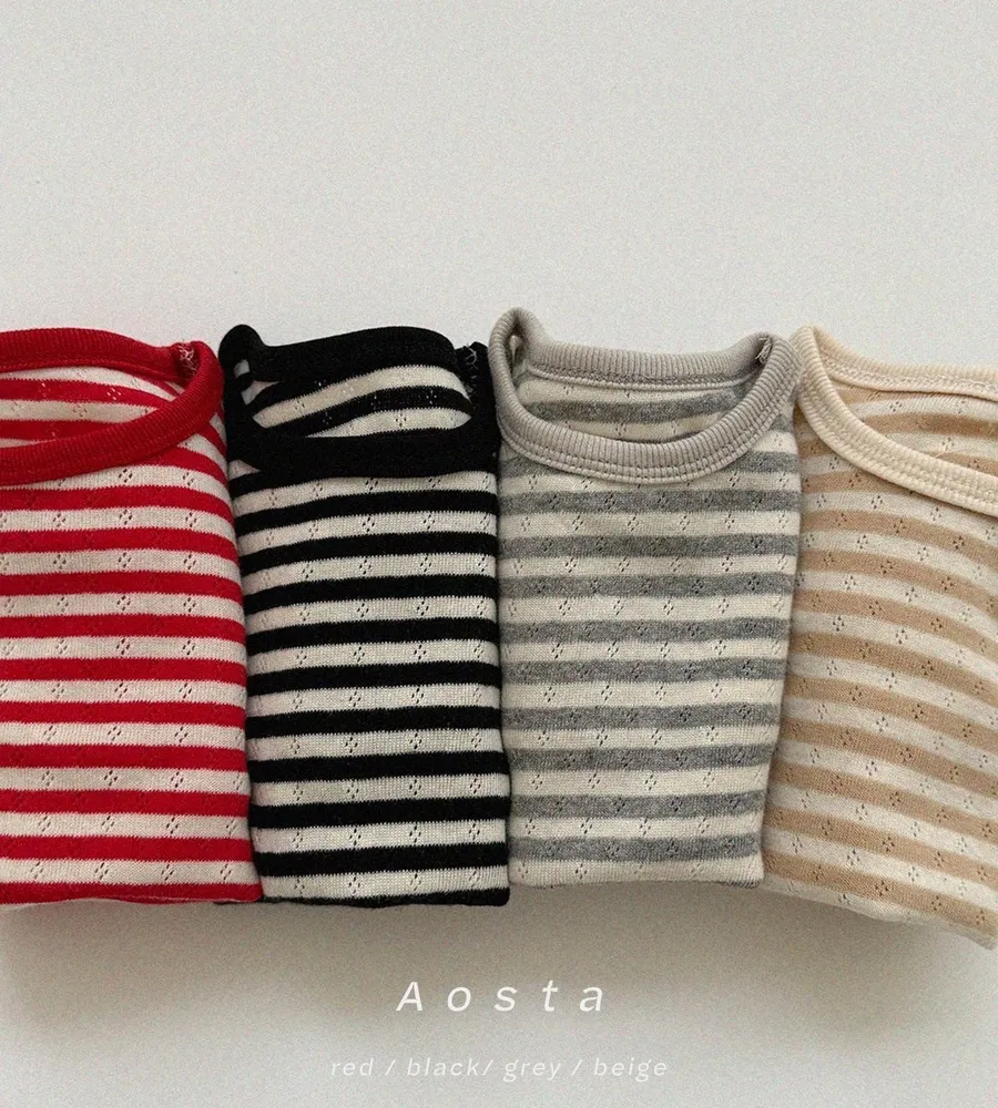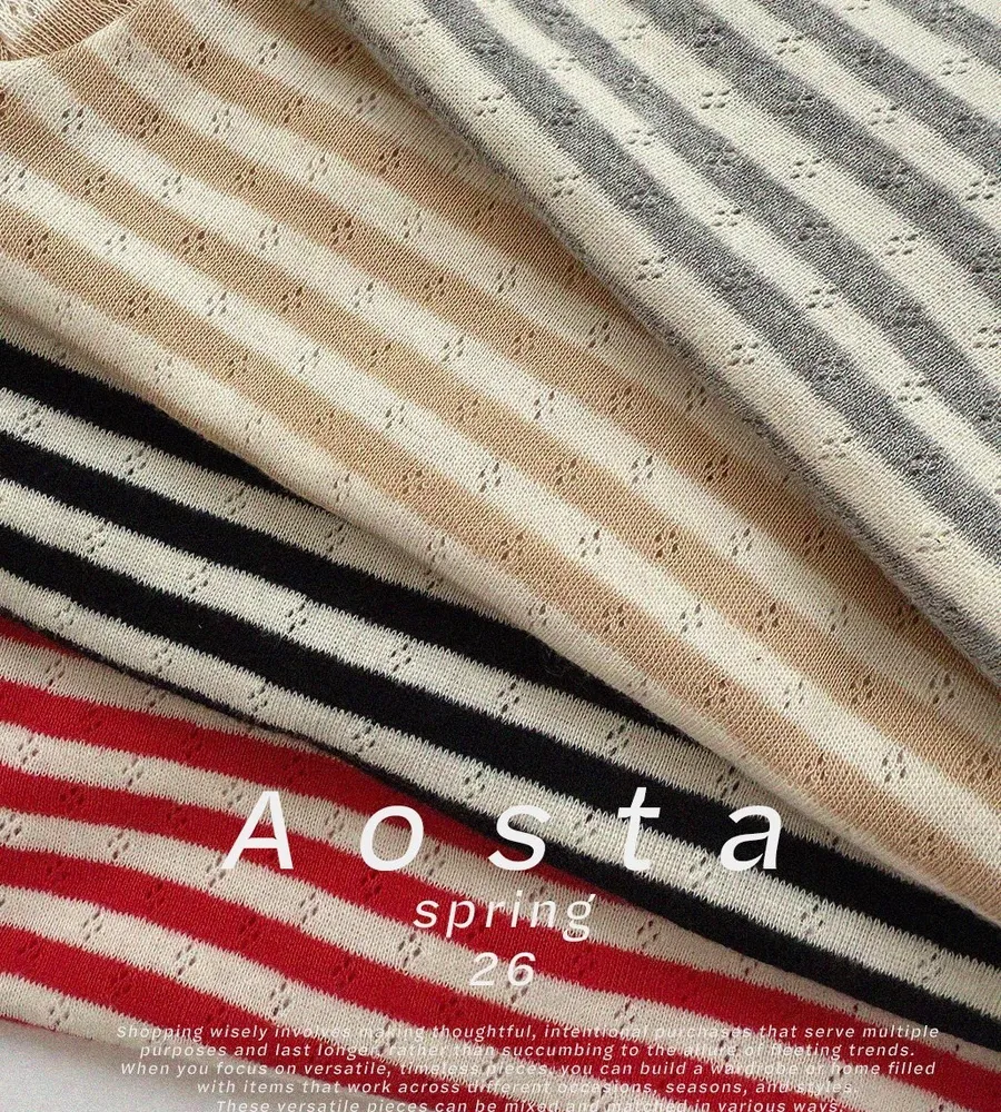 26'春〡Aosta〡橫條紋孔眼圓領上衣