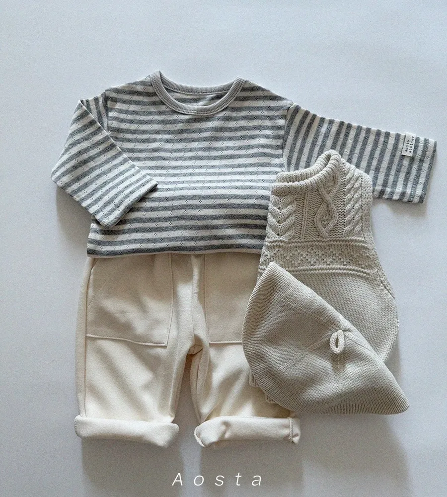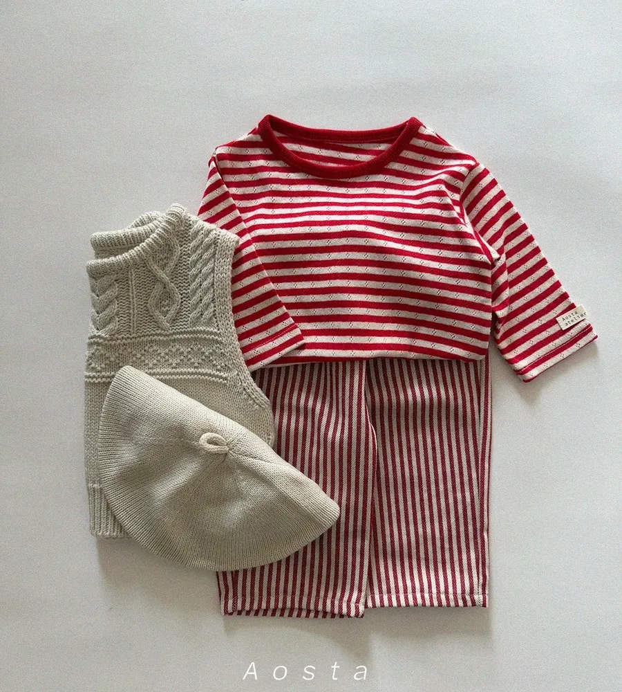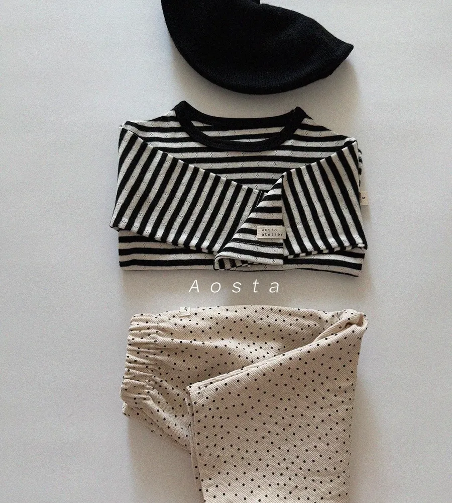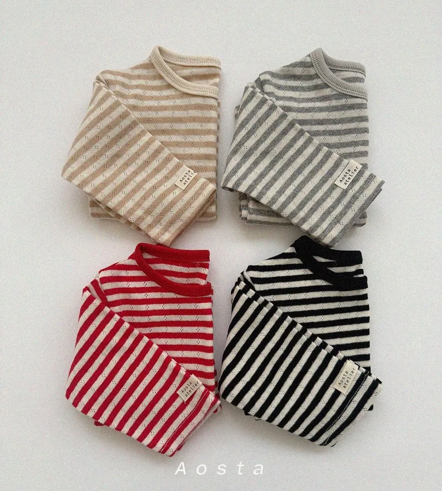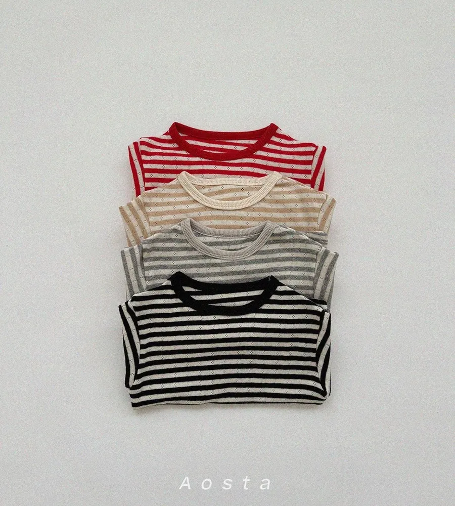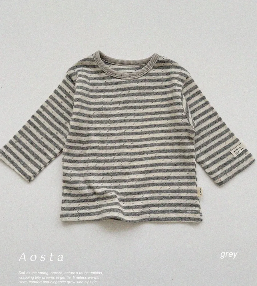26'春〡Aosta〡橫條紋孔眼圓領上衣