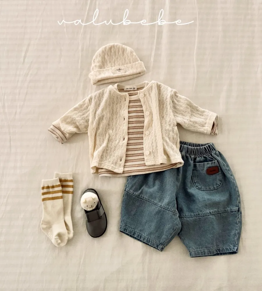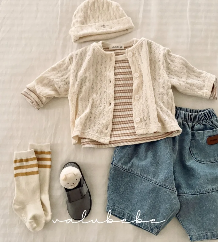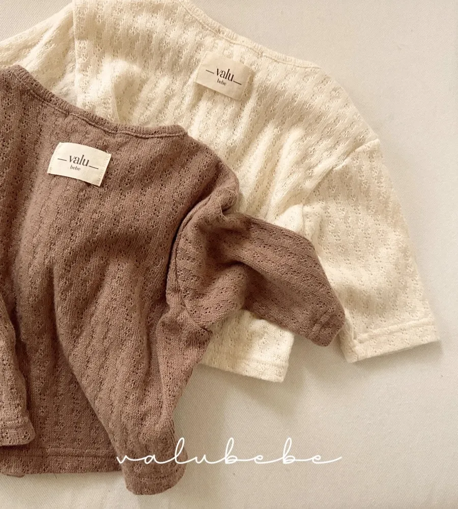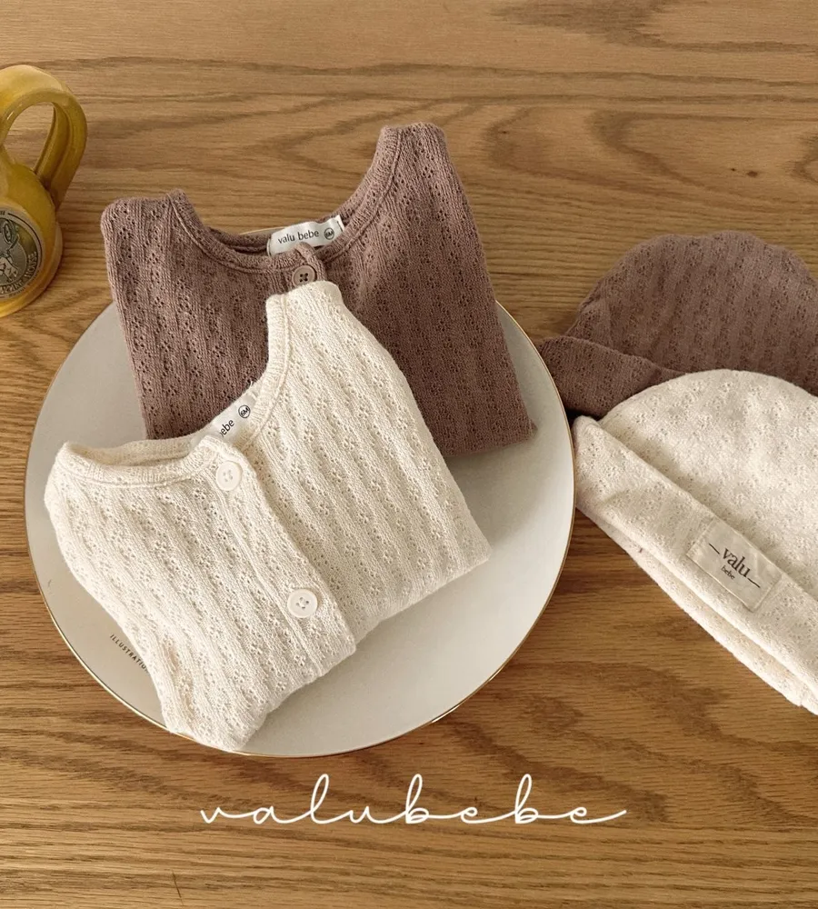 26'春〡valubebe〡緹花孔眼針織排釦外套