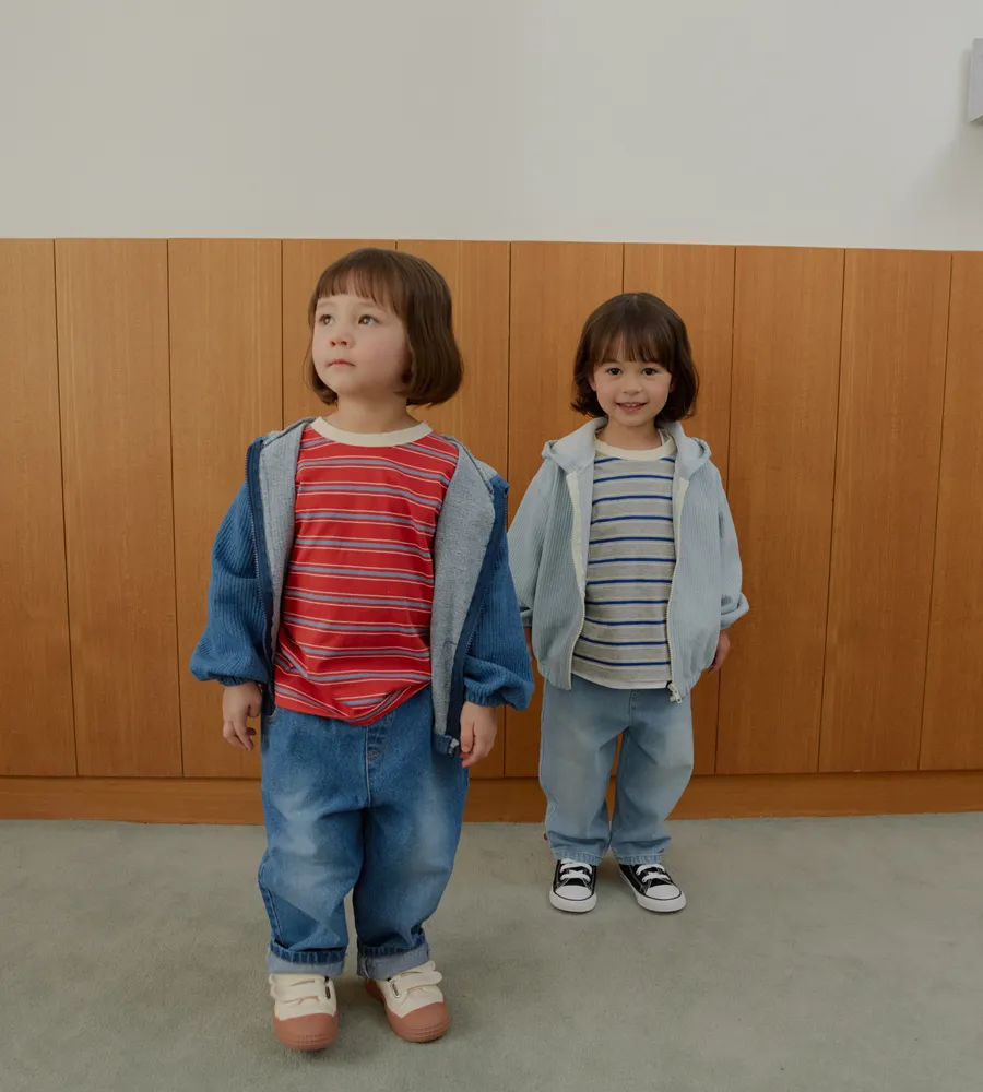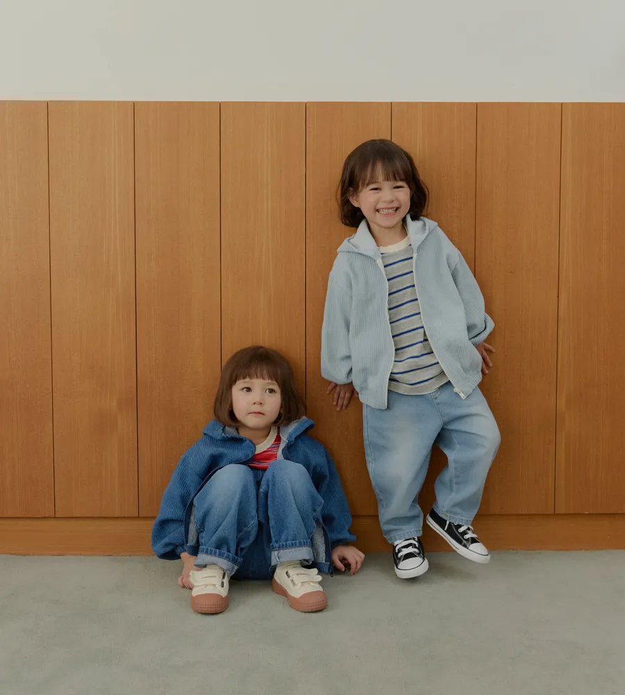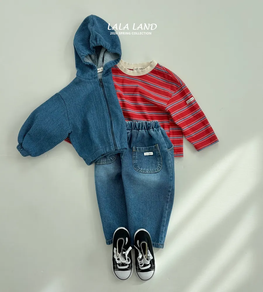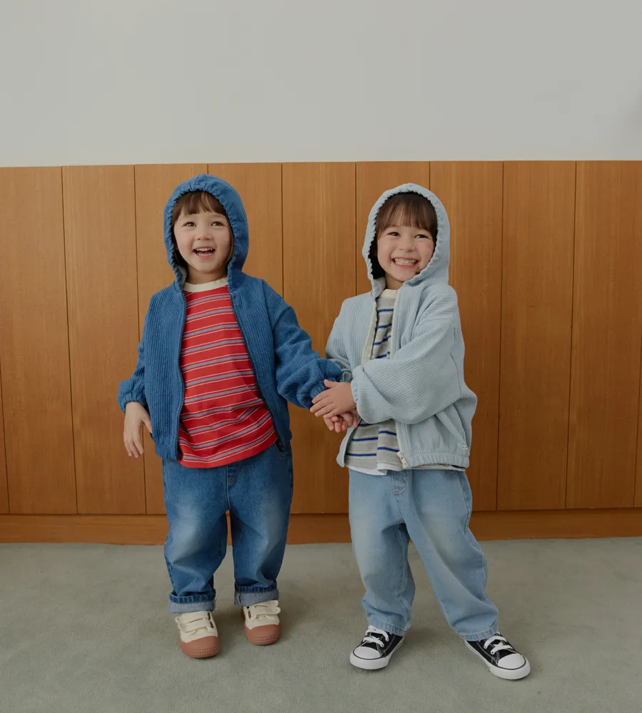 26'春〡LalaLand〡豎紋復古牛仔連帽拉鍊外套-kids