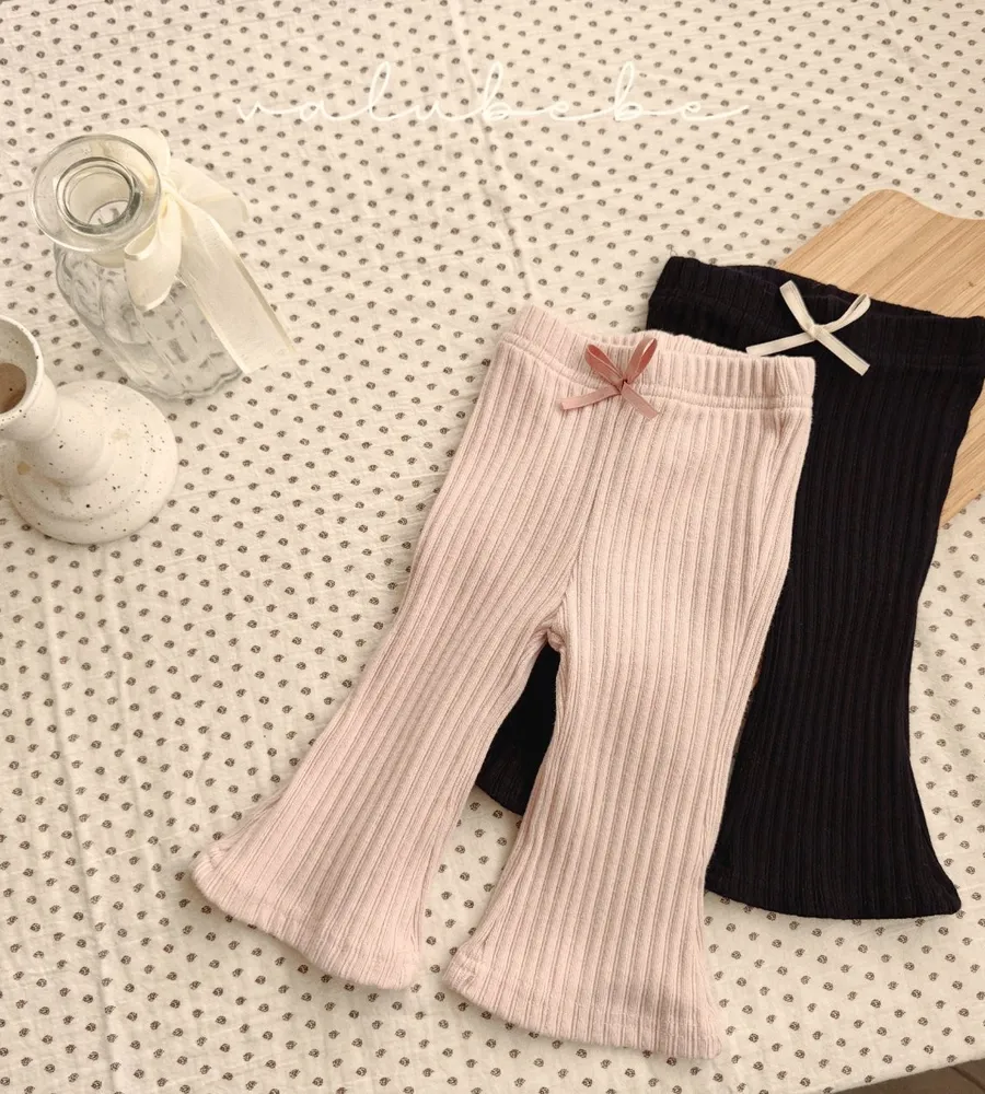26'春〡valubebe〡蝴蝶結坑條喇叭褲