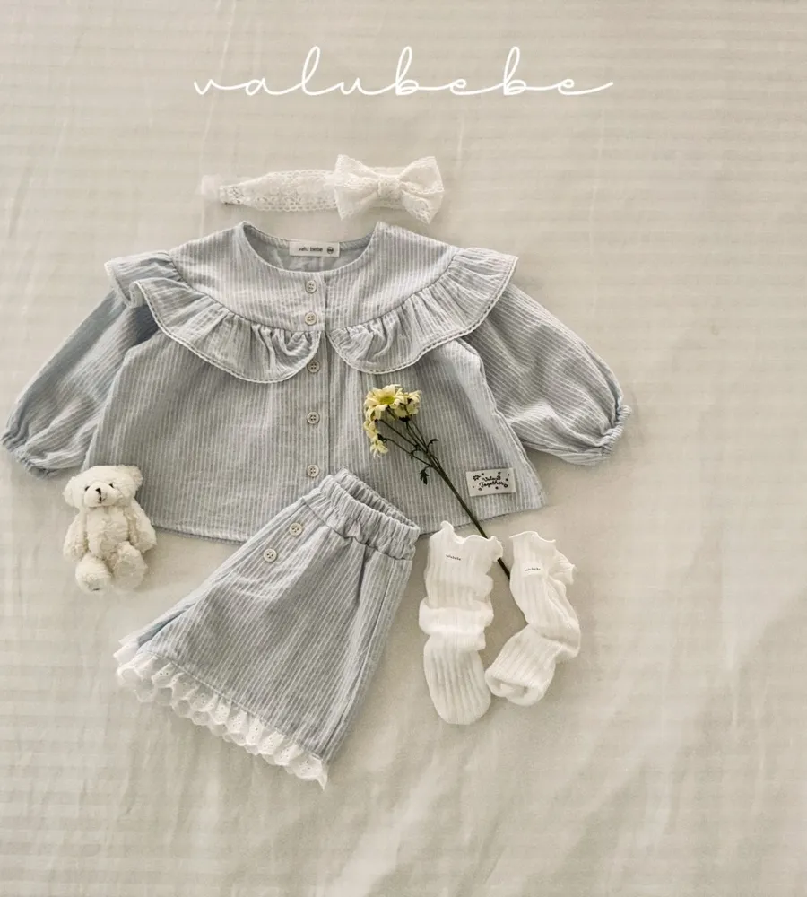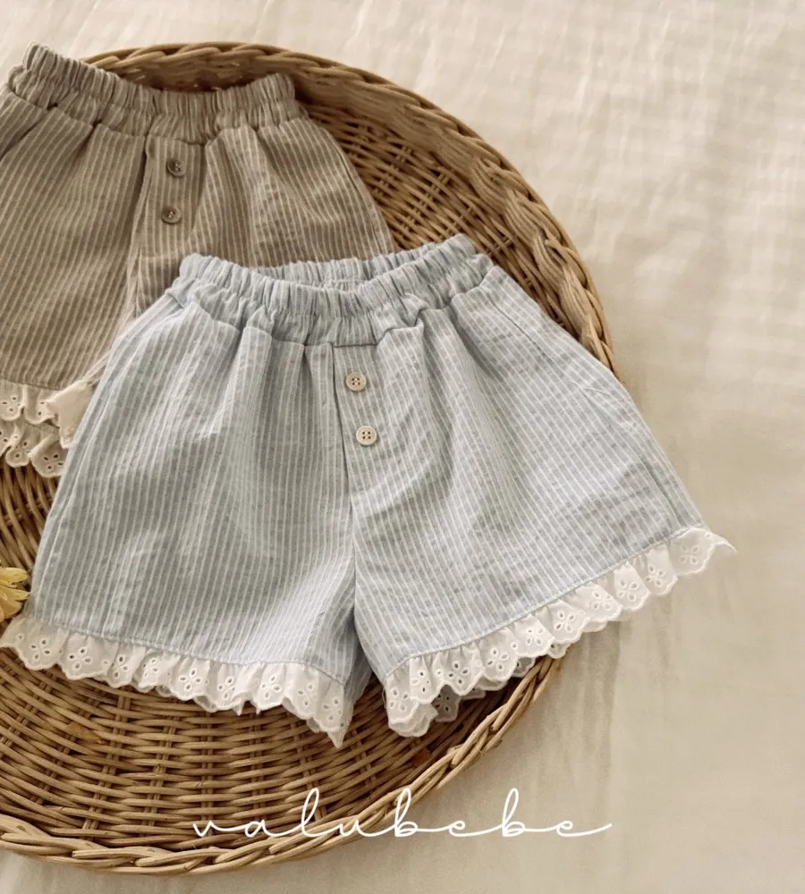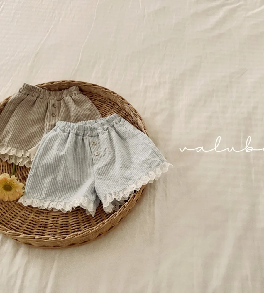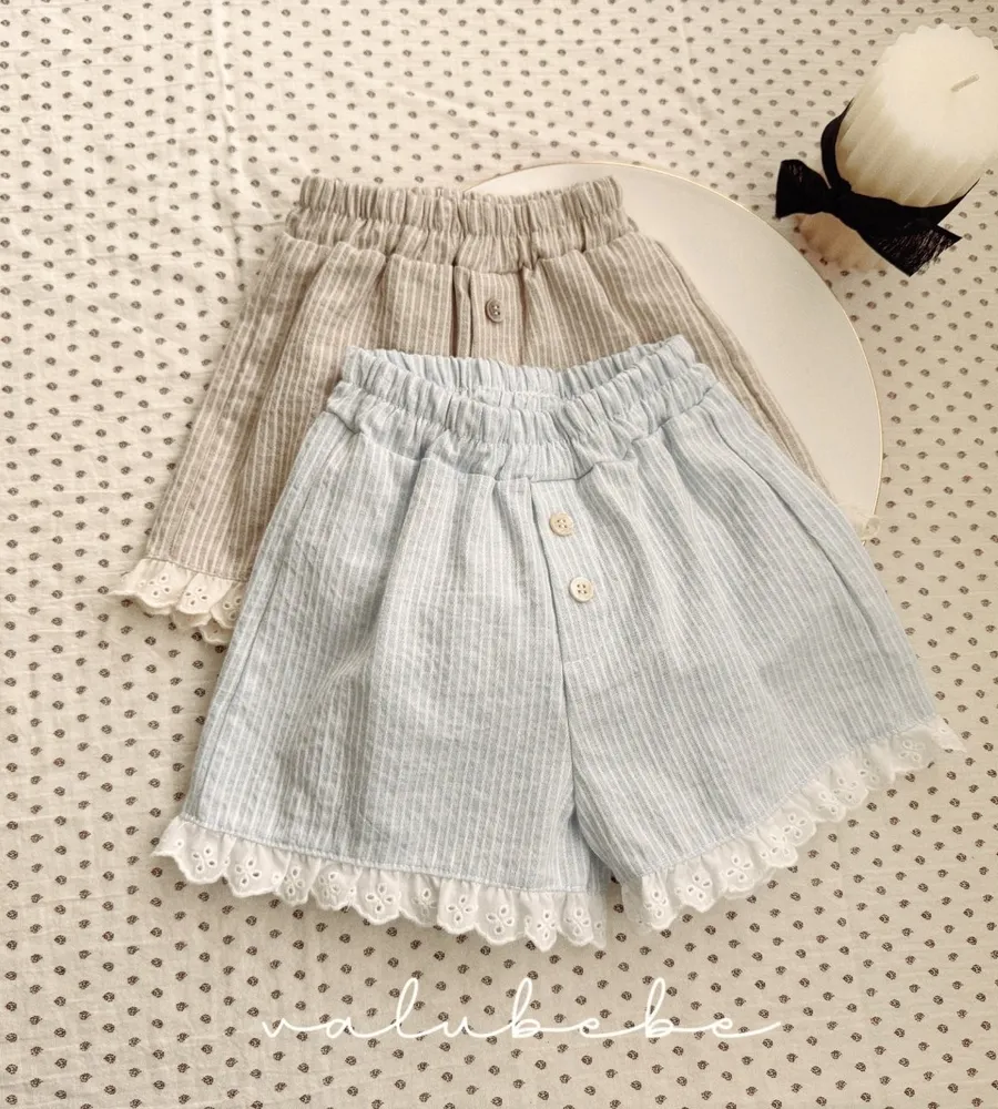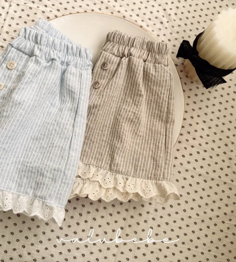 26'春〡valubebe〡蕾絲花邊條紋中長褲