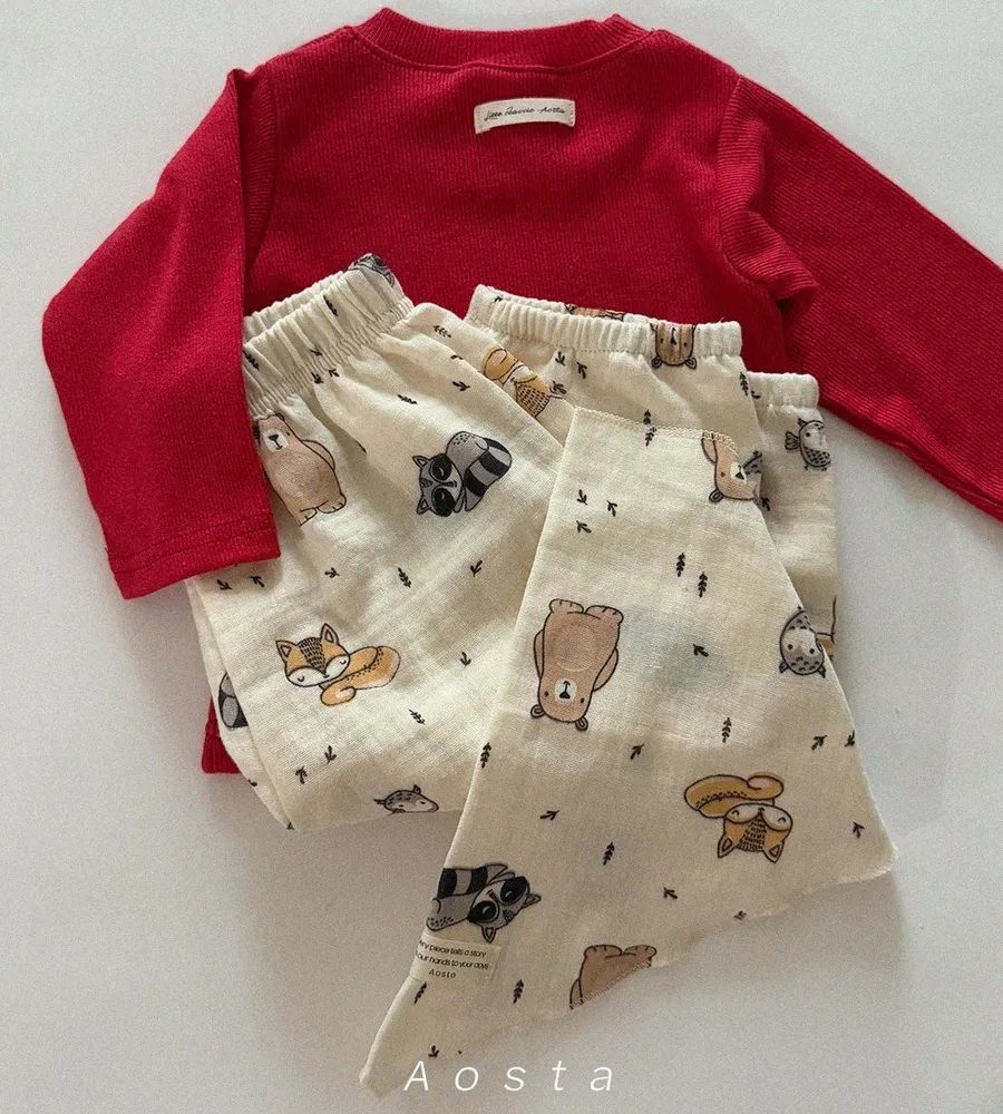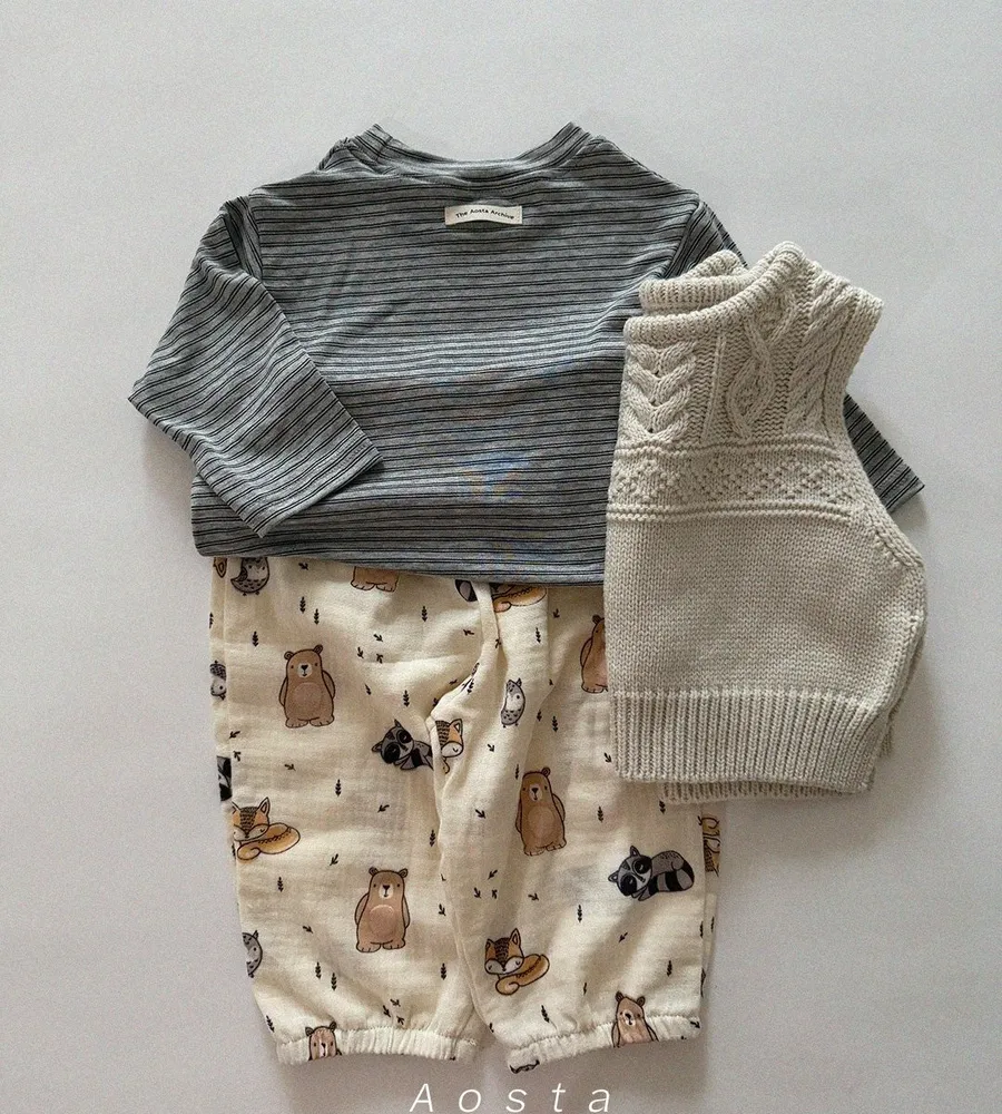 26'春〡Aosta〡可愛圖案雙層棉縮口褲
