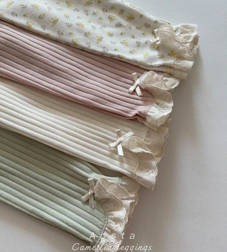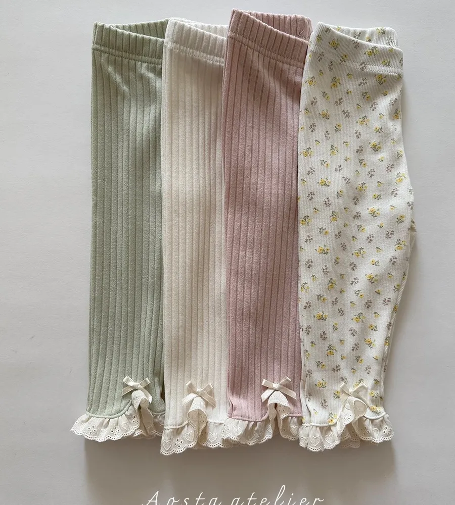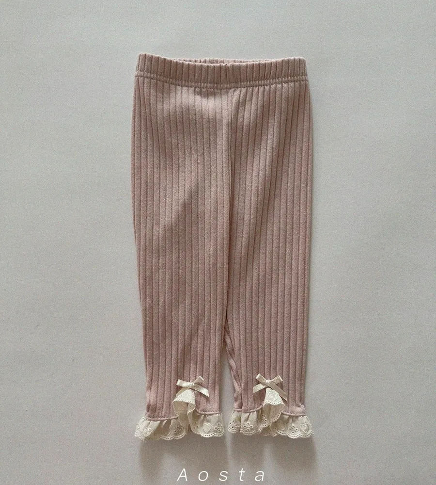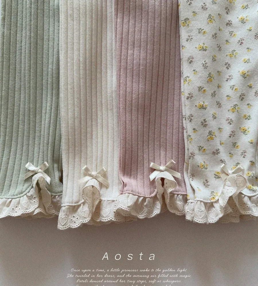 26'春〡Aosta〡羅紋蕾絲花邊蝴蝶結打底褲