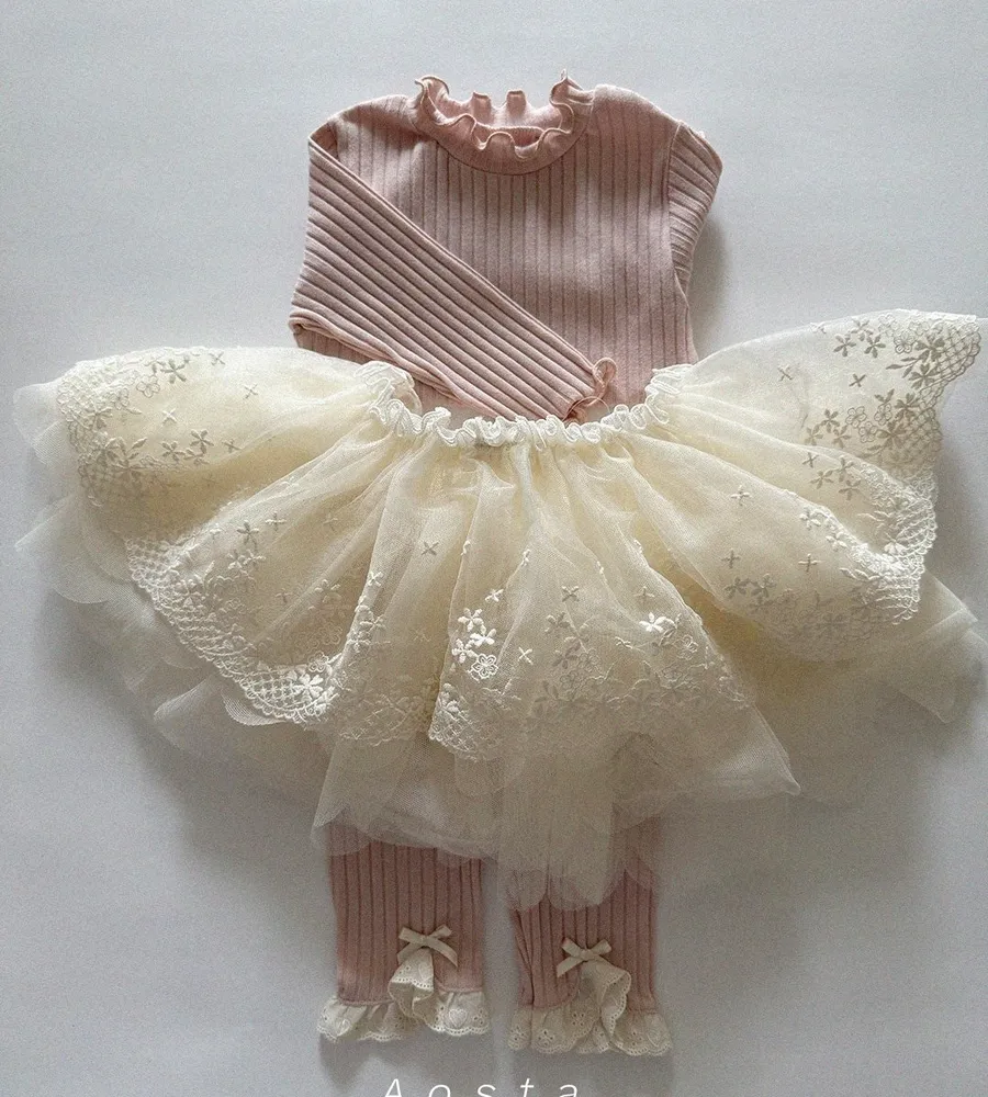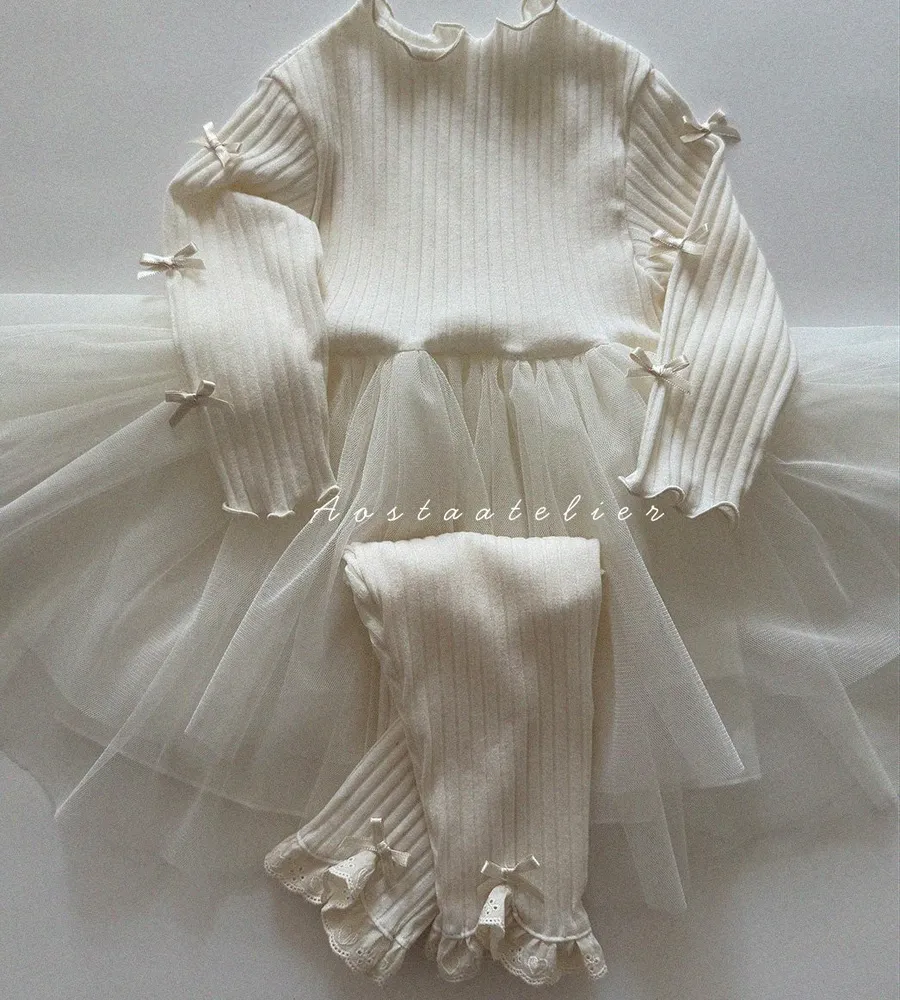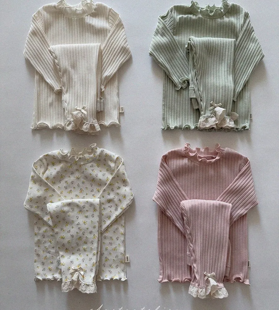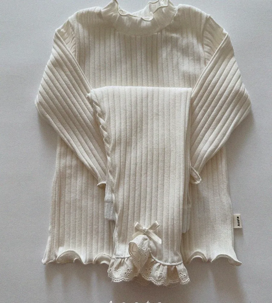 26'春〡Aosta〡羅紋蕾絲花邊蝴蝶結打底褲